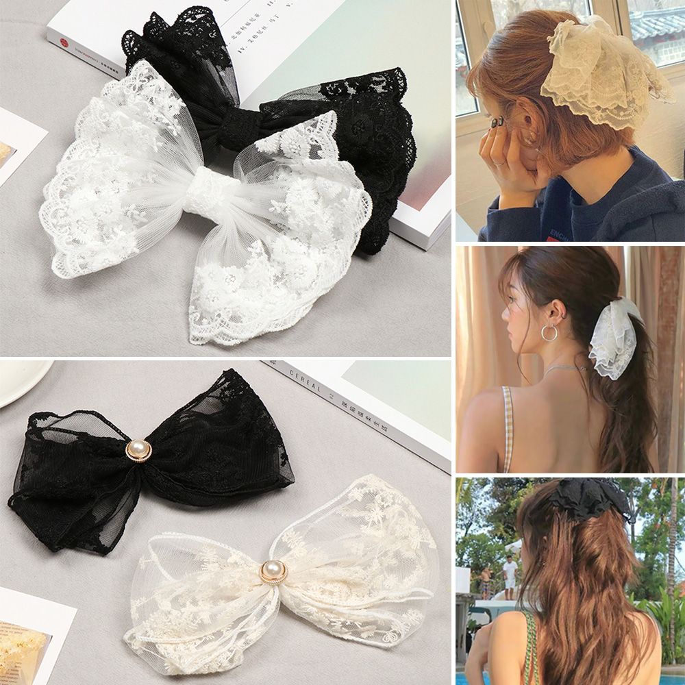 Новый милый черный белый хлопок Hairgrip Кружева цветок лук Ленточные заколки сладкий ободок Девушки Женщины Украшение для волос аксессуары для волос