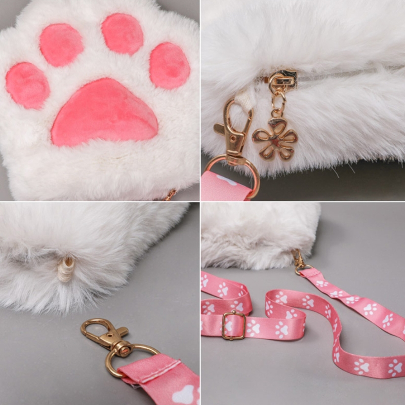 83XC регулируемые модные женские сумки с кошачьей лапой милые кавайные сумки через плечо кошелек плюшевая сумка на плечо дамская сумочка