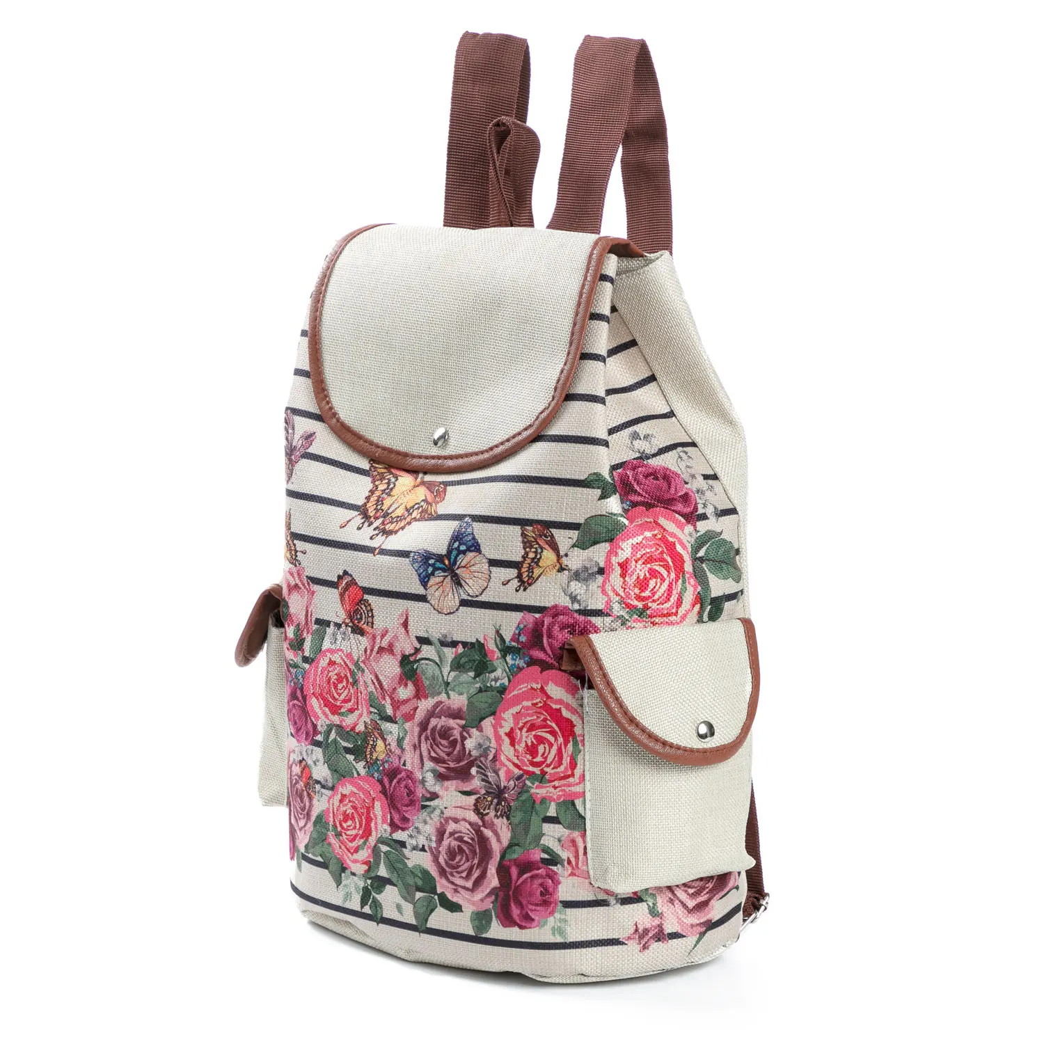 Полосатые сумки с цветочным принтом и бабочками, красивый модный женский рюкзак, Портативная сумка для хранения, большой вместительный дорожный рюкзак