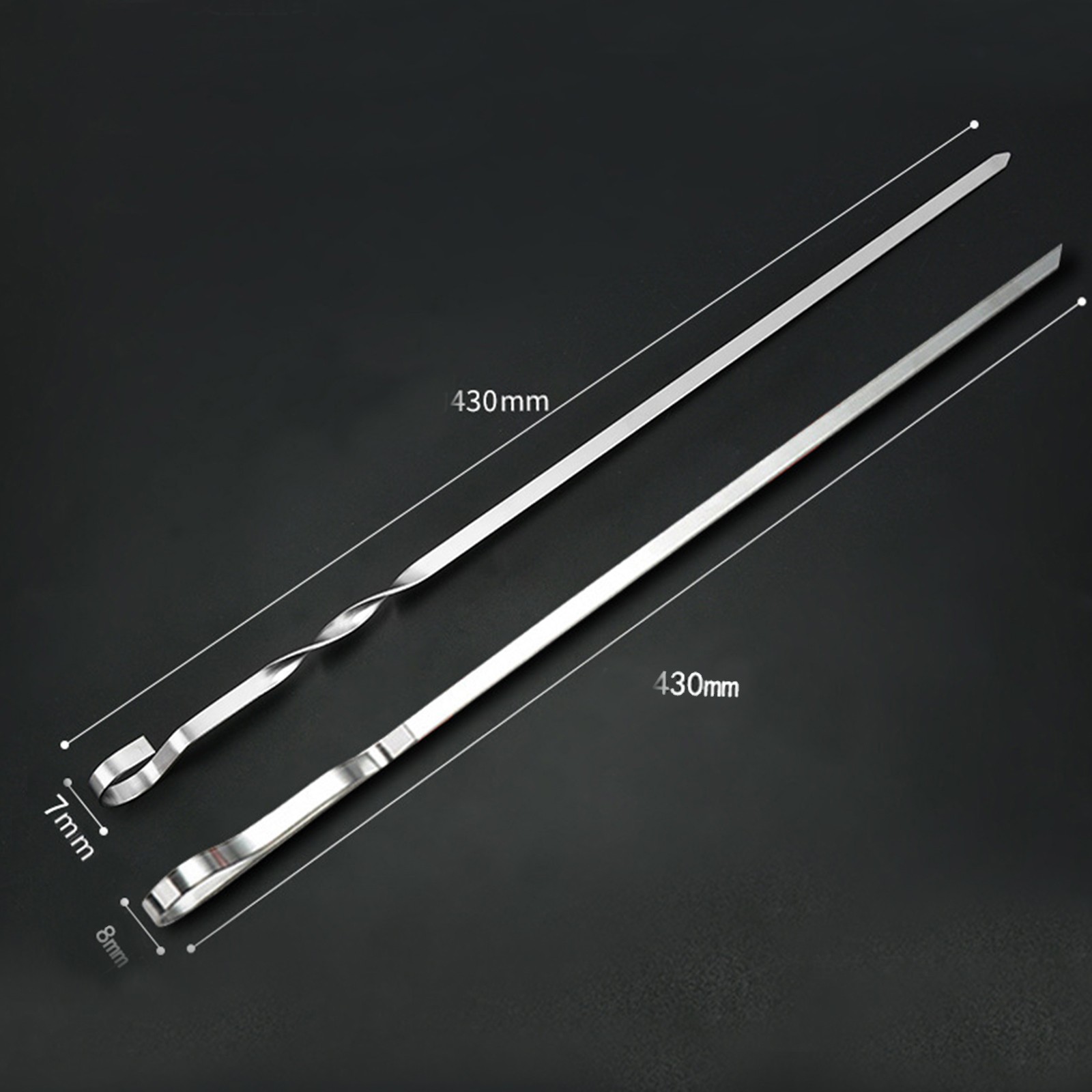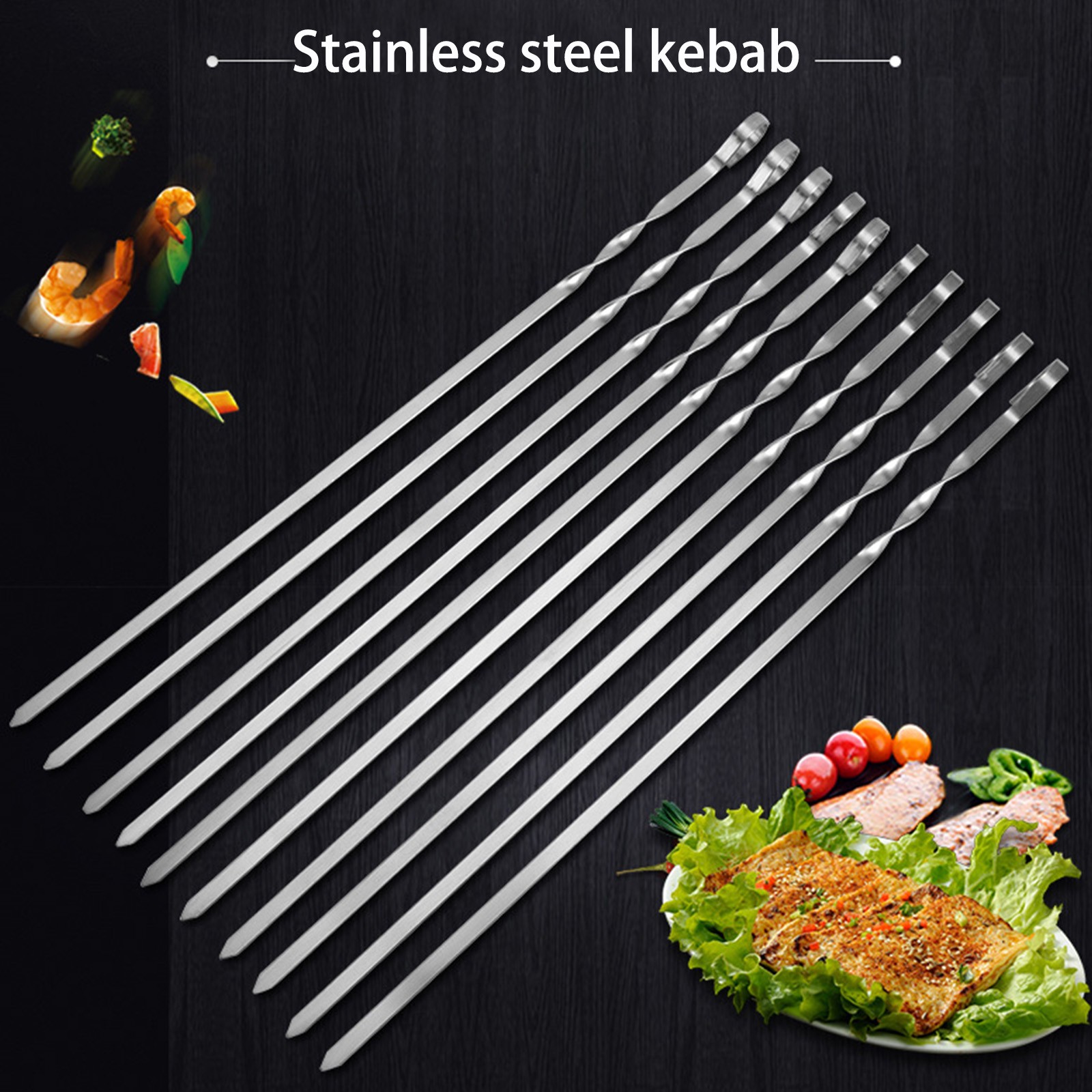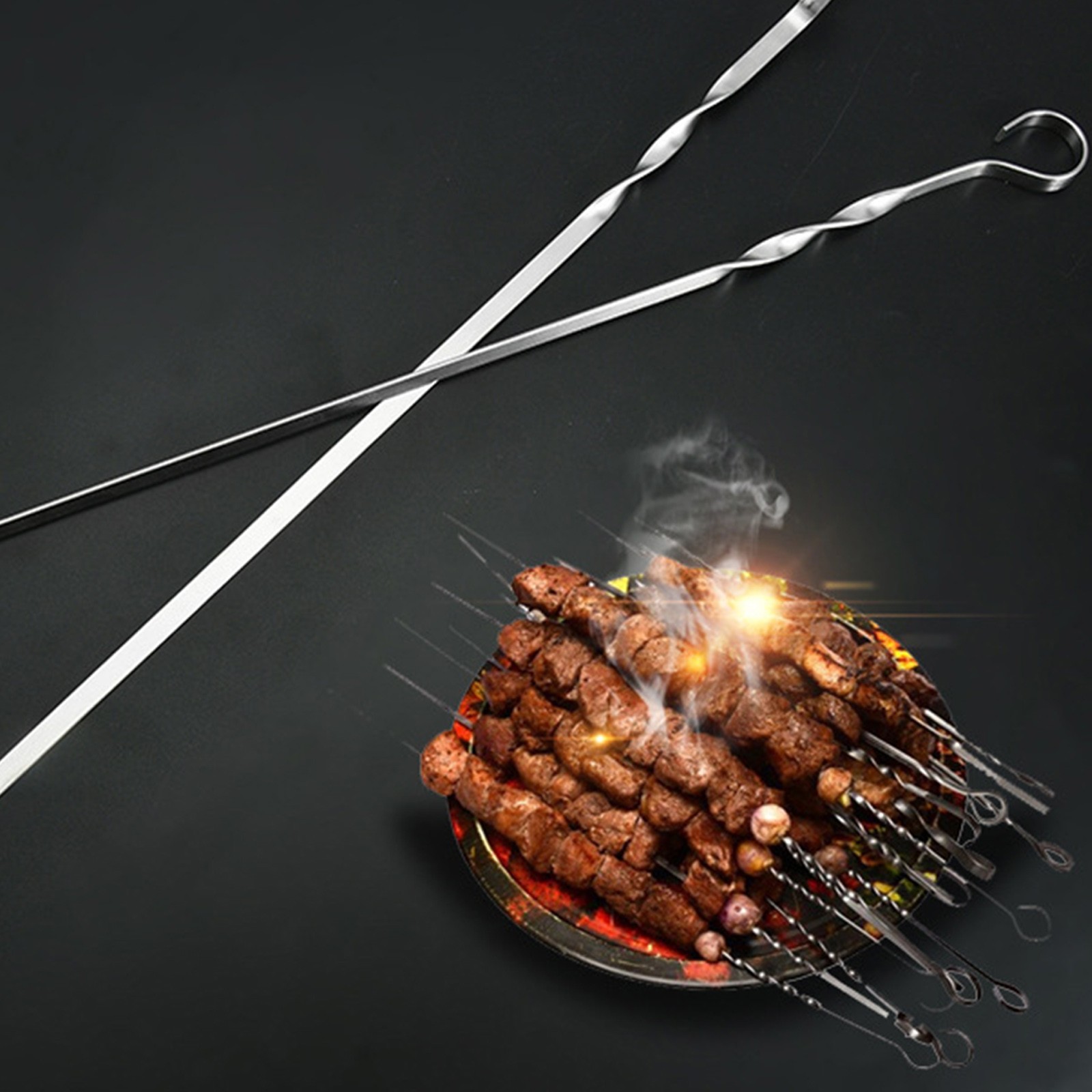 Шашлык для барбекю из нержавеющей стали: безопасная для пищевых продуктов нержавеющая сталь сделано, 100% безопасно, доступно и легко моется. Двойной шпагат для барбекю Kabob: лучше для гриля мяса или говядины, легко вращать мясо, равномерно нагревать. Делает продукты стабильными на гриле Ширина ручки: широкий дизайн ручки, удобно носить с собой шашлык для барбекю при гриле. Удобный и счастливый грильДизайн для удобства использования и очистки: Двойная зубчатая пряжа отлично подходит для приготовления мяса и небольших кусочков мяса и овощей. Пищевая нержавеющая сталь очень безопасна и легко моется, безопасна в посудомоечной машине