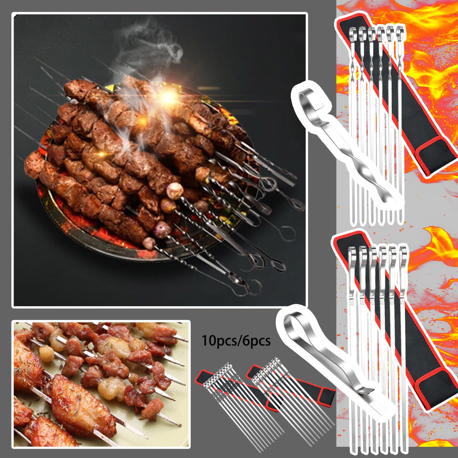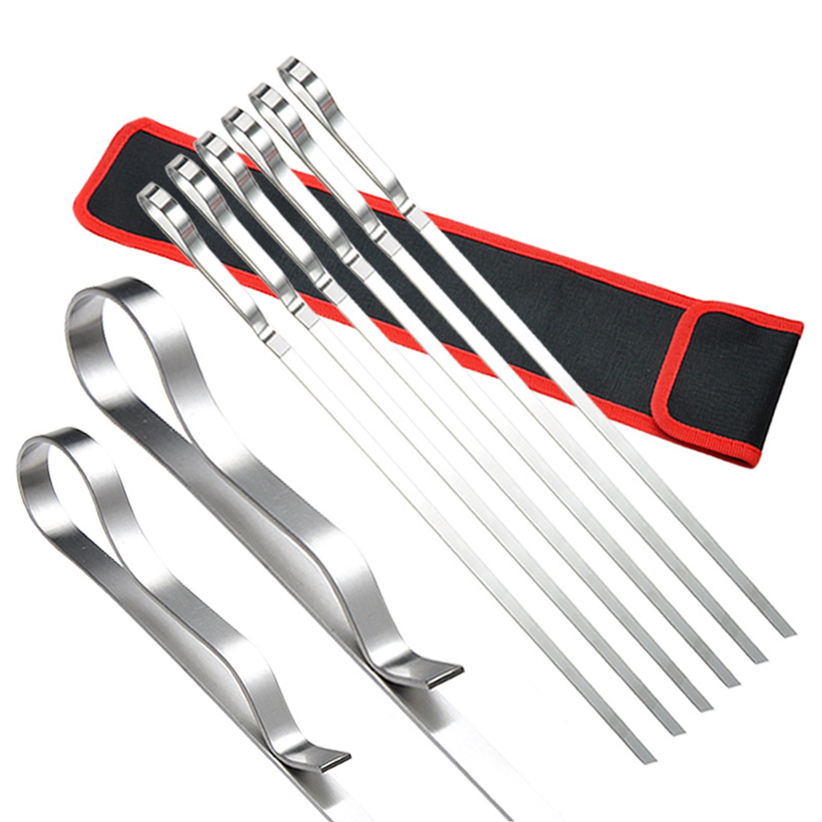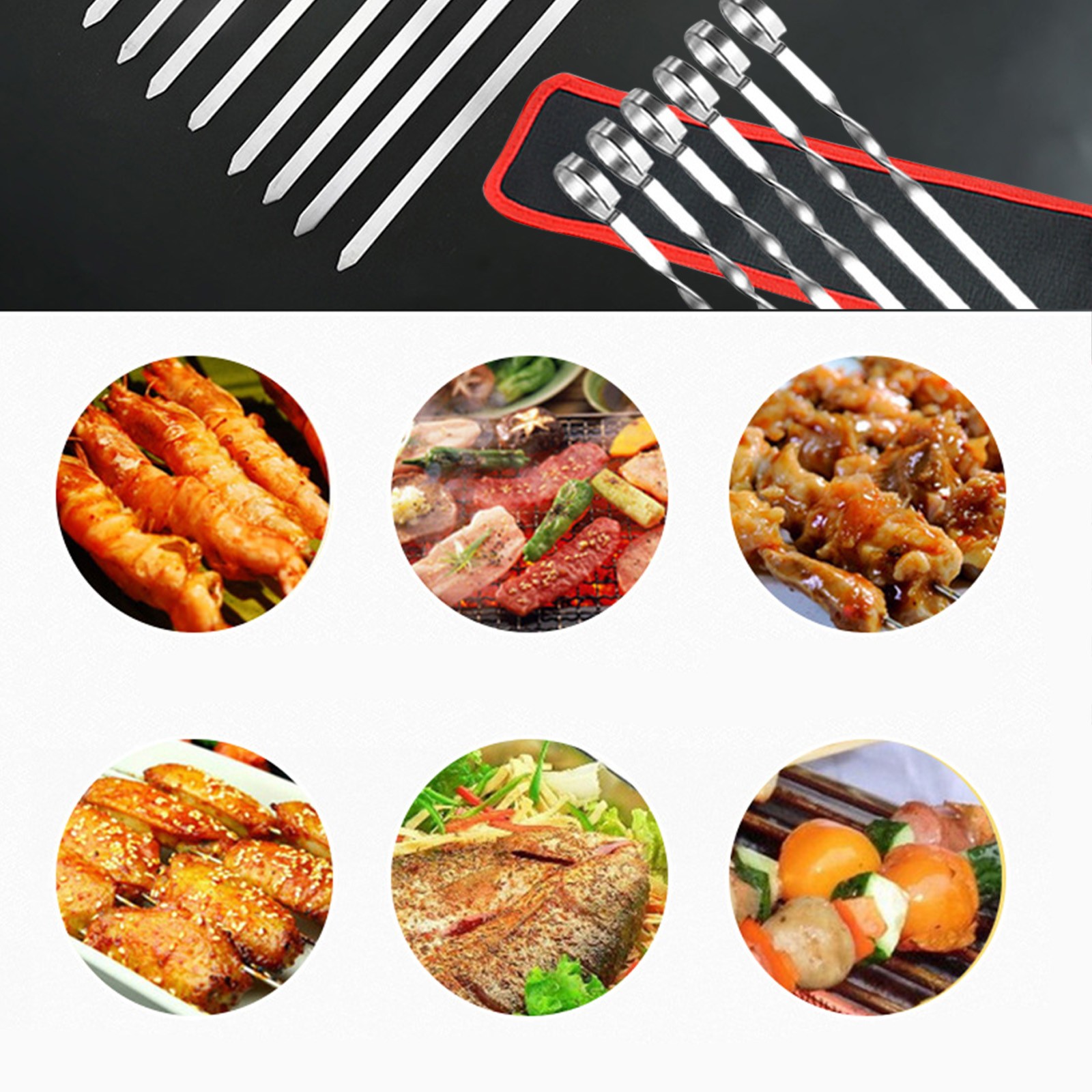 Шашлык для барбекю из нержавеющей стали: безопасная для пищевых продуктов нержавеющая сталь сделано, 100% безопасно, доступно и легко моется. Двойной шпагат для барбекю Kabob: лучше для гриля мяса или говядины, легко вращать мясо, равномерно нагревать. Делает продукты стабильными на гриле Ширина ручки: широкий дизайн ручки, удобно носить с собой шашлык для барбекю при гриле. Удобный и счастливый грильДизайн для удобства использования и очистки: Двойная зубчатая пряжа отлично подходит для приготовления мяса и небольших кусочков мяса и овощей. Пищевая нержавеющая сталь очень безопасна и легко моется, безопасна в посудомоечной машине