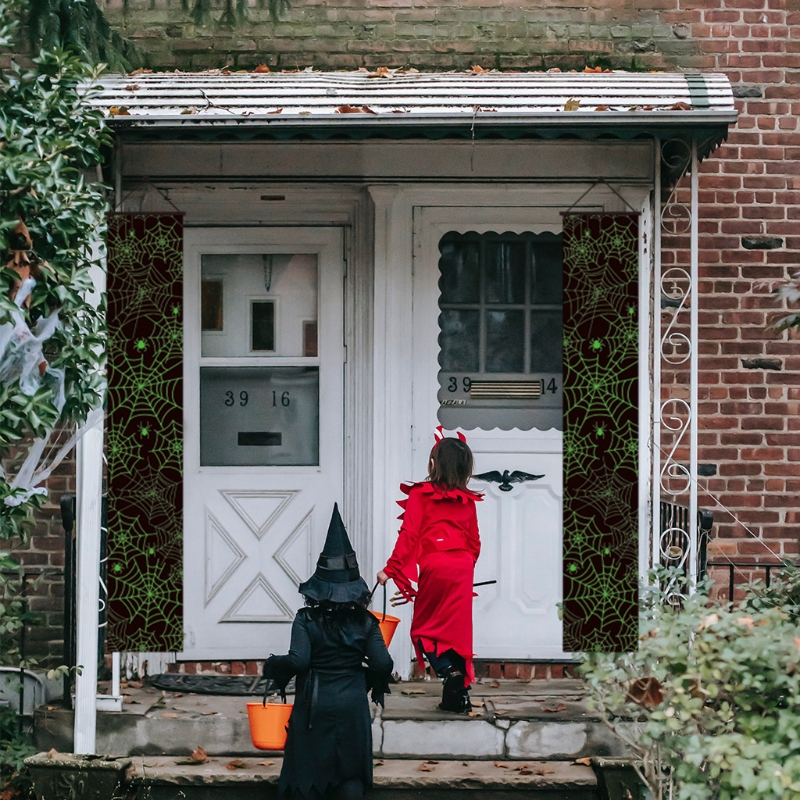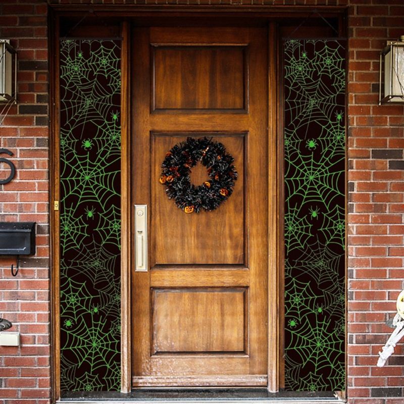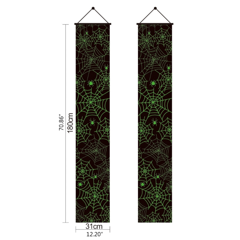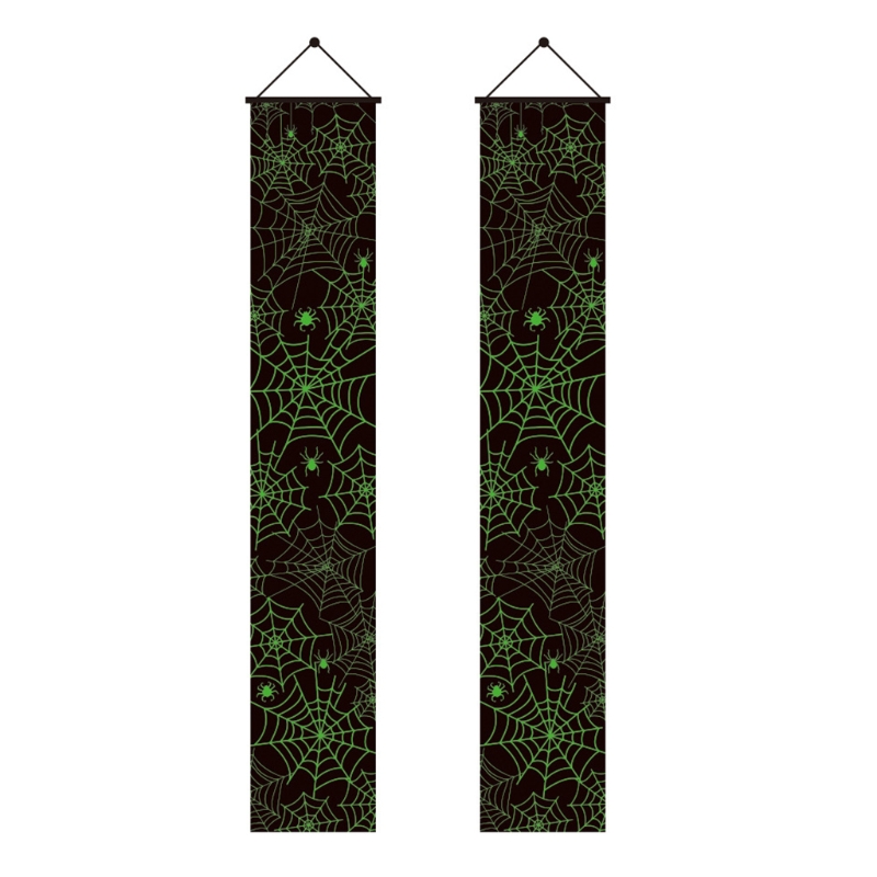 H051 Halloween Decorations Luminous Spider Web Front Porch Signs Glow in the Dark Banner Couplet for Door Outdoor Yard Garden