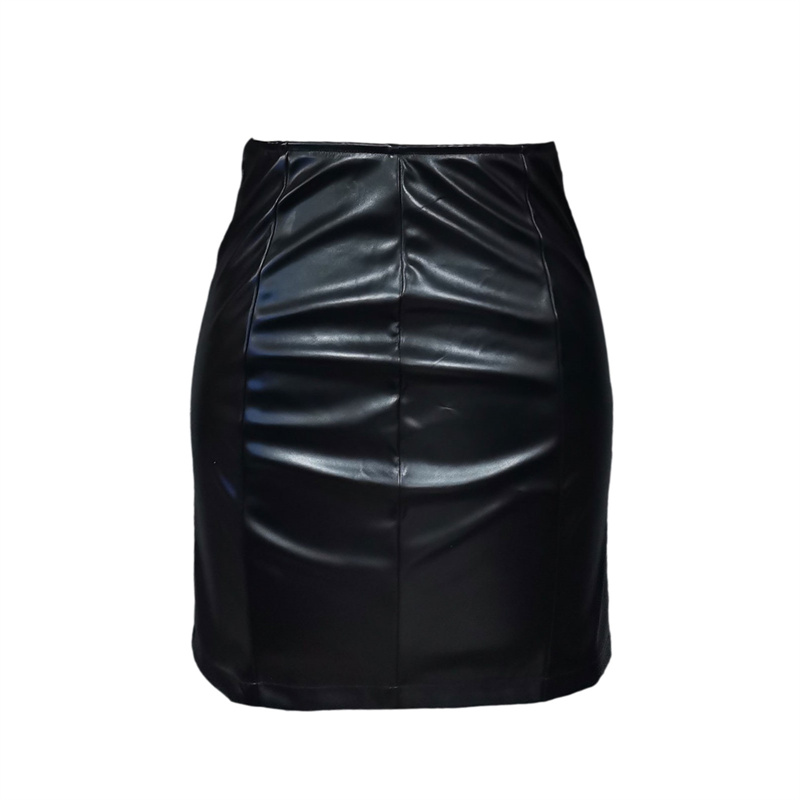 Высокая талия мини-юбка, чистый цвет без рисунка, дизайн бедра, простой и стильный.