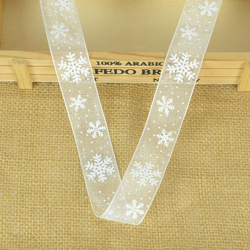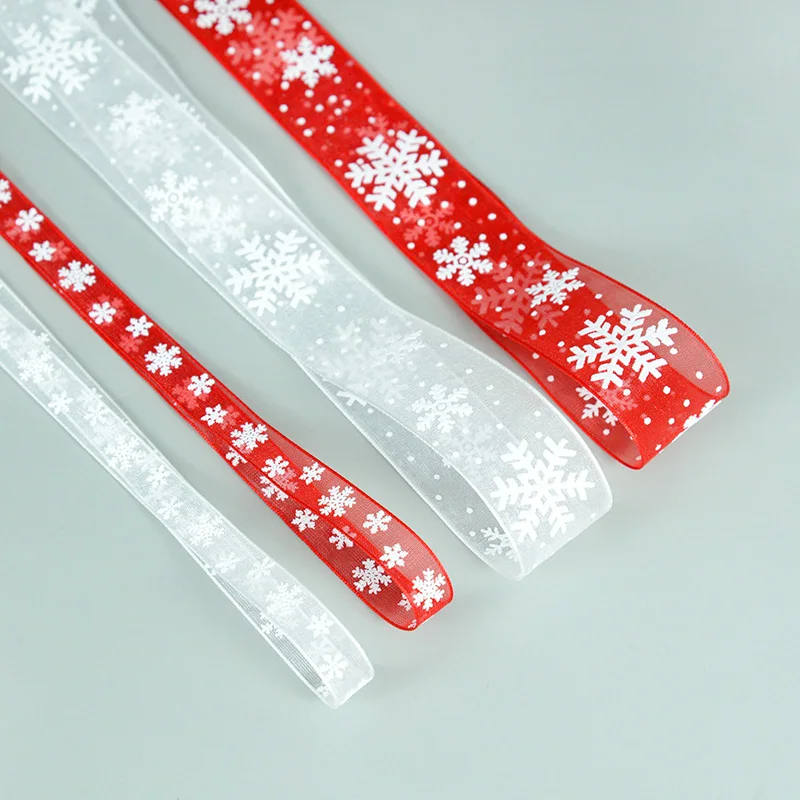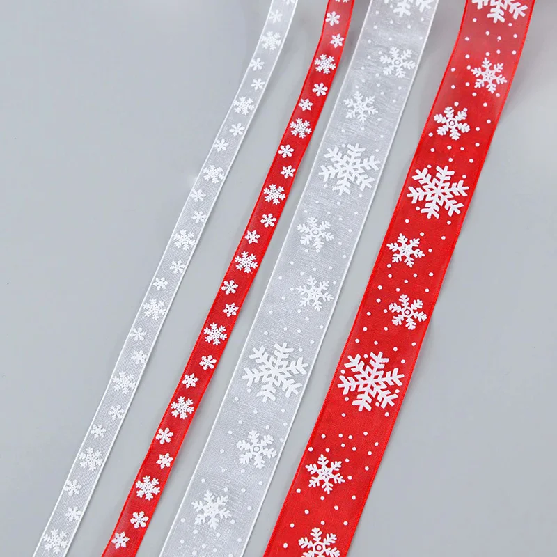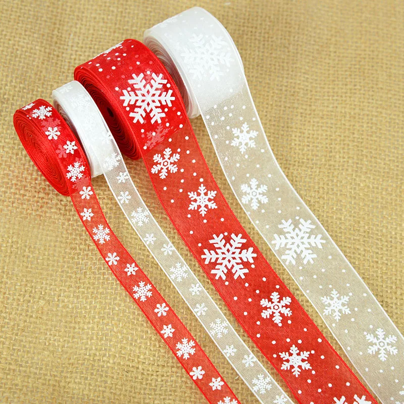 10/25 мм Рождество органза лента 5 м/20 м красного/белого цвета с принтом снежинок; С принтом