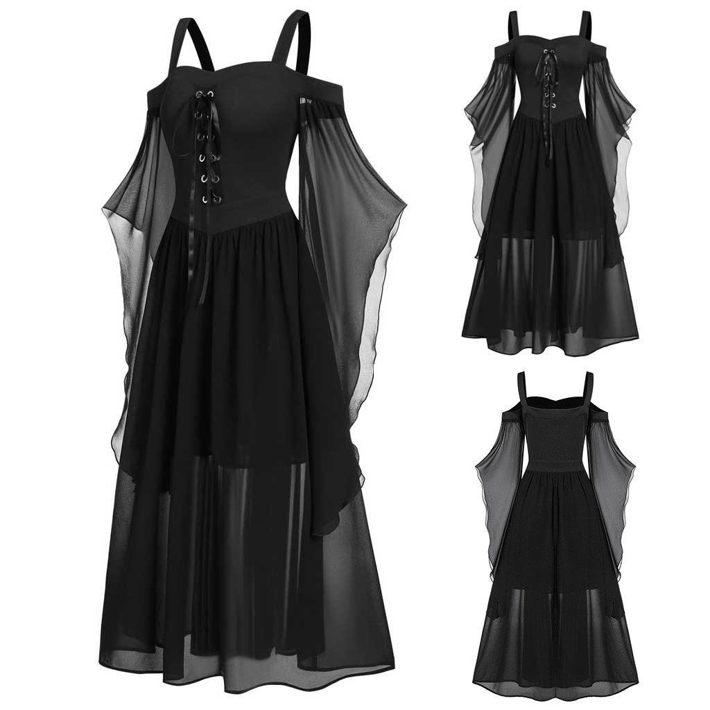 Женское платье для хеллоуина размера плюс с открытыми плечами и рукавом-бабочкой на шнуровке