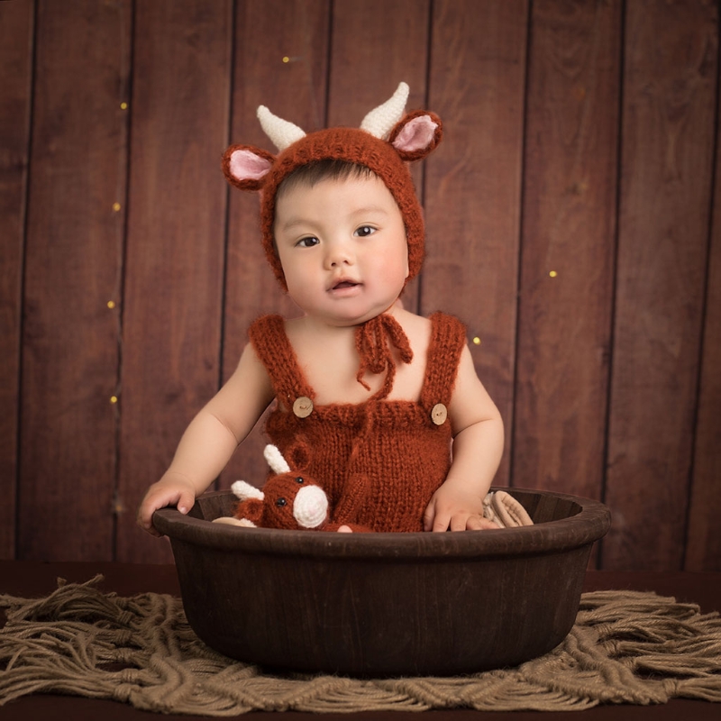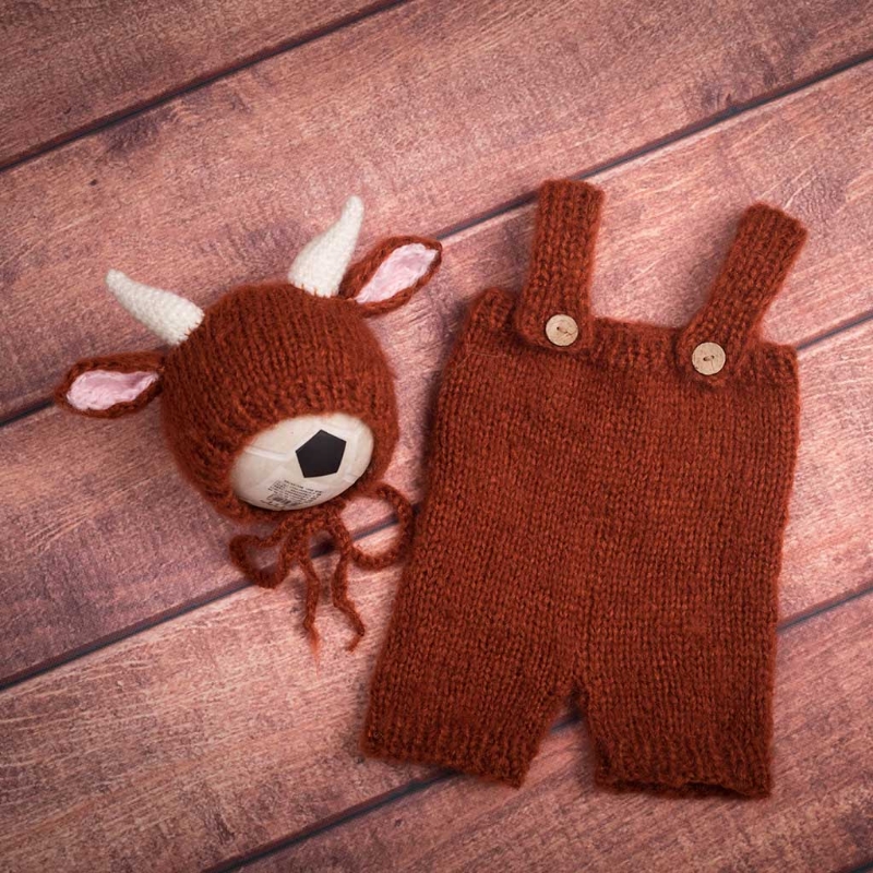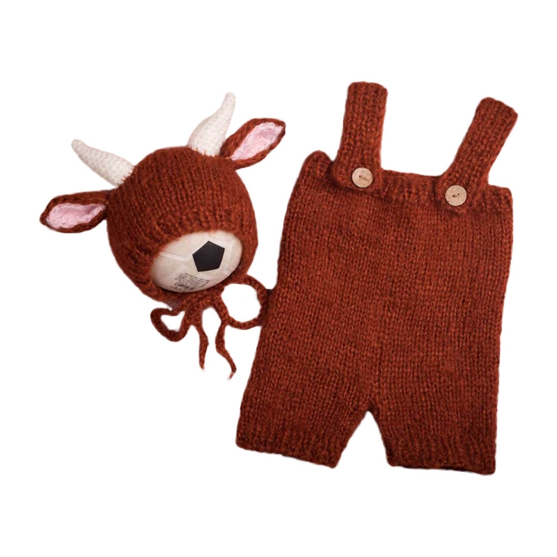 67JC 2 шт новорожденных Фотография реквизит Одежда связанная крючком ребенок милые коровы комбинезон шляпа набор младенцев фото съемки шапочки шапка комбинезон