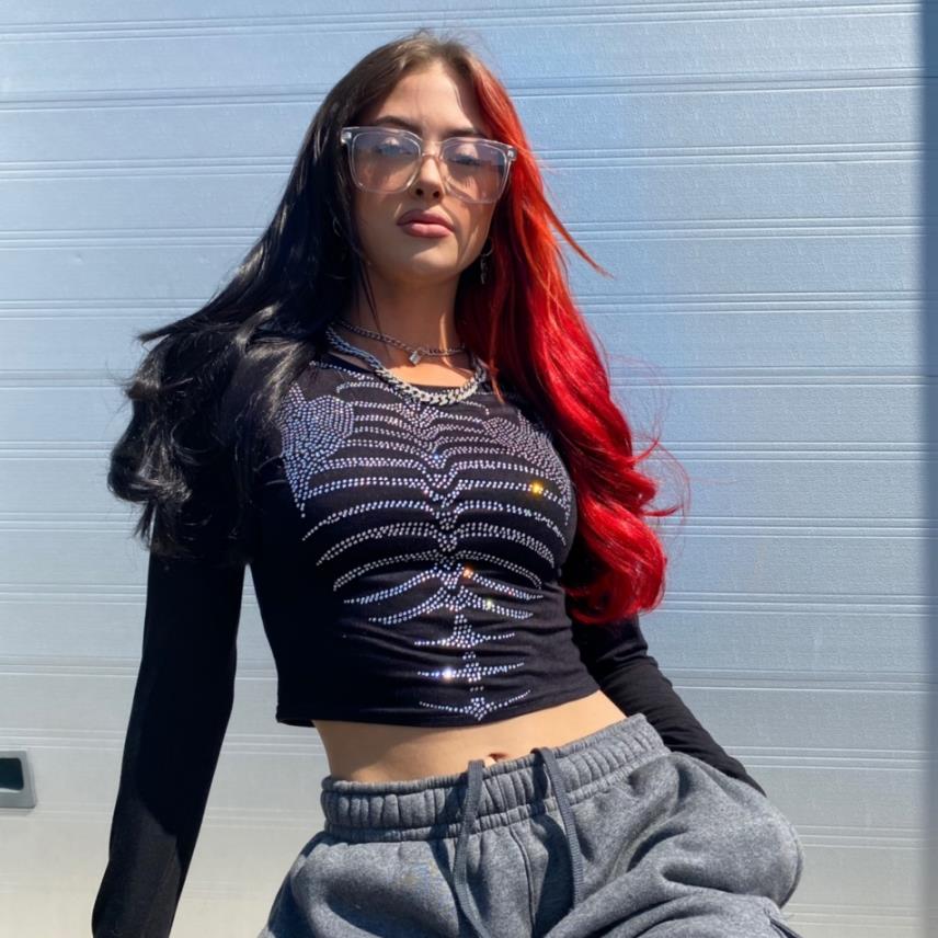 Женская модная футболка с длинными рукавами и принтом в виде скелета, стразы --- эти повседневные топы с круглым вырезом придают любой фигуре классический зауженный крой и подчеркивают фигуру. Наслаждайтесь модной футболкой без ущерба для комфорта, классические цвета лучше всего подойдут вашему вкусу и стилю.