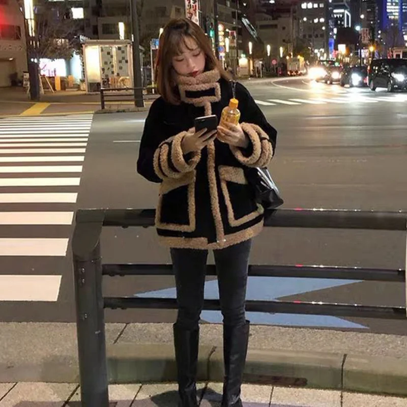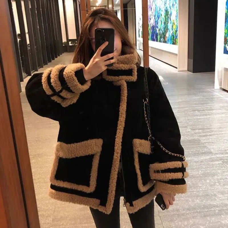 Куртка женская клетчатая оверсайз с отложным воротником модный пиджак