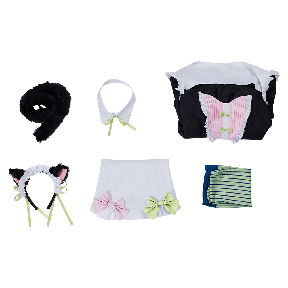 Included:Dress + Tail + Apron + Neck Ribbon Ornament + Fake Collar + Headband + Stocking*2