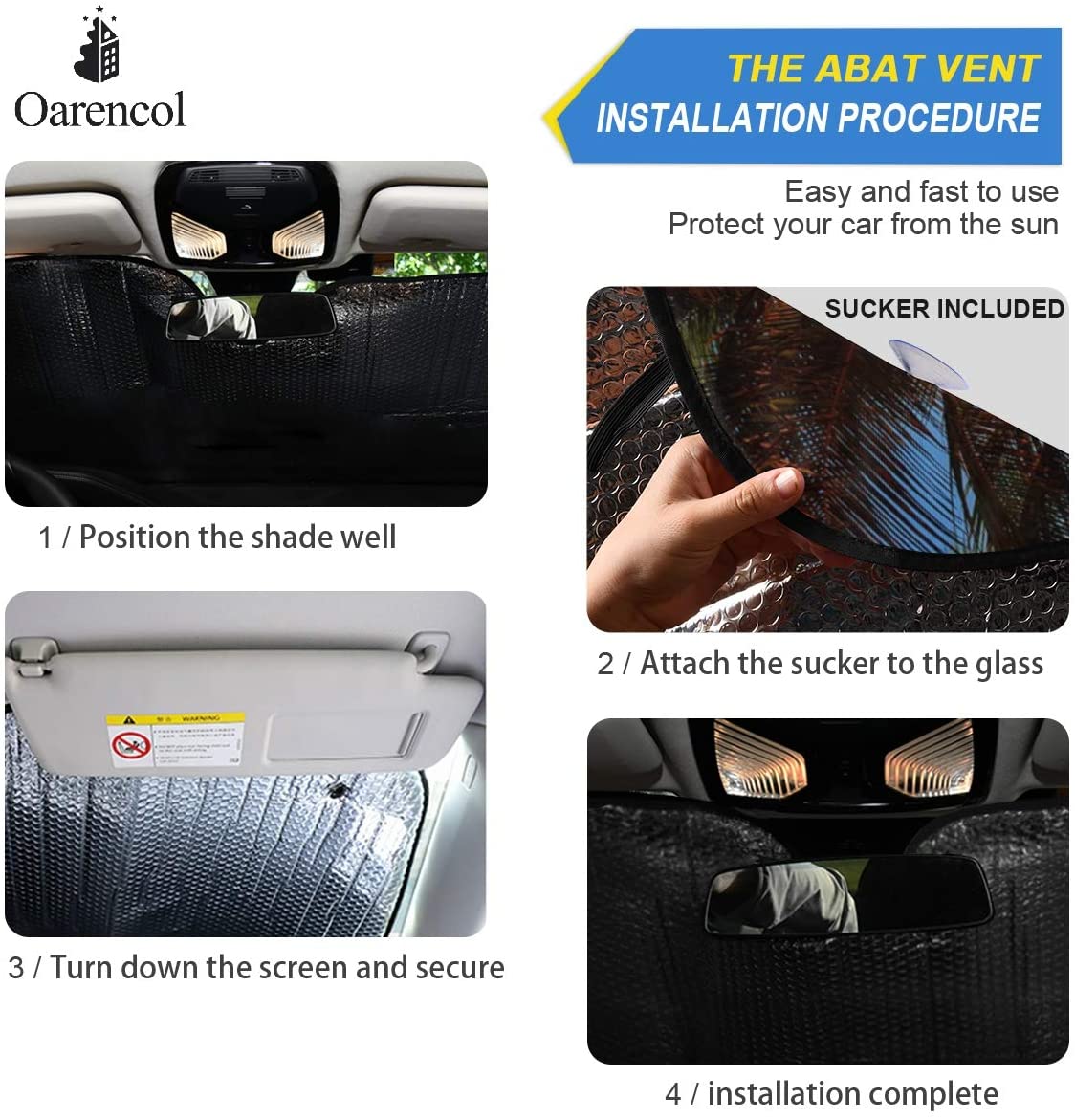 Потный или несчастный? Вы когда-нибудь открывали дверь, чтобы разразиться горячим воздухом? Солнцезащитный козырек от лобового стекла Oarencol защищает вас от солнечного тепла и вредных ультрафиолетовых лучей.