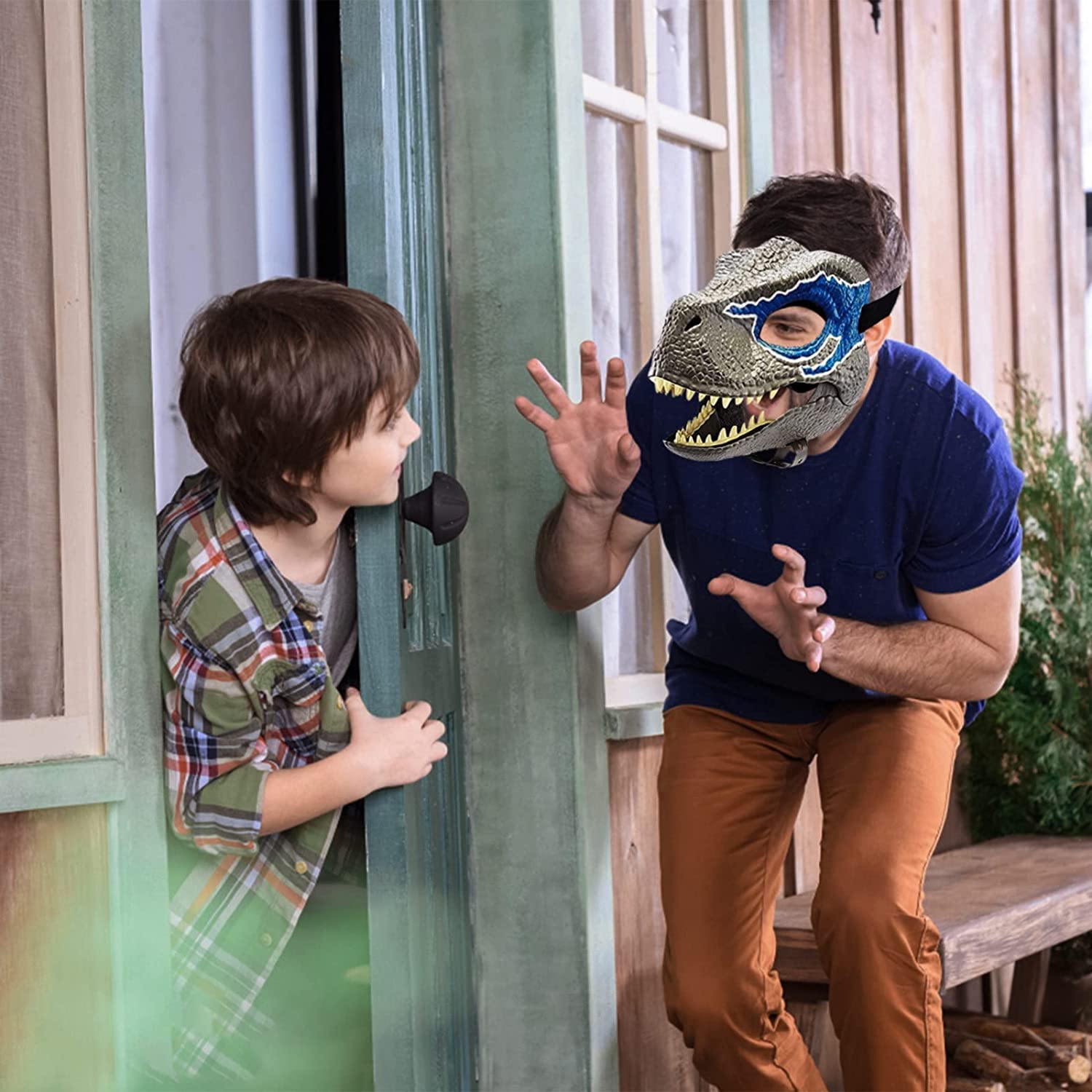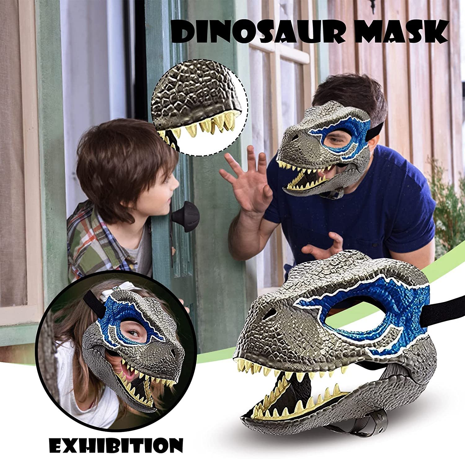 Маски динозавров вдохновлены культовым тираннозавром Рекс и велоциратором фильма и имеют реалистичные детали, такие как текстура кожи, цвет и зубы, чтобы дети могли стать их любимыми динозаврами!