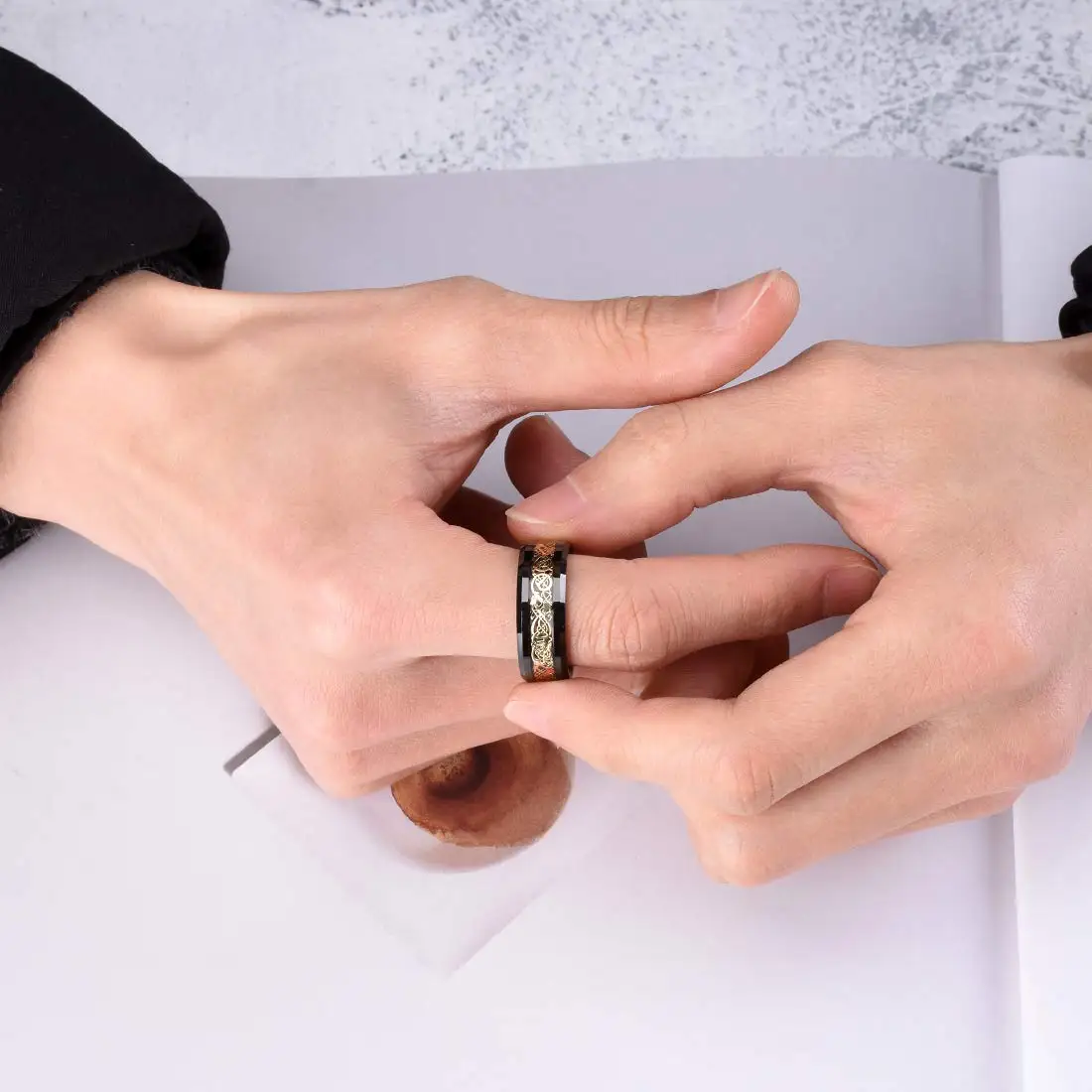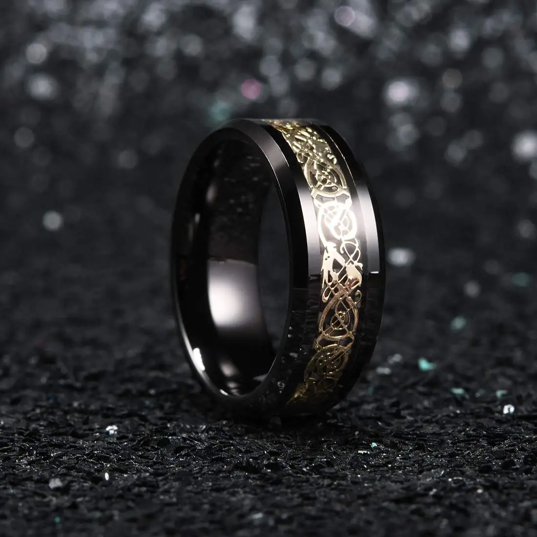 2021 Трендовое 8 мм черное кольцо с закругленными краями, черное вольфрамовое свадебное кольцо для мужчин, Золотое кольцо из кельтского дракона с инкрустацией, черное кольцо из углеродного волокна