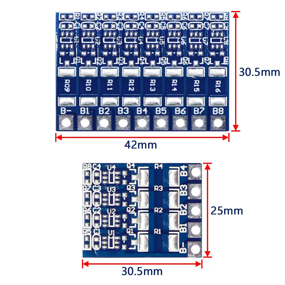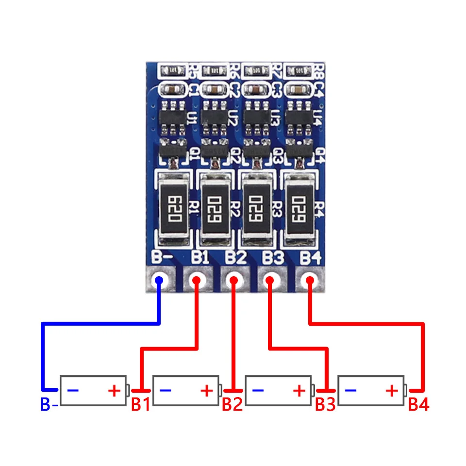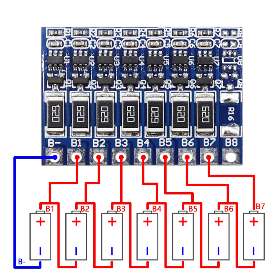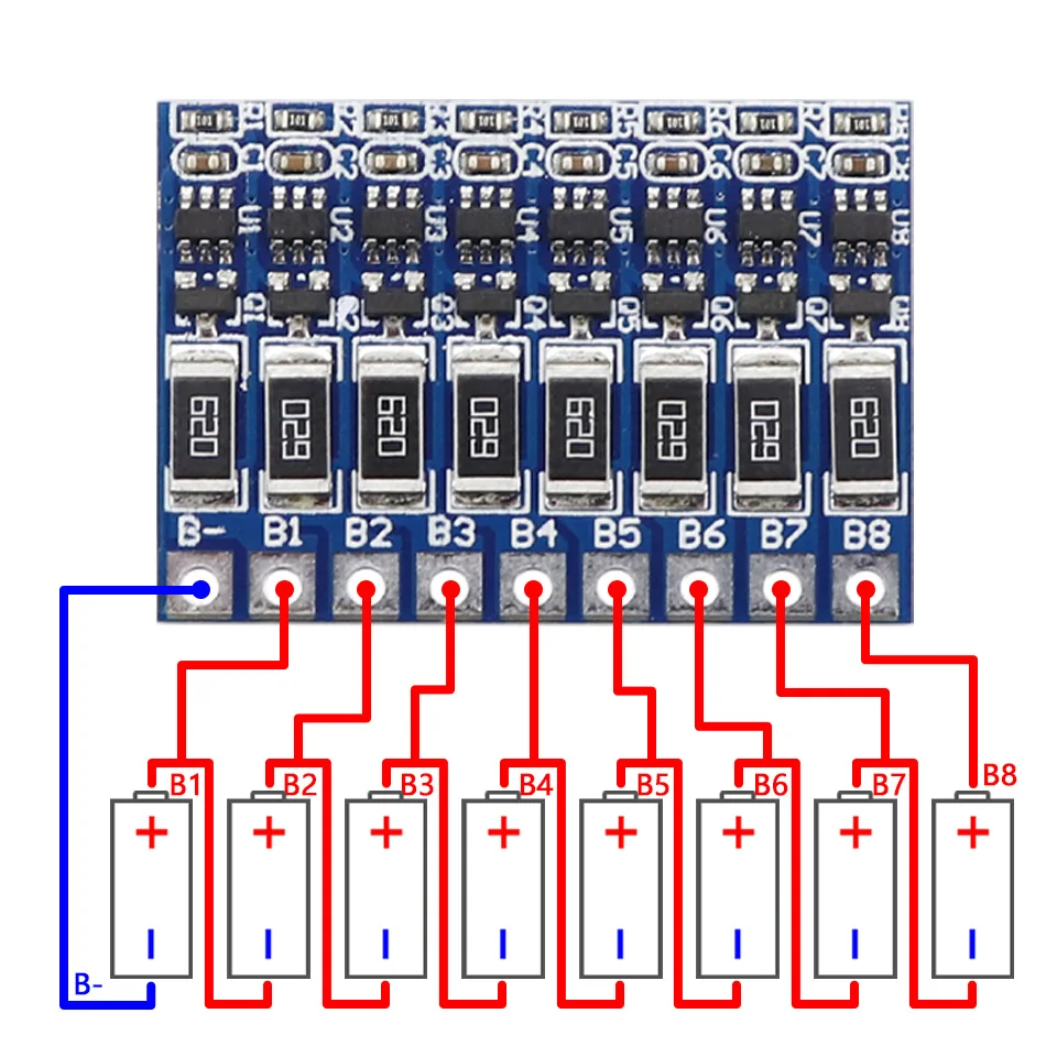 Выравнивающий чип не имеет функции защиты от разрядки и не может заменить защитную плату. Когда аккумулятор заряжается, первый полностью заряженный аккумулятор разряжается через сопротивление, чтобы сделать шунт сбалансированным.
