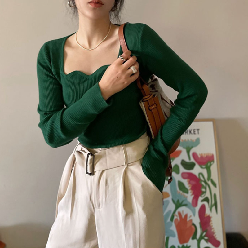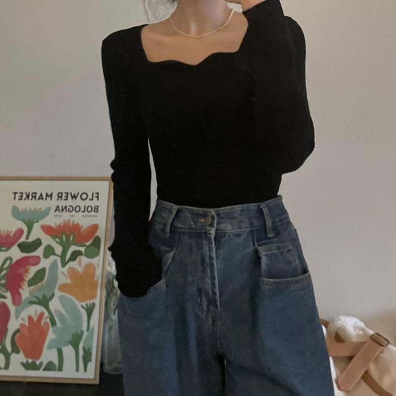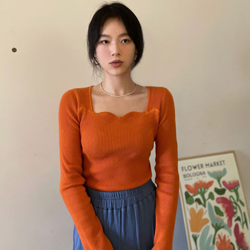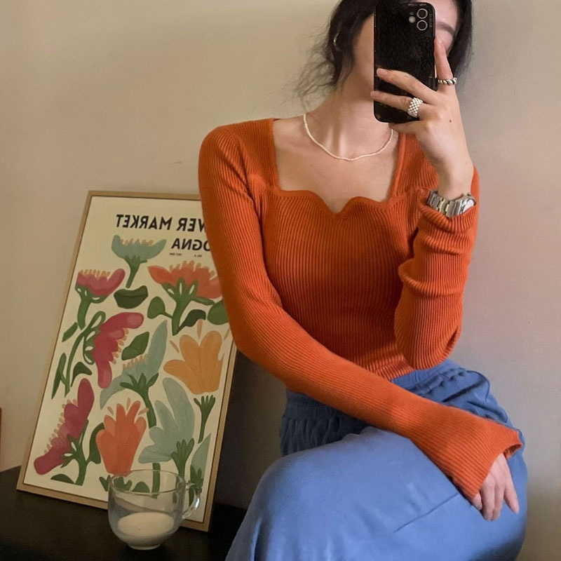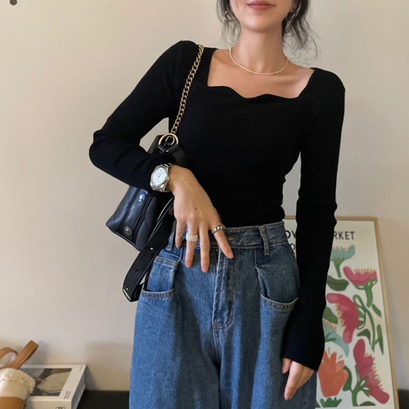 Женский трикотажный свитер с круглым вырезом Голубой пуловер аппликацией и