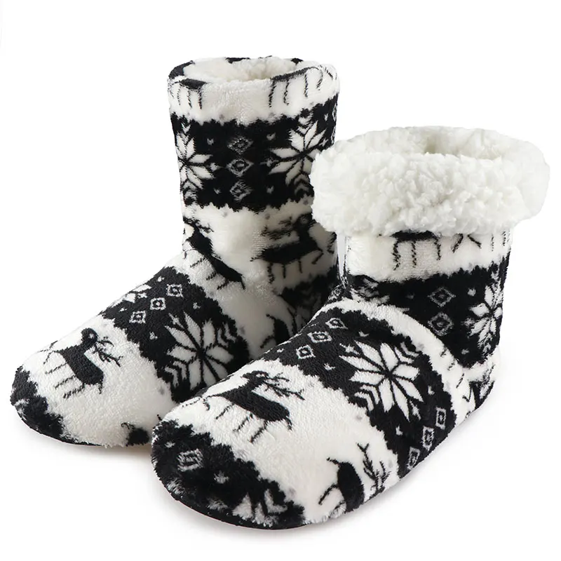 Зимние меховые тапочки; Женские теплые домашние тапочки; Плюшевые Вьетнамки; Рождественская домашняя обувь из хлопка; Обувь для дома; Обувь для пола; Цвет Черный; <;br/>; Размер: 25 см (36-38, EU / 5-7, US)<;br/>27 см (39-41 EU/7,5-9 US)