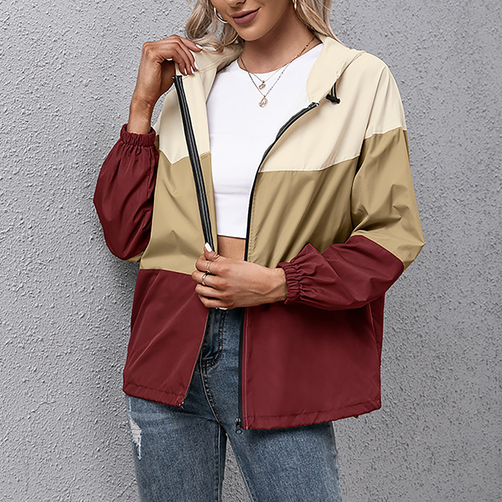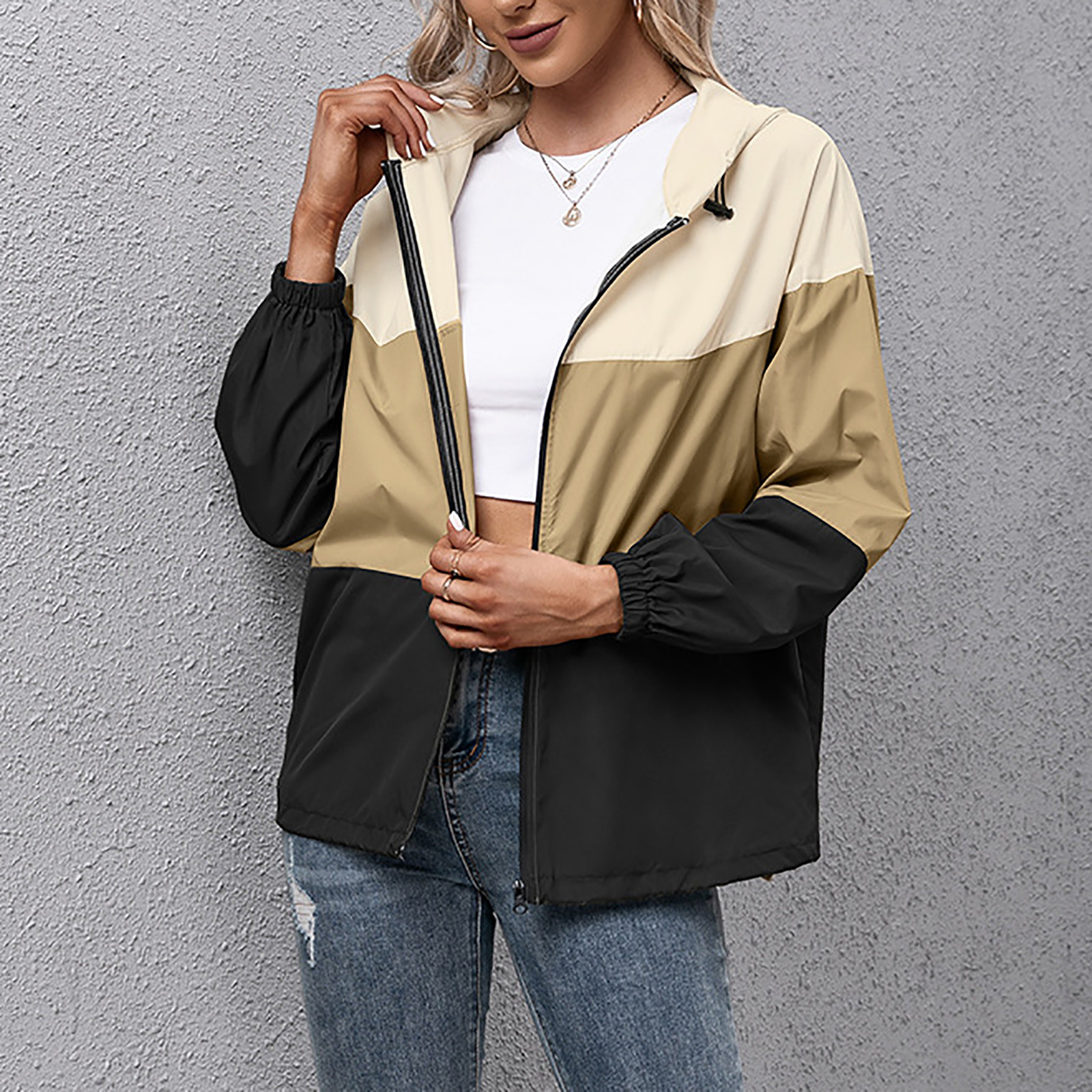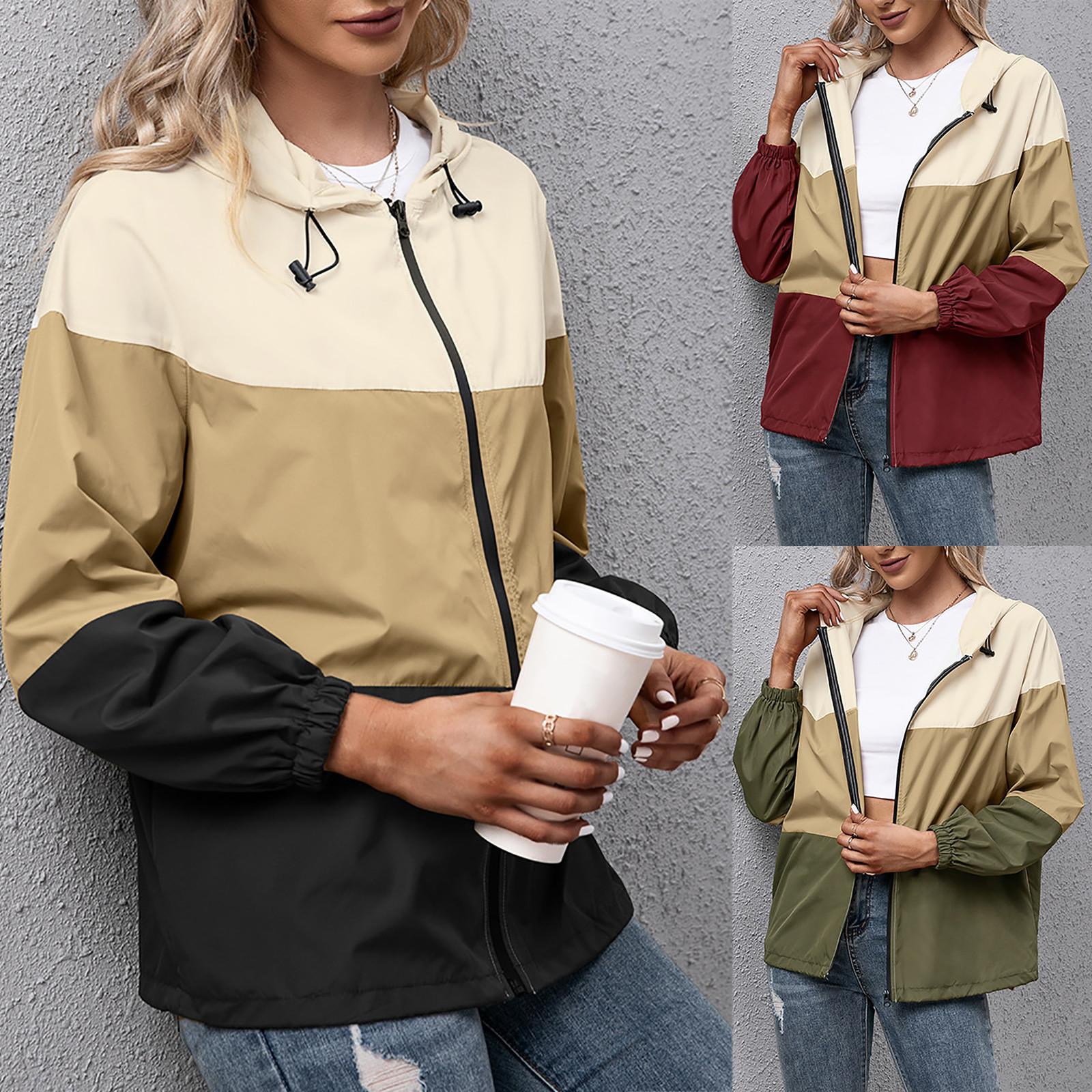 1. Дизайн: с длинными рукавами, с сочетающимися цветами, для занятий спортом на открытом воздухе, ветрозащитная и непромокаемая ветровка с капюшоном и карманами;