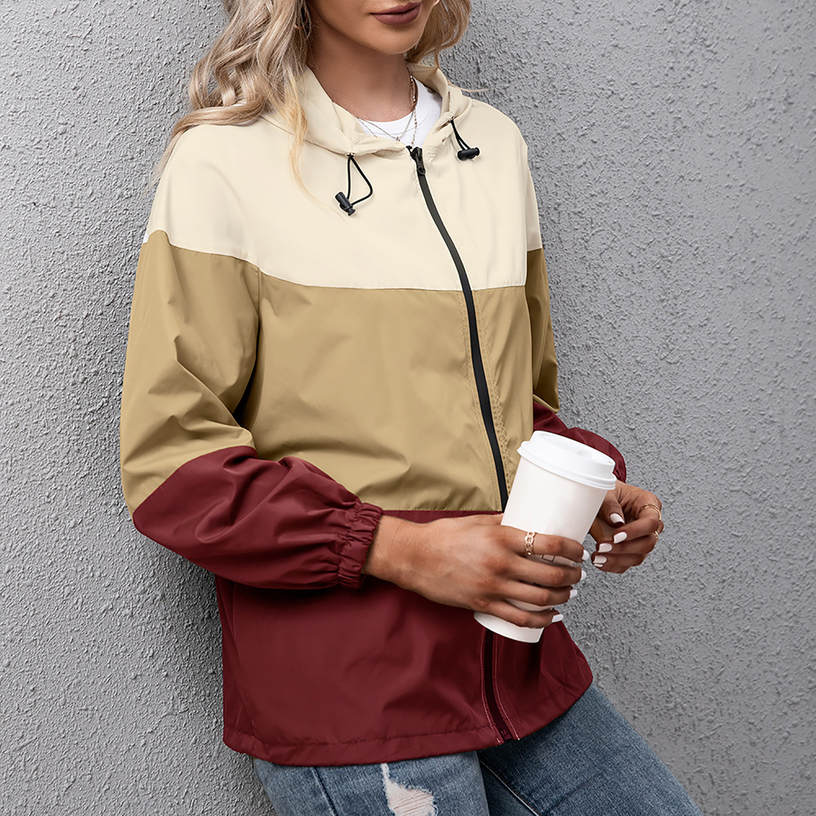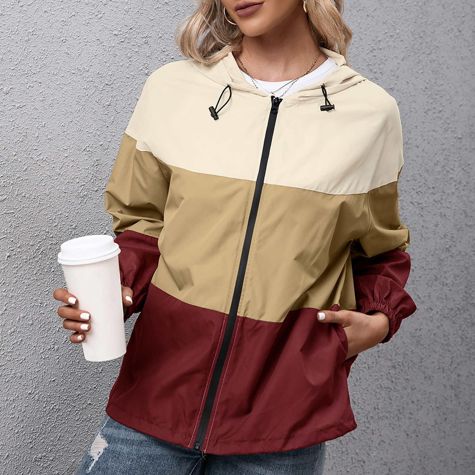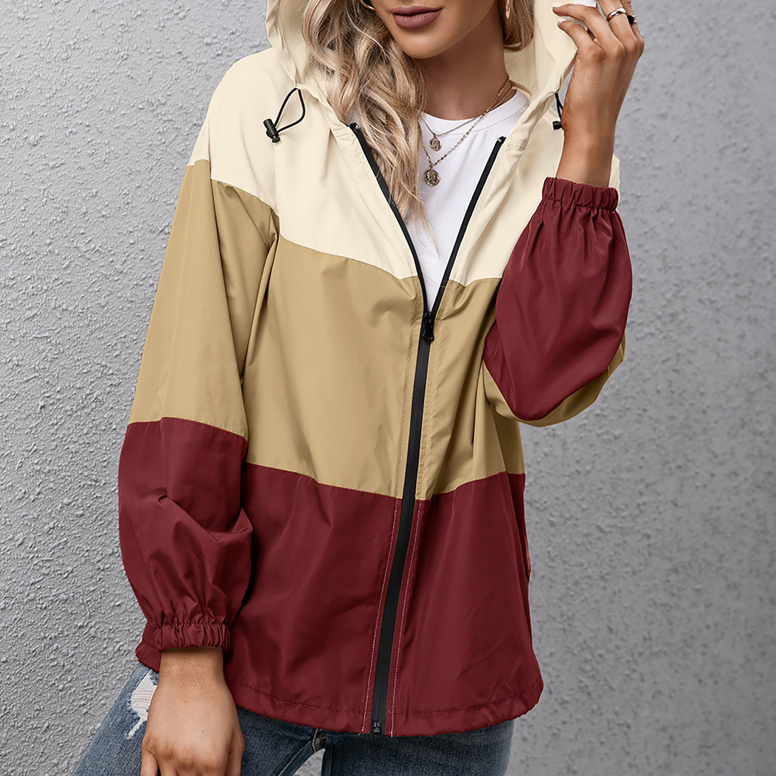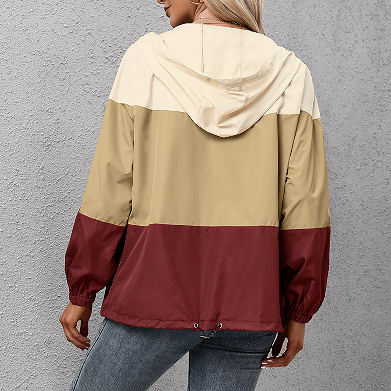 1. Дизайн: с длинными рукавами, с сочетающимися цветами, для занятий спортом на открытом воздухе, ветрозащитная и непромокаемая ветровка с капюшоном и карманами;