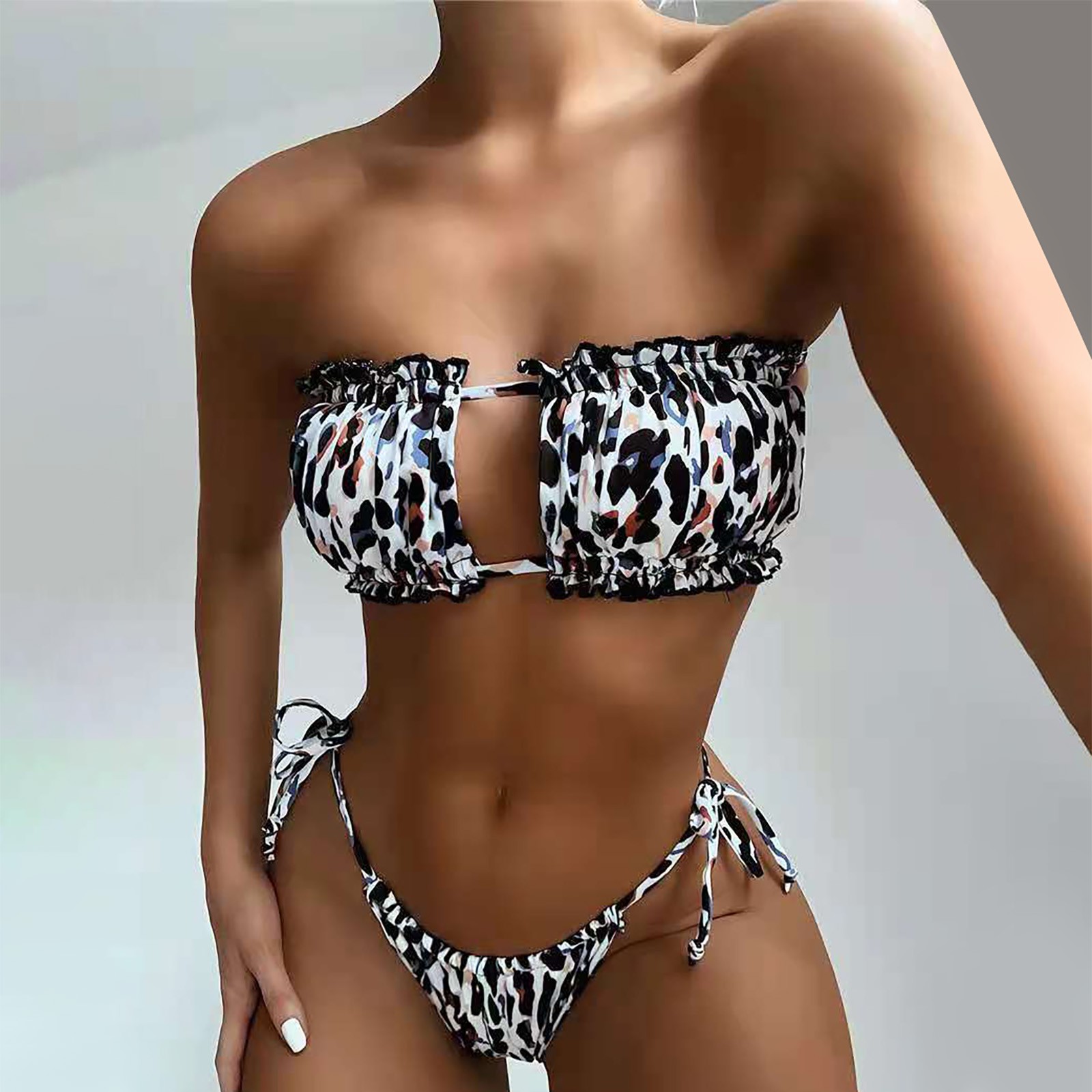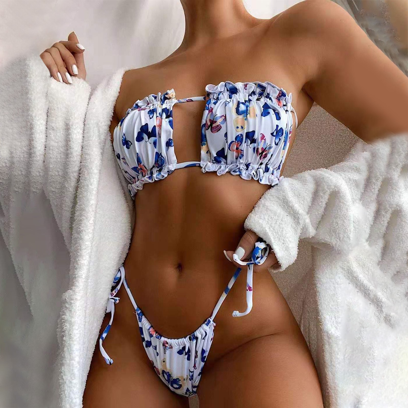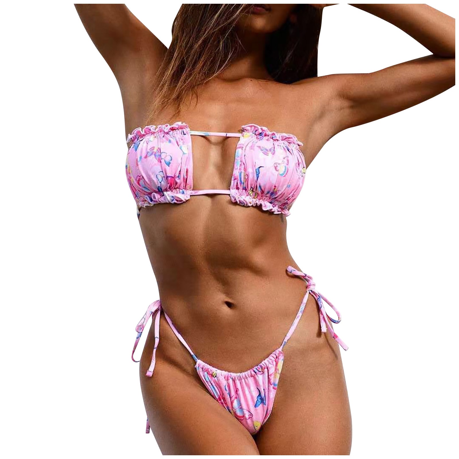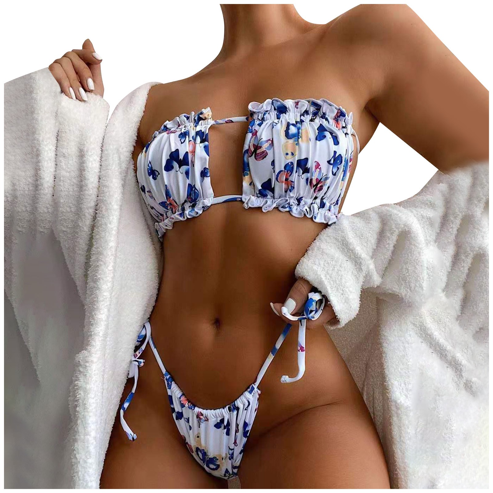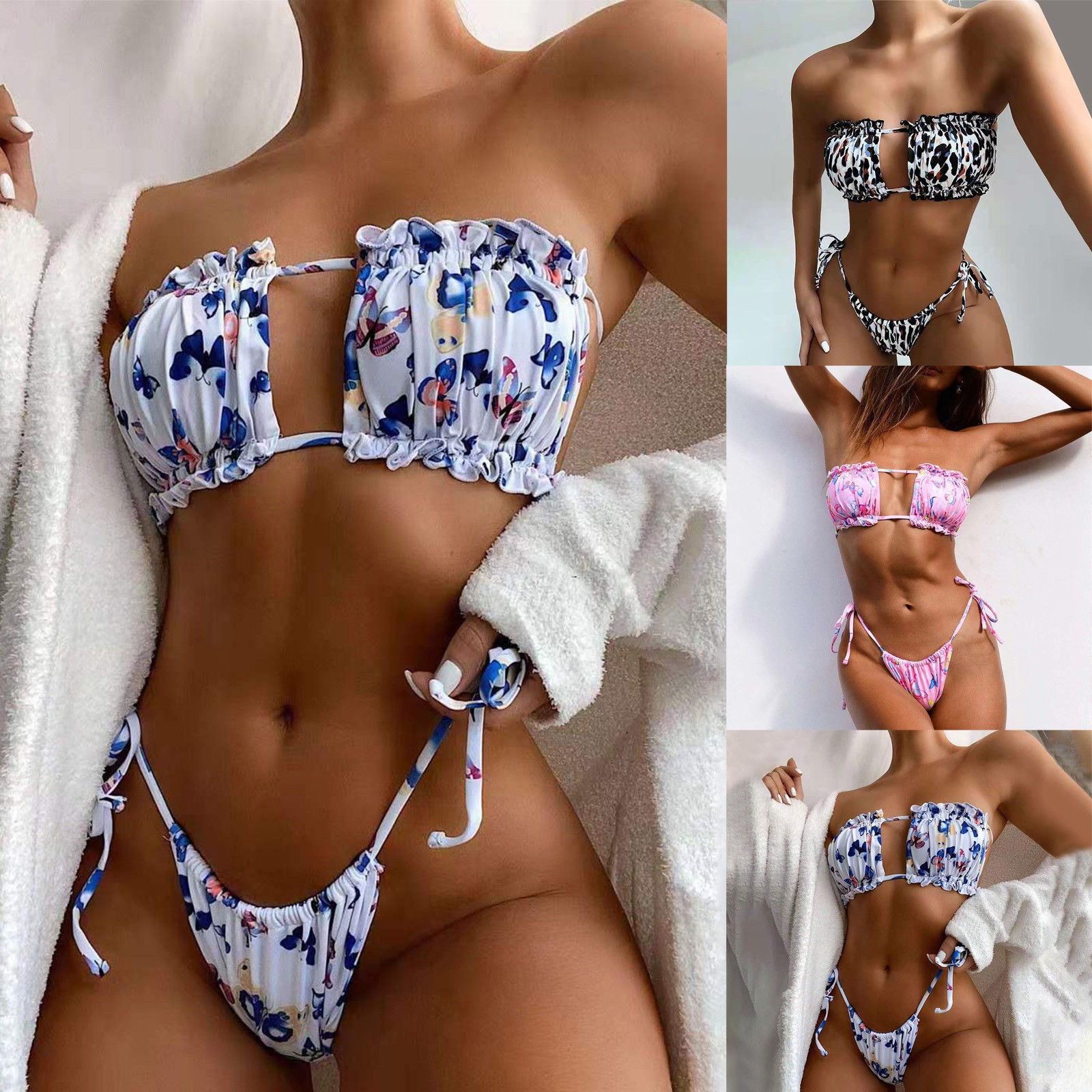 Women'S Split Swimsuit Temperament Sexy Open Back Pleated Hollow Beach Bikini
