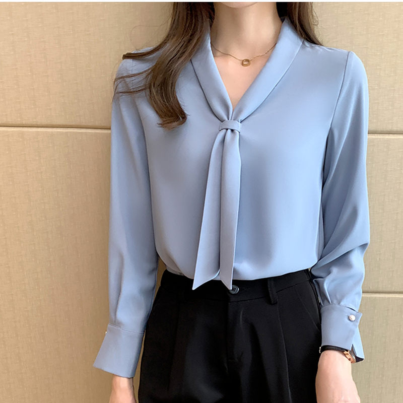 Рубашка женская шелковая с пышными рукавами офисная блузка на пуговицах