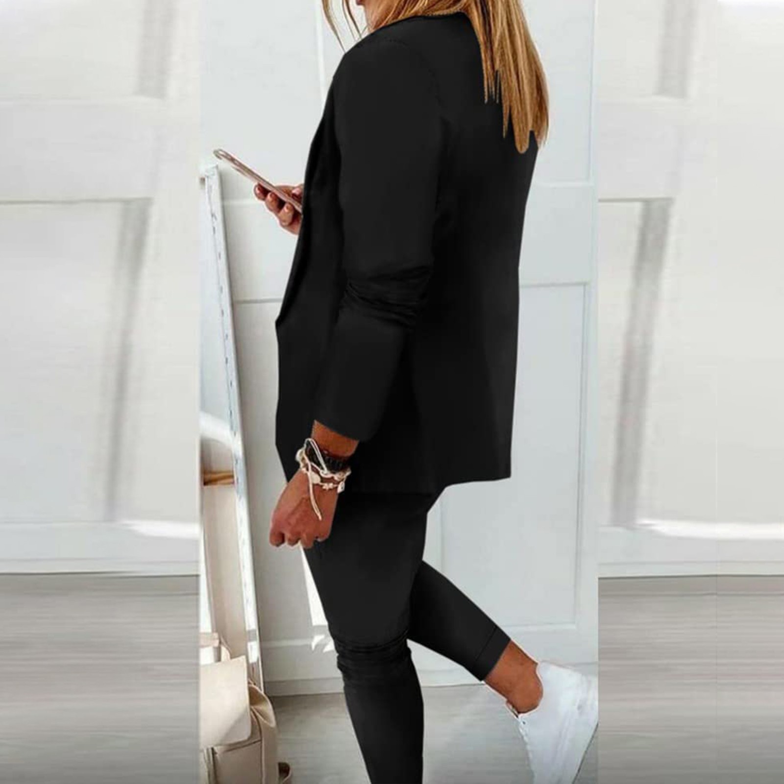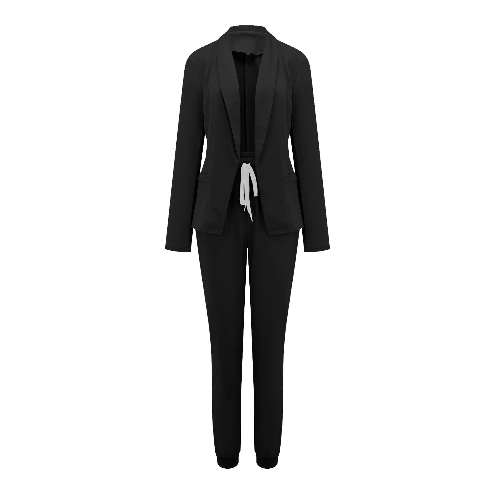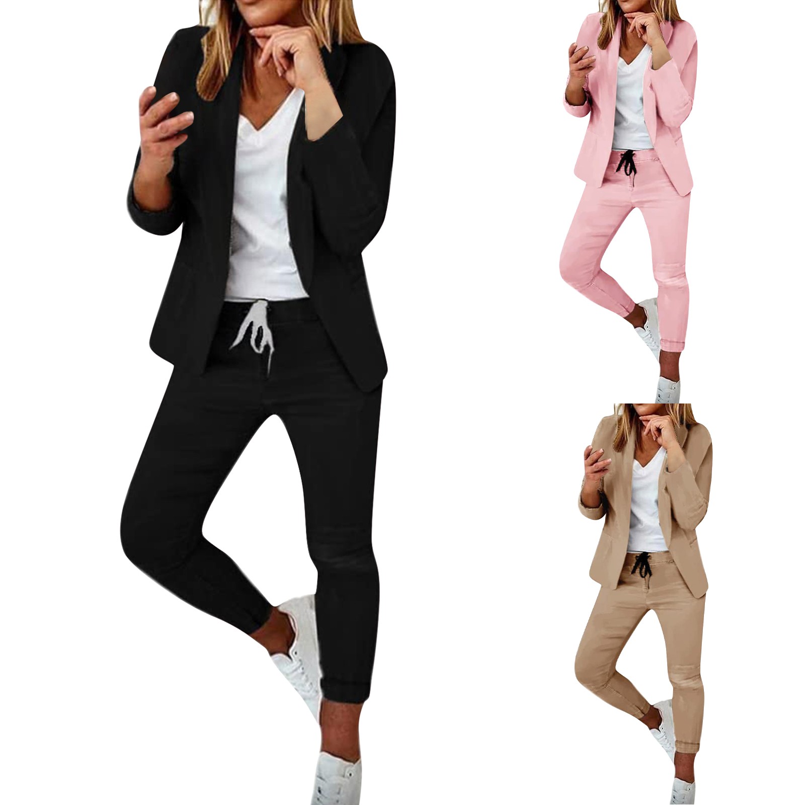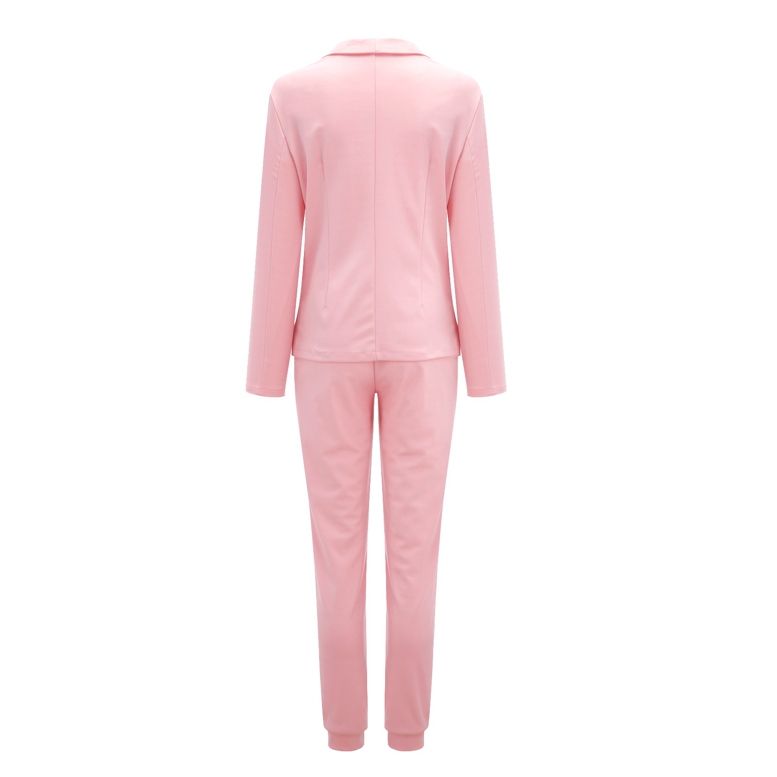 Женский костюм из двух предметов с лацканами, деловой костюм с длинными рукавами, приталенный брючный костюм
