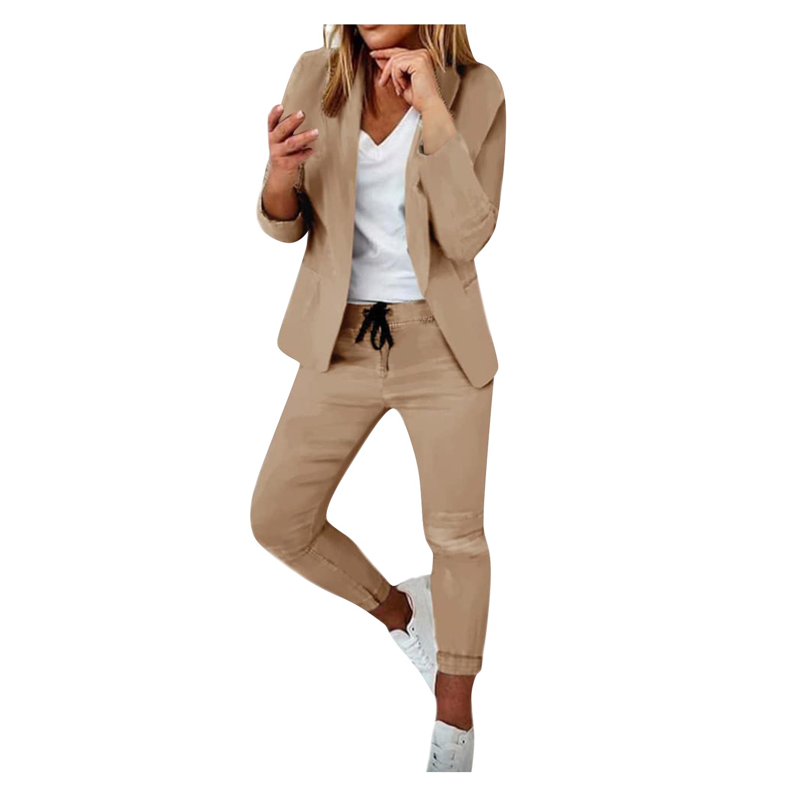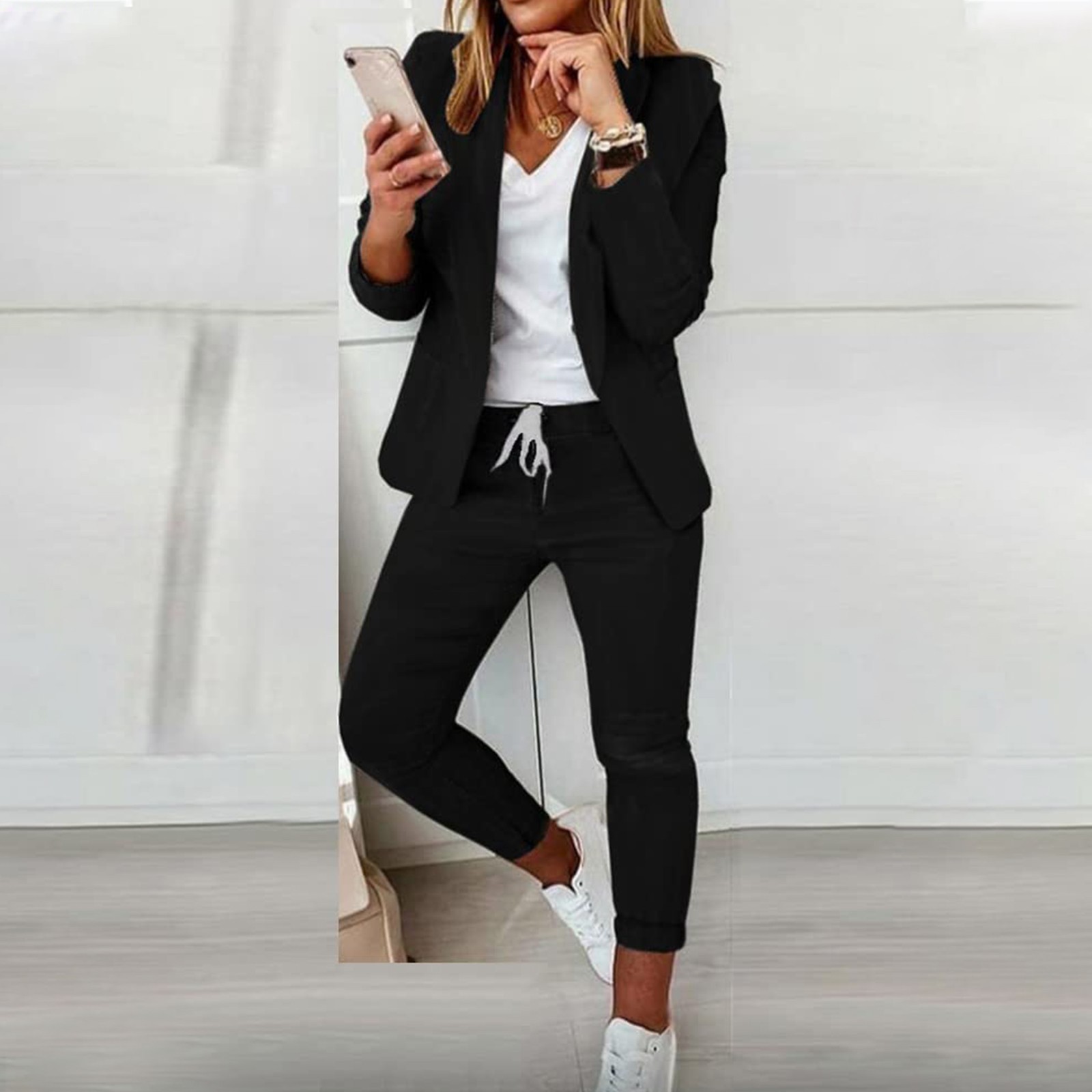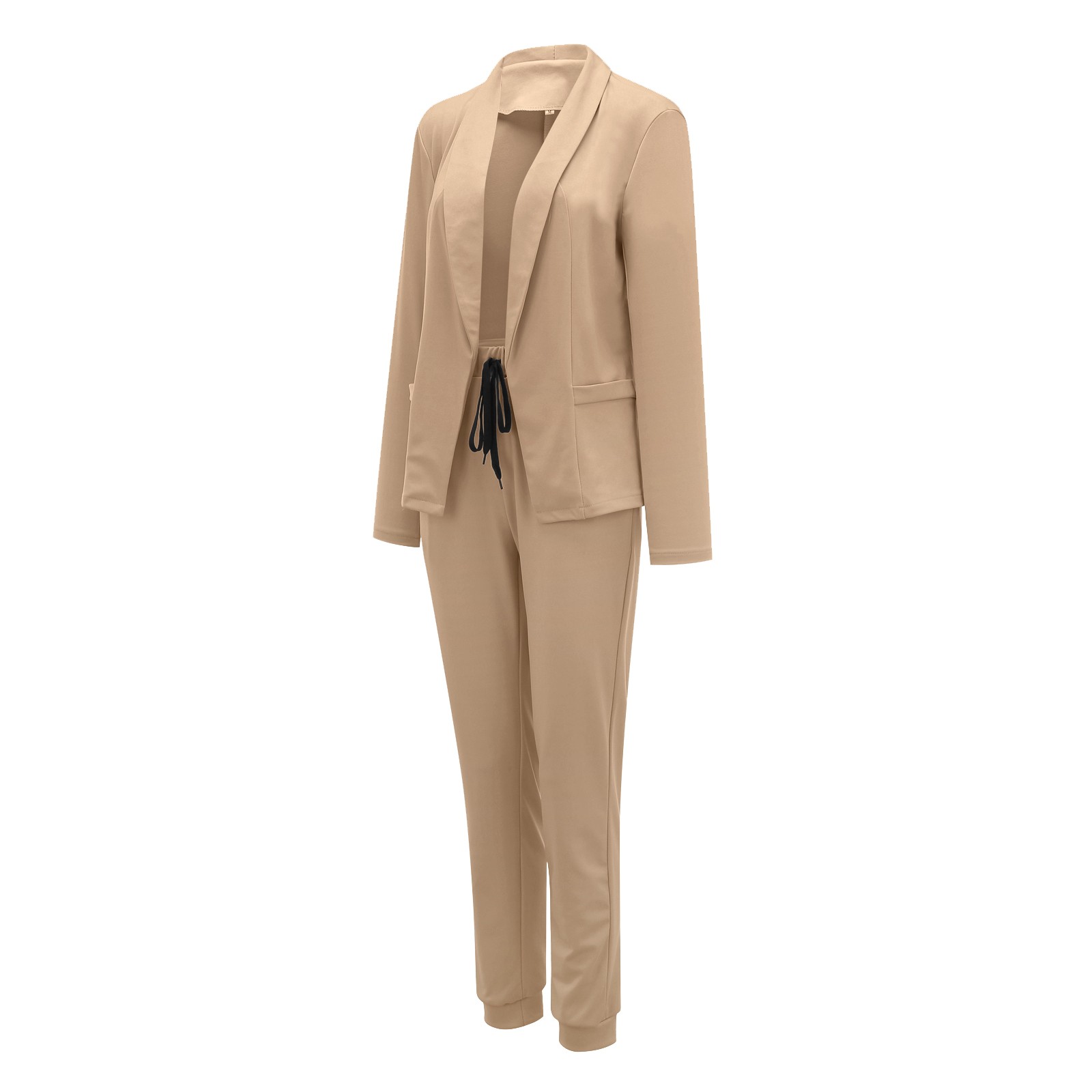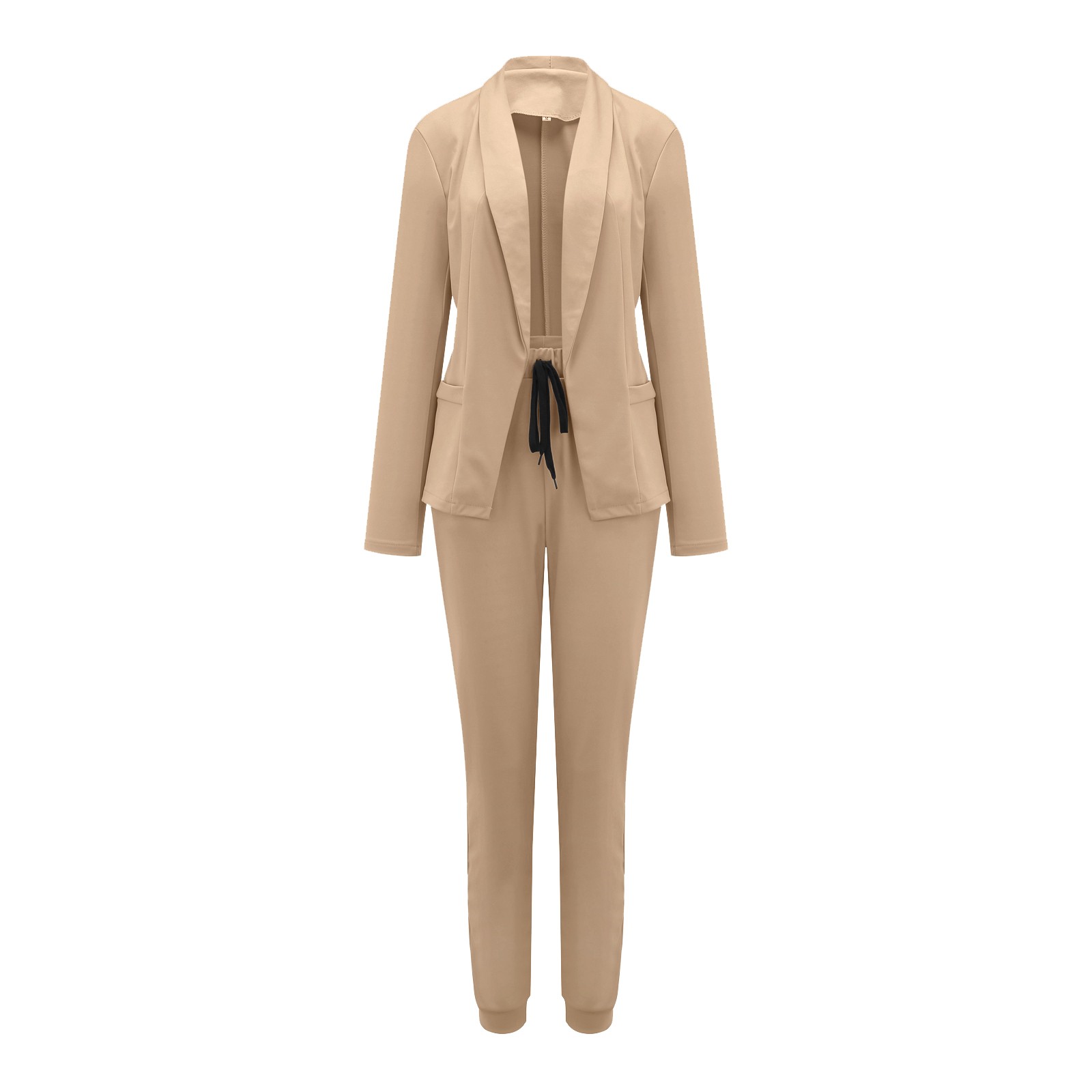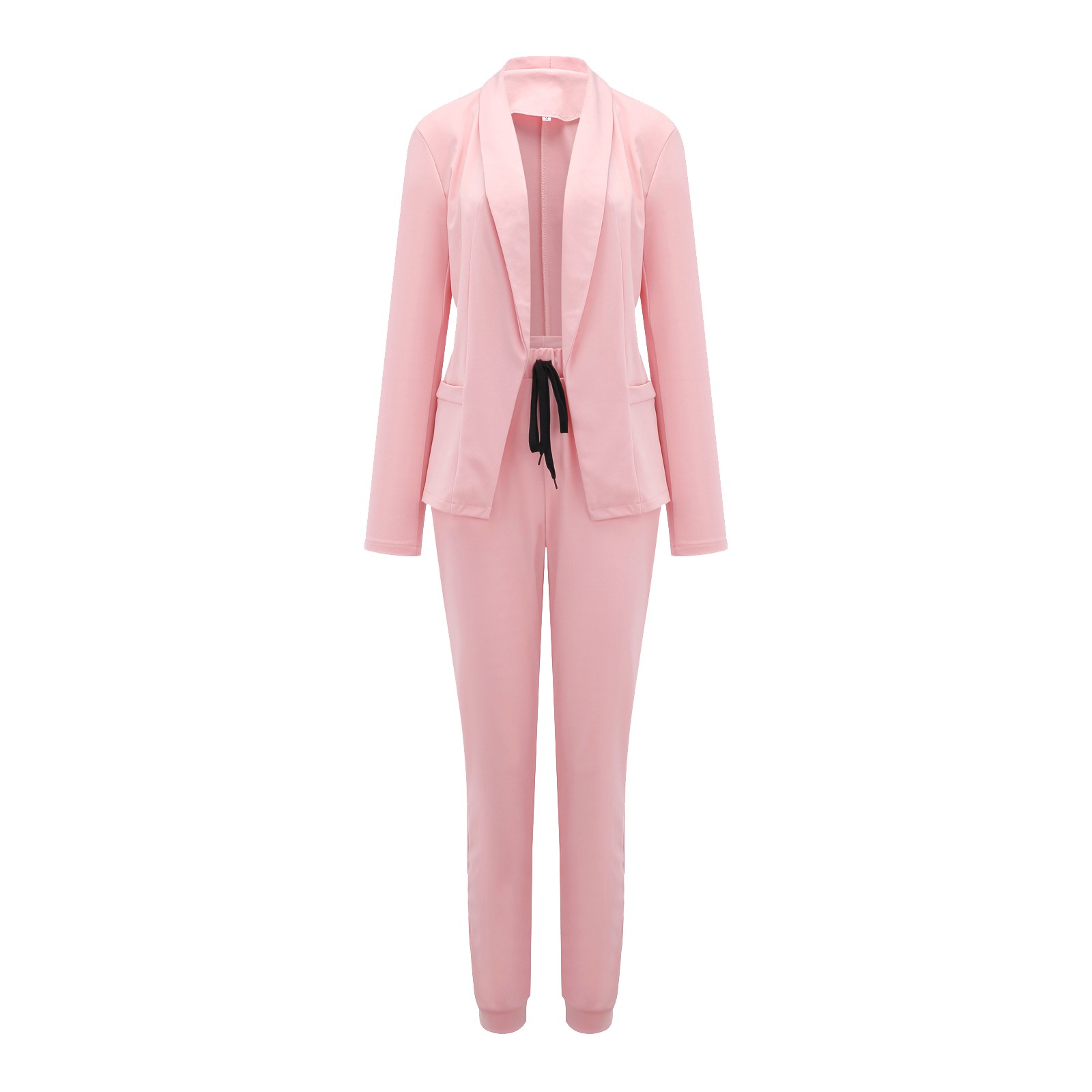 Женский костюм из двух предметов с лацканами, деловой костюм с длинными рукавами, приталенный брючный костюм