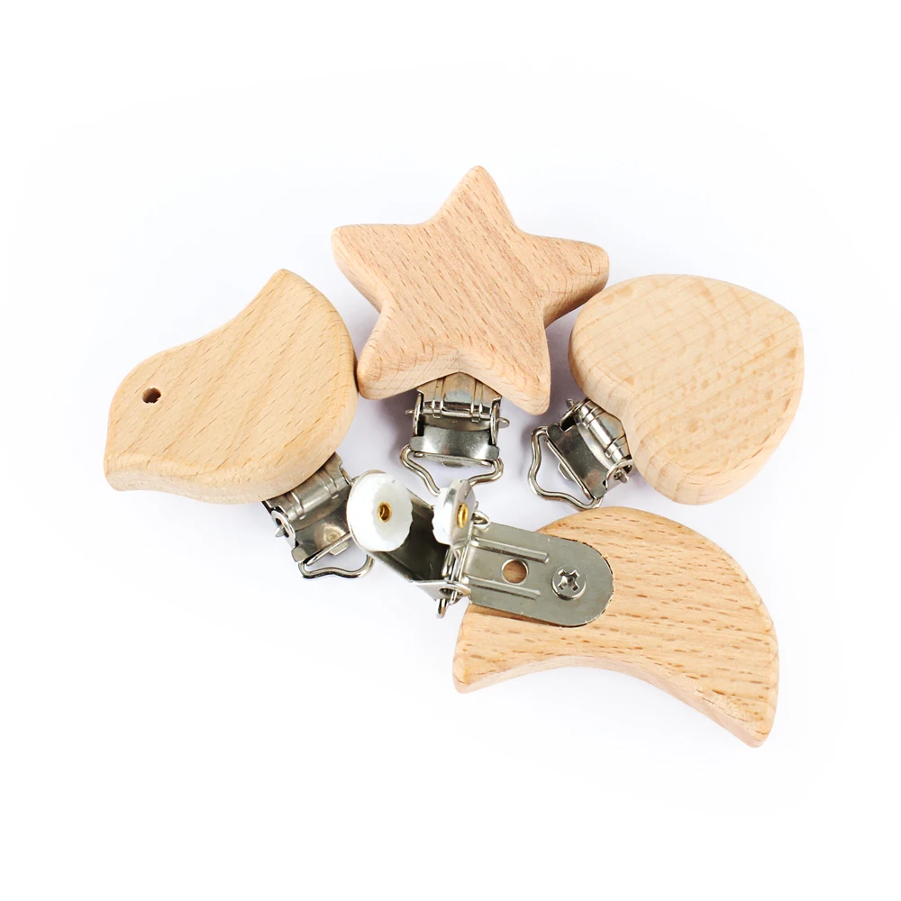 1pc Wooden Pacifier Clip Animal Heart Pattern DIY Baby Teether Chew Toys Natural Beech Wood Pacifier Chain Dummy Holder Clips