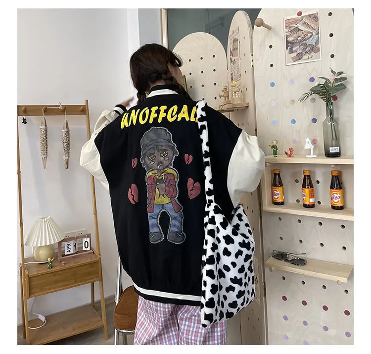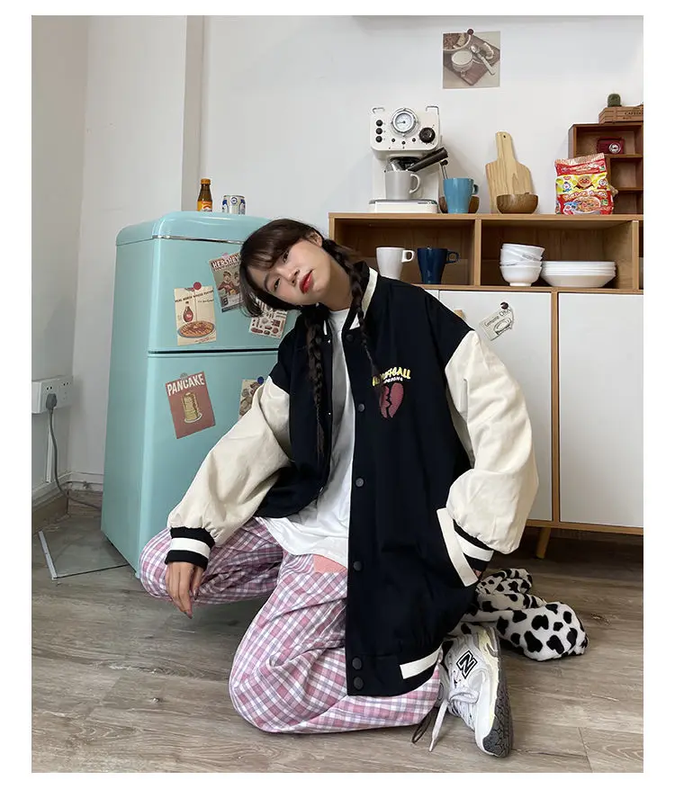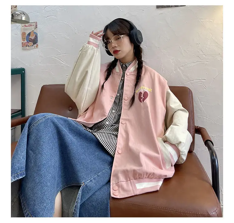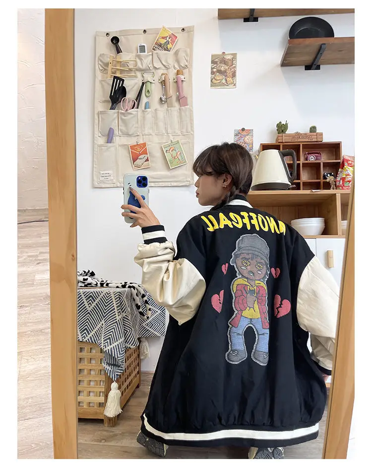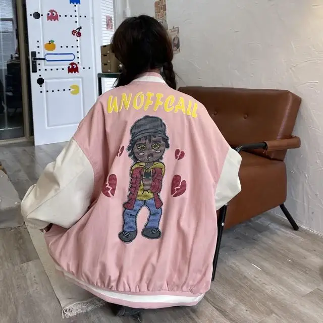 Женская бейсбольная куртка с мультяшным принтом букв Новинка осени 2022 Корейская