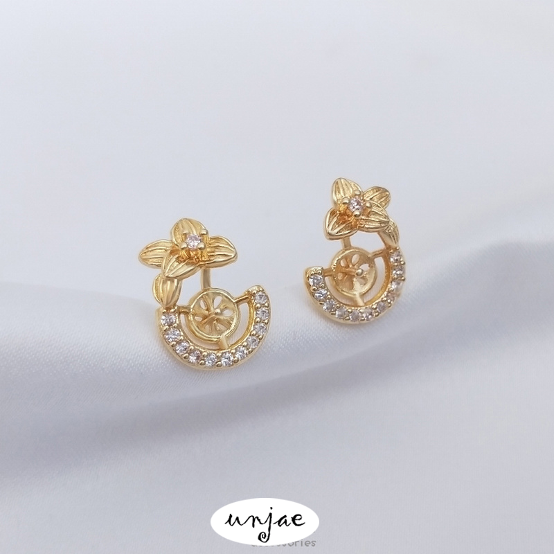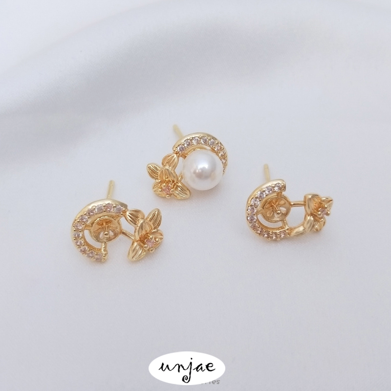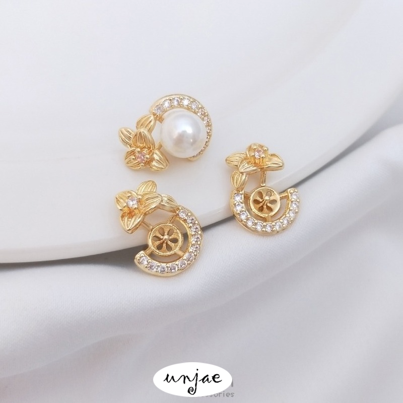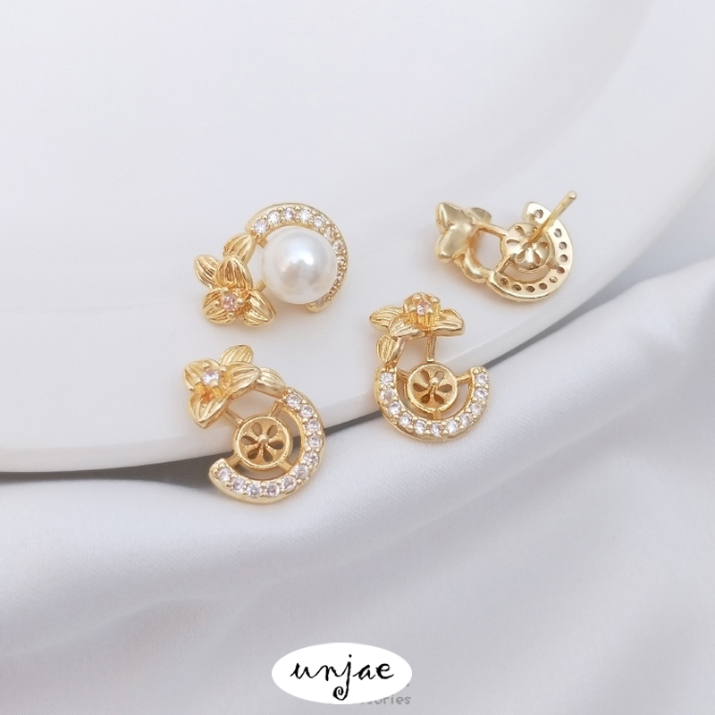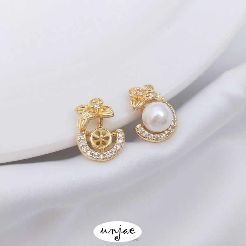 Zircon Clover Half Hole Bead Holder DIY Stud Earrings