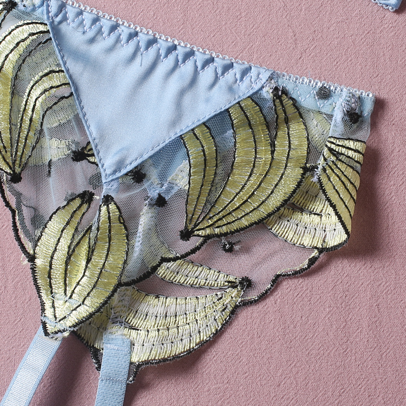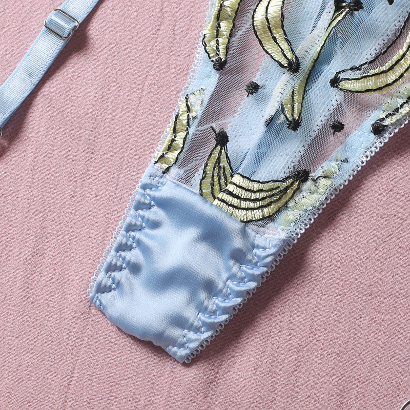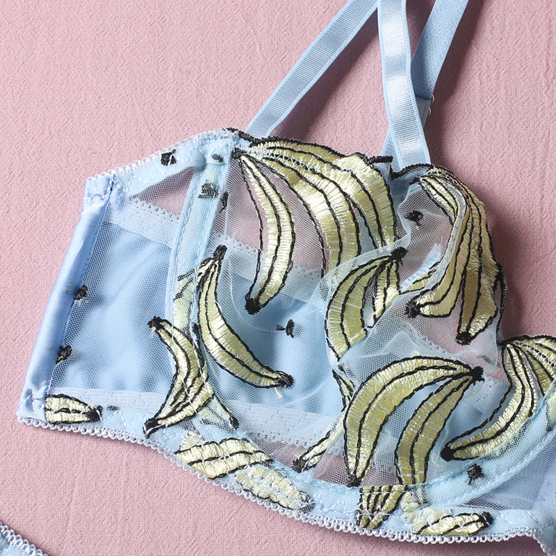 Сексуальное нижнее белье, новинка, бюстгальтер с бананами и трусики, костюм, вышивка, цвет, перспектива, сексуальный комплект из трех предметов, нижнее белье, бюстгальтер