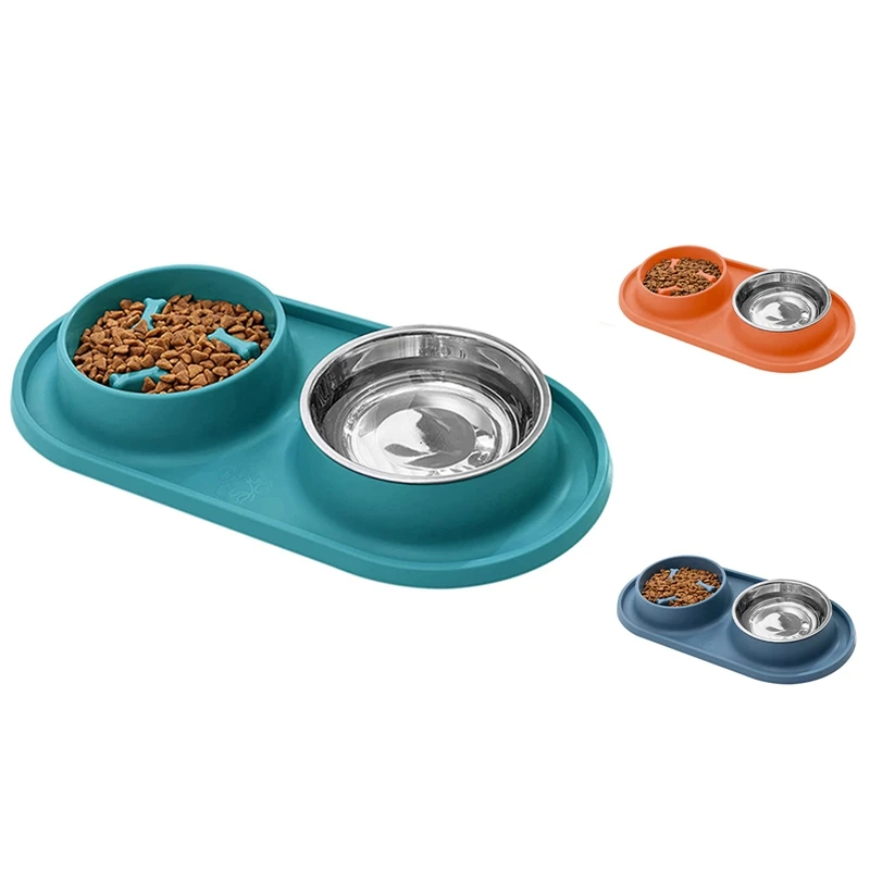 Миски для домашних животных с медленным питанием для собак, миски для домашних животных со стальными чашами для щенков, Нескользящие