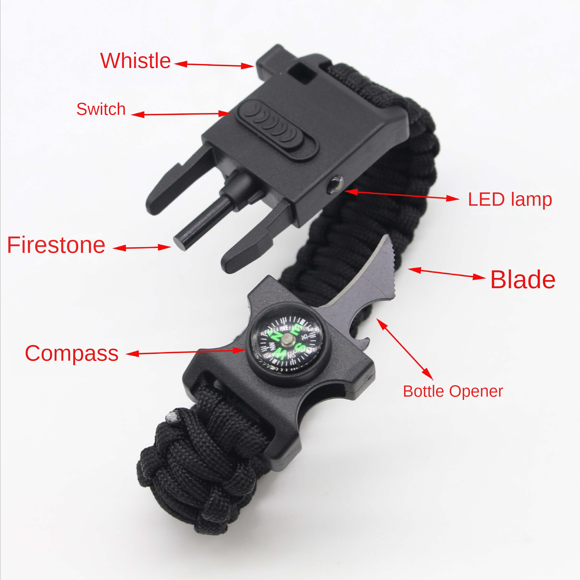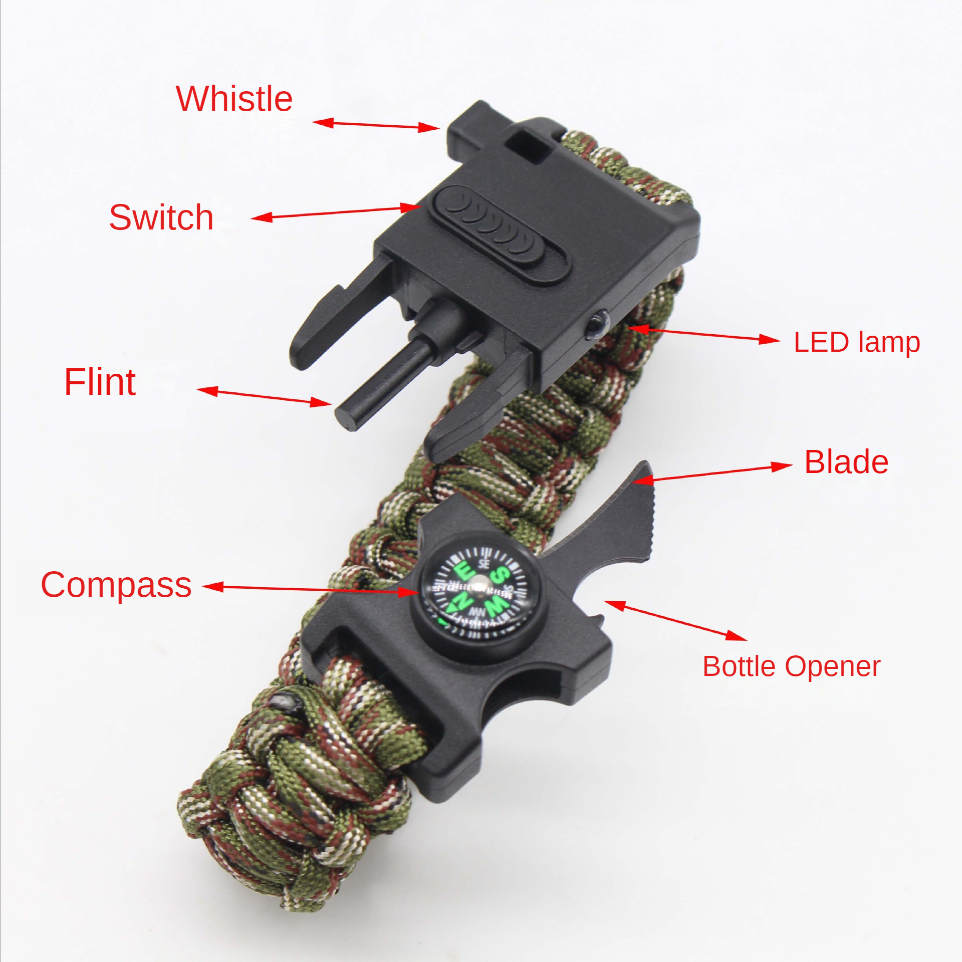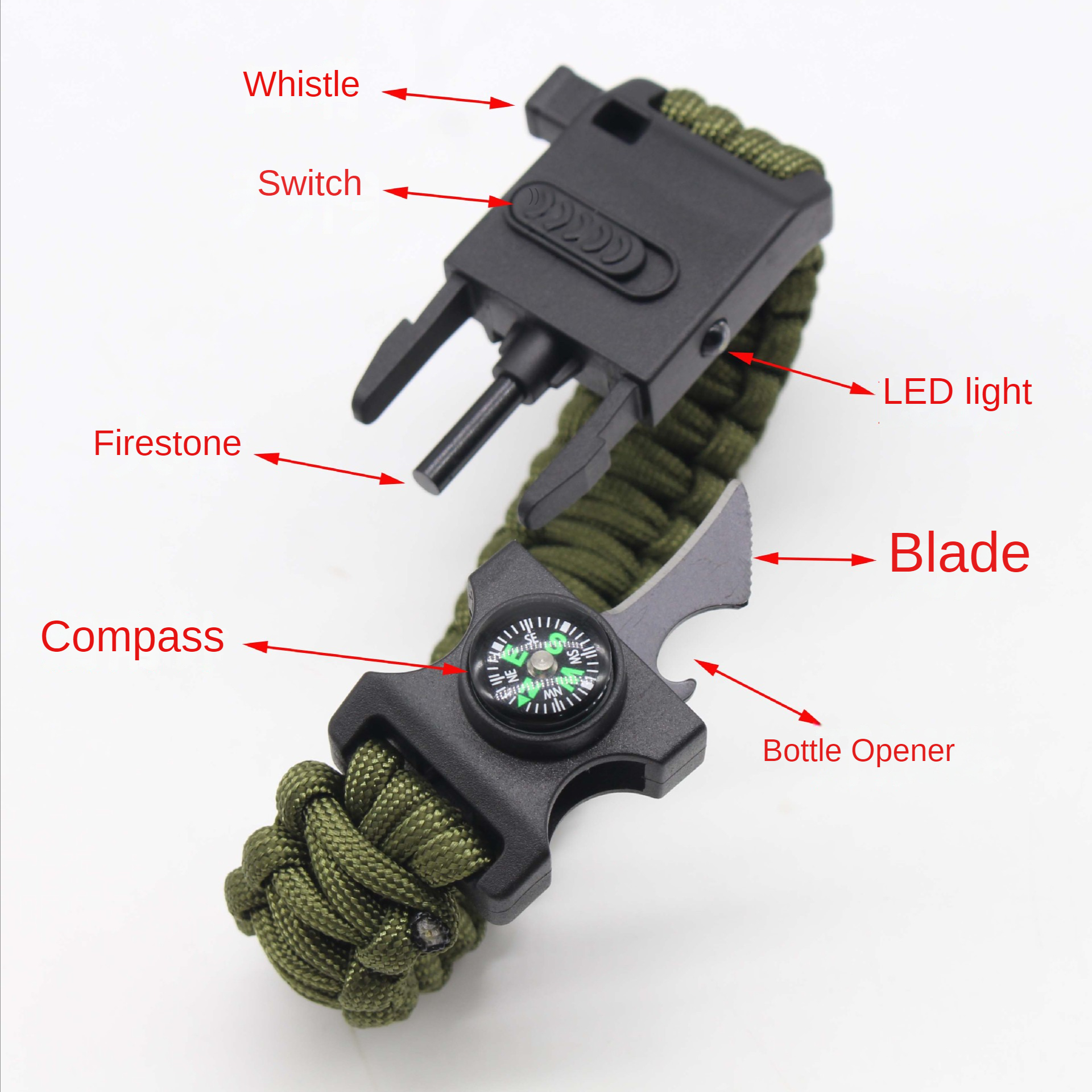 Парашютный шнур браслет осветительная лампа для езды на открытом воздухе пустыня выживания парашют веревка браслет спасательный нож