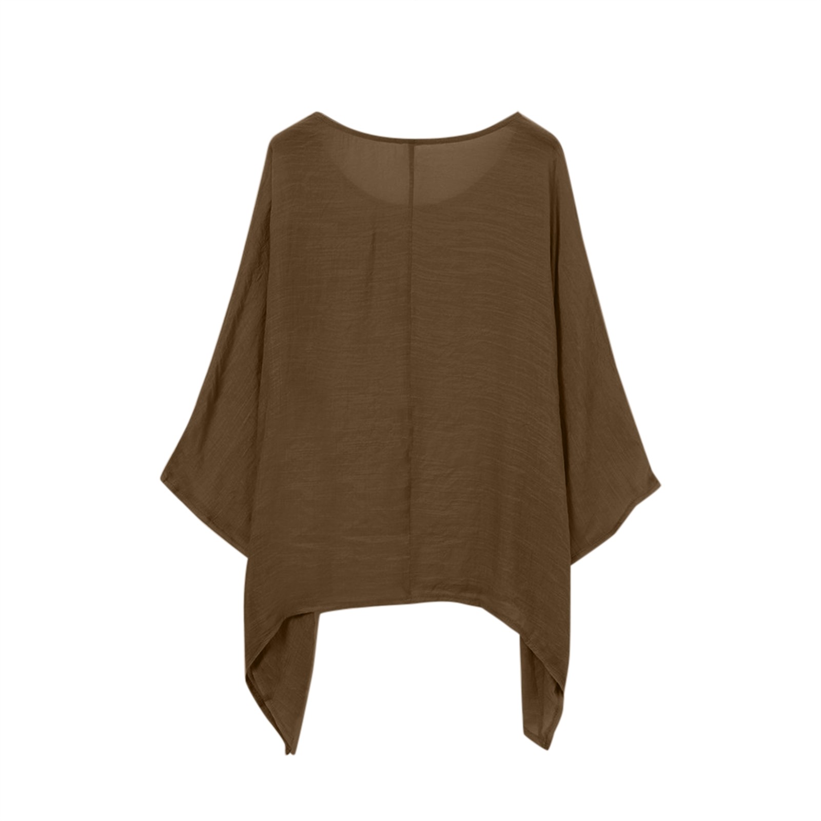 Повседневные топы с однотонным дизайном, круглым вырезом и рукавами-бабочкамиДляРегулируемый.Легкая и неэластичная ткань. Свободный силуэт.