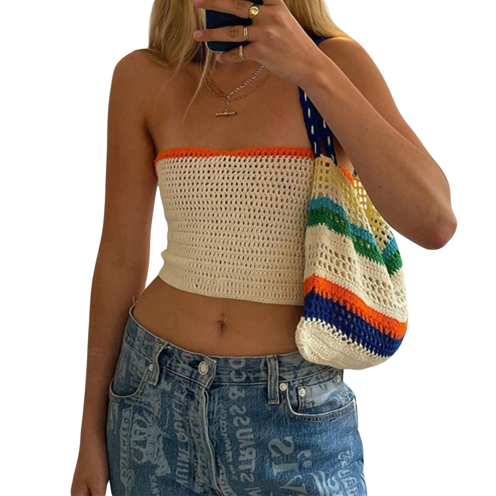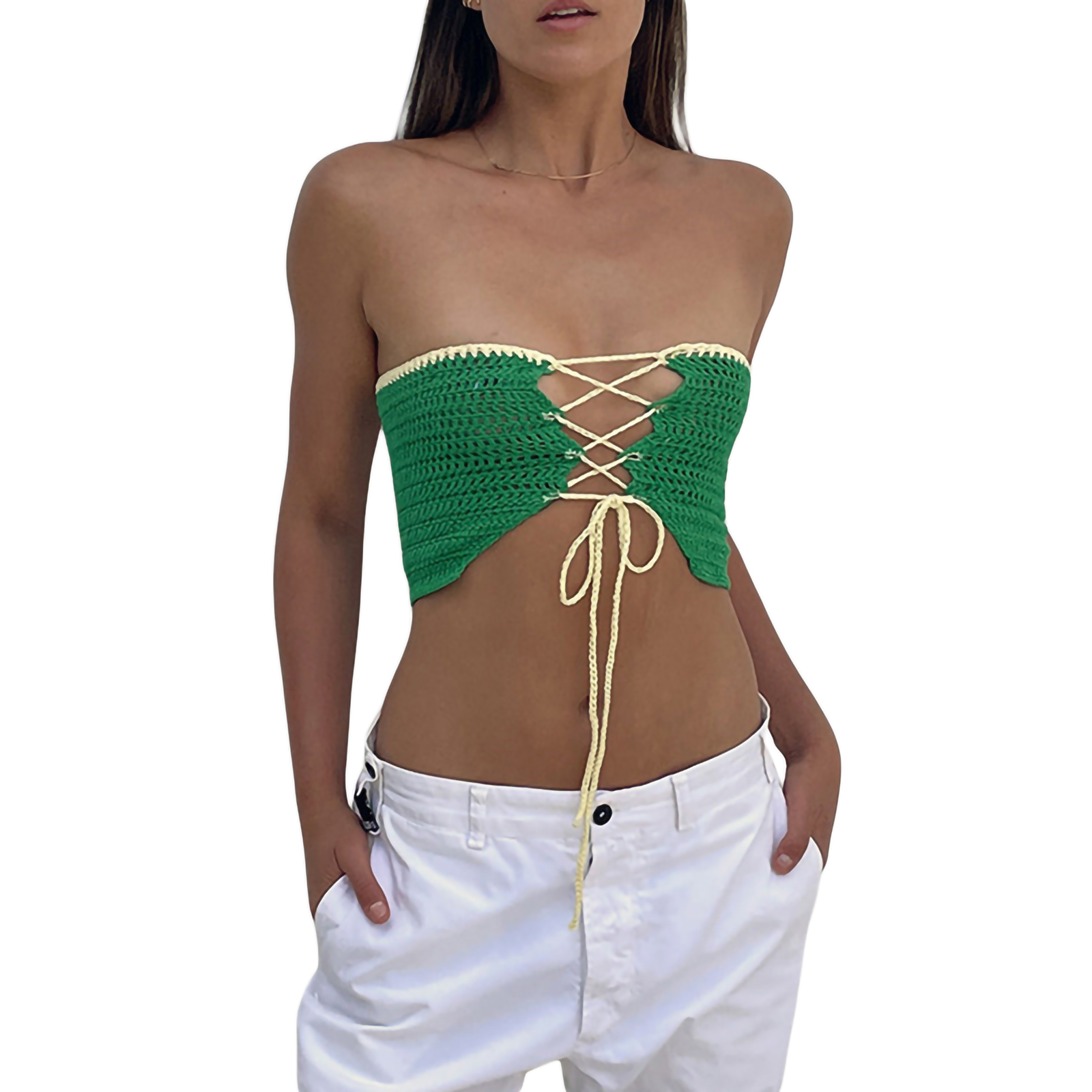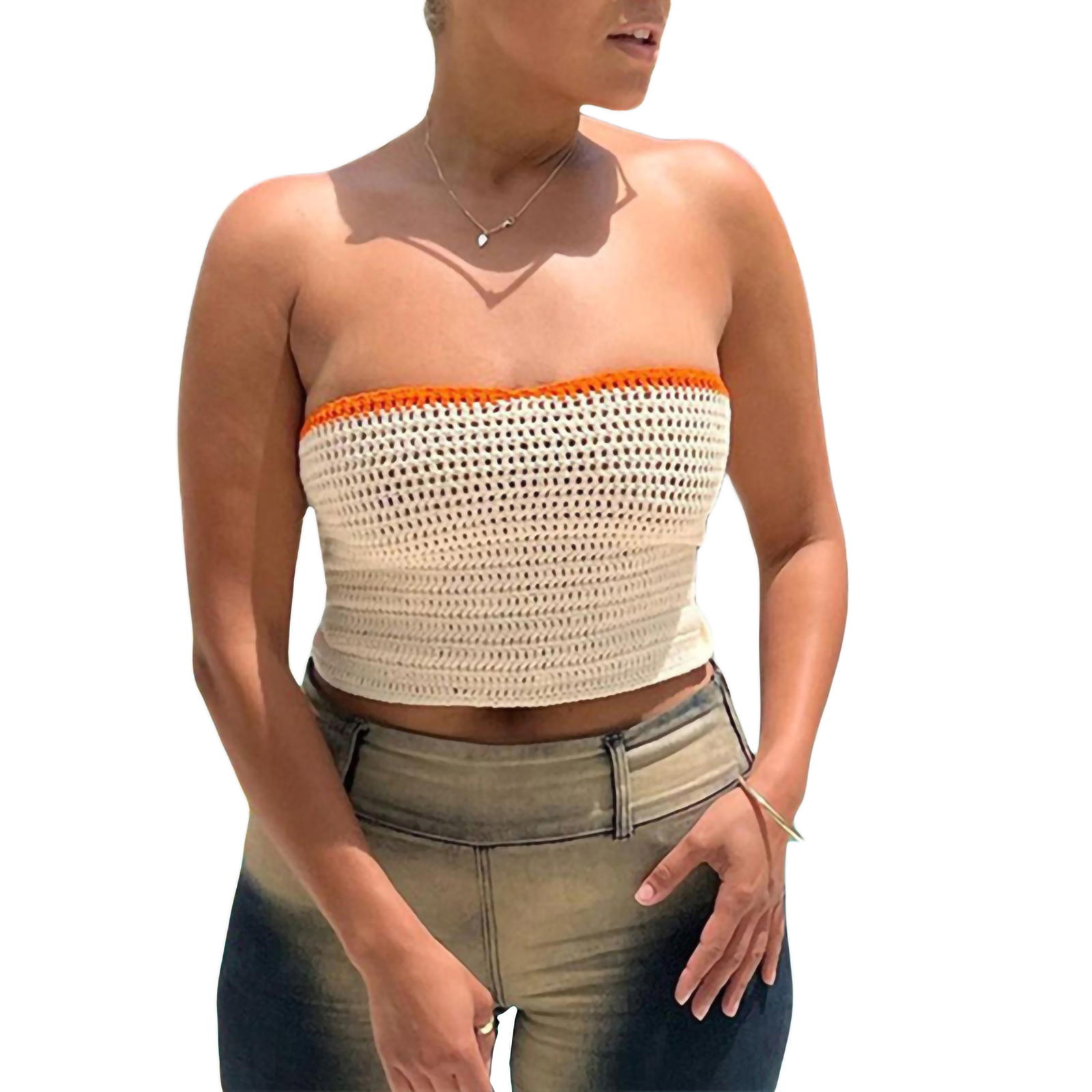 Женский трикотажный укороченный Топ без бретелек ажурный винтажный рукавов с