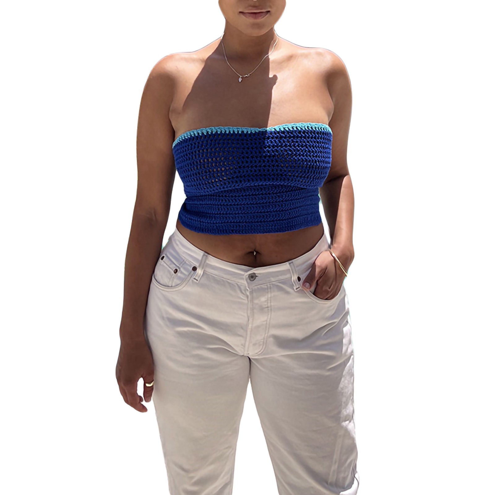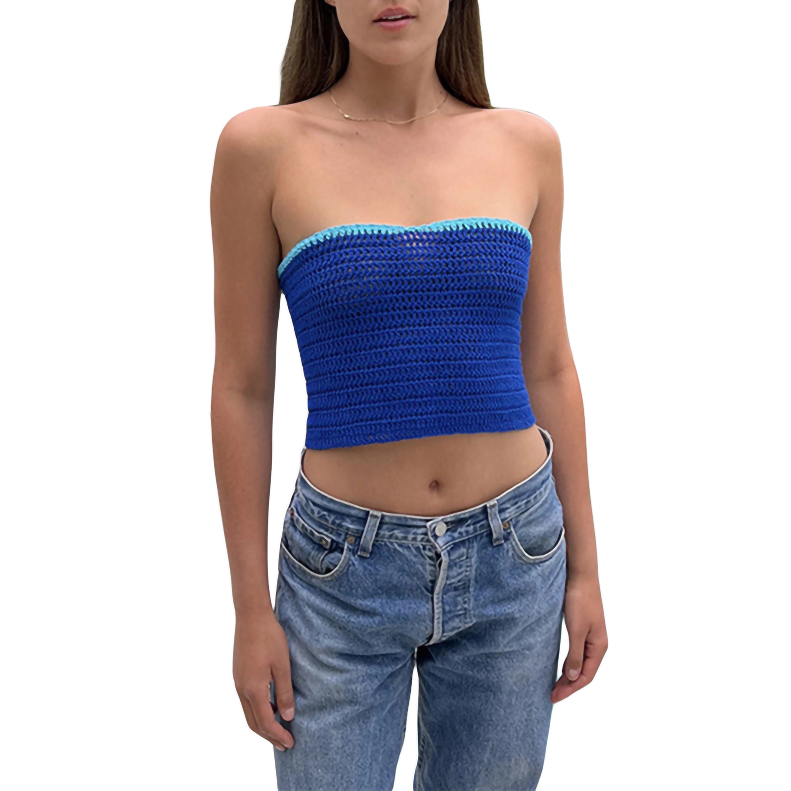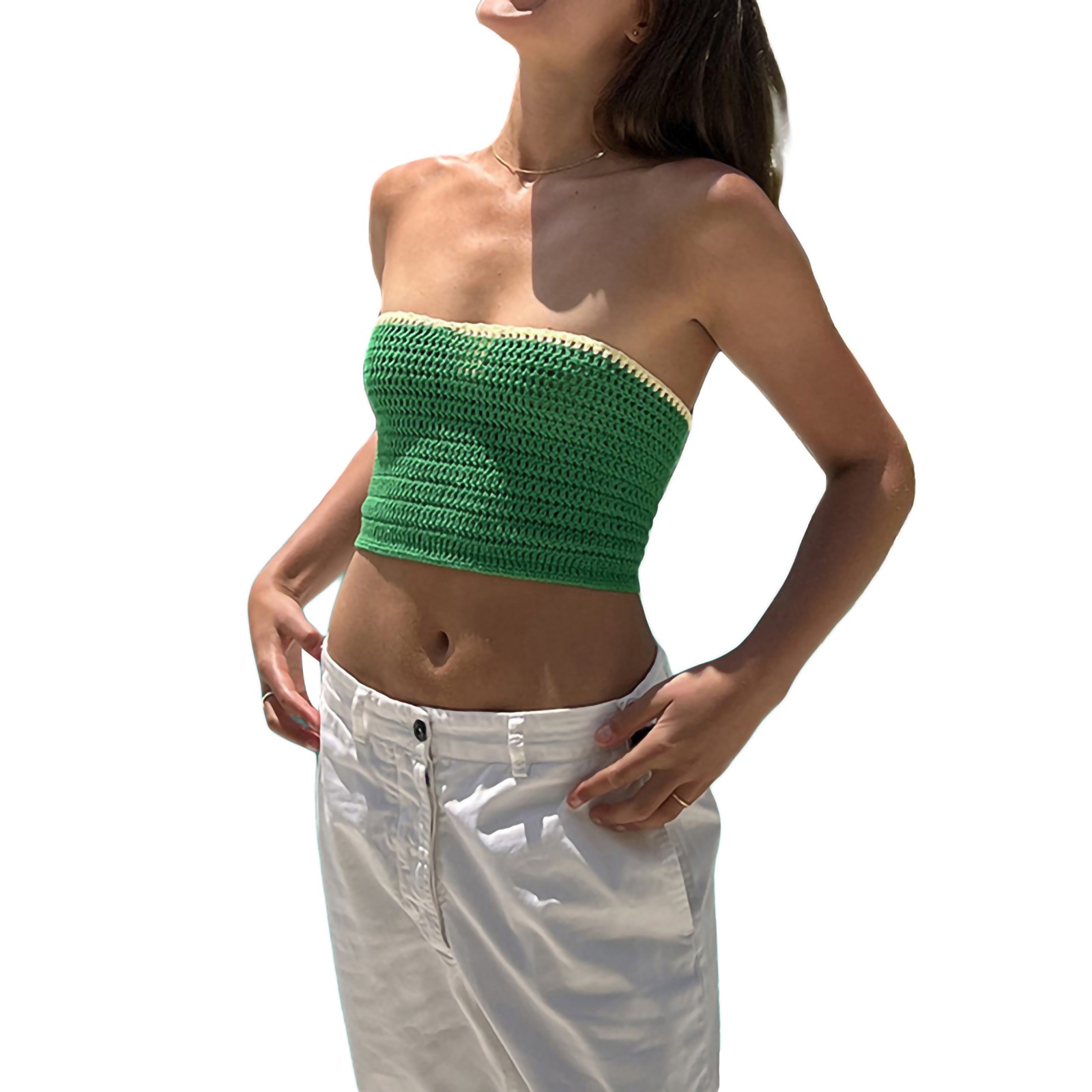 Женский трикотажный укороченный Топ без бретелек ажурный винтажный рукавов с