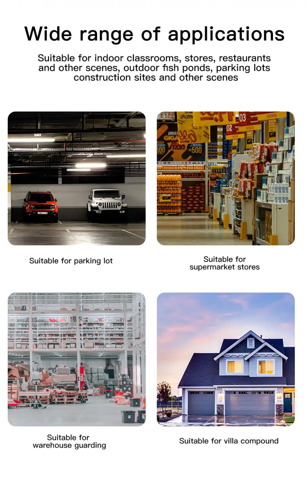 【Широкий диапазон применения 】:Подходит для комнатных классных комнат, магазинов, ресторанов и других сцен, открытых рыбных прудов, парковочных площадок и других сцен