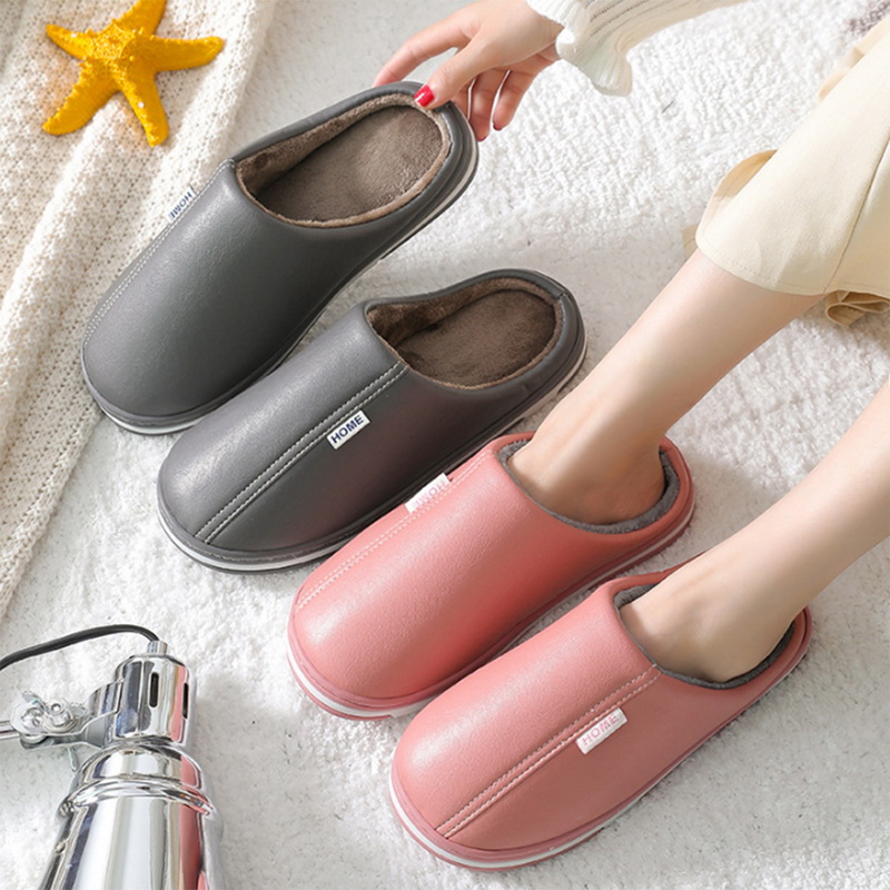 Мужские кожаные домашние тапочки унисекс модельные Слиперы на плоской подошве с