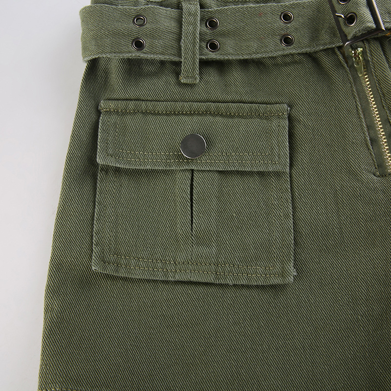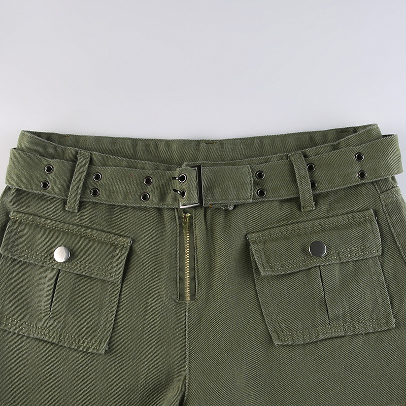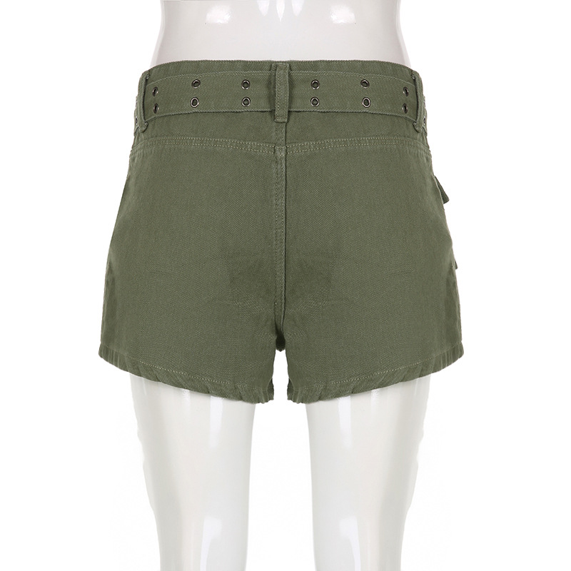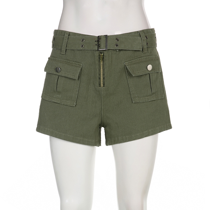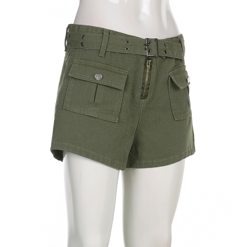 Женские летние карго шорты, сплошной цвет средняя талия поясом повседневные короткие брюки с карманами для женщин