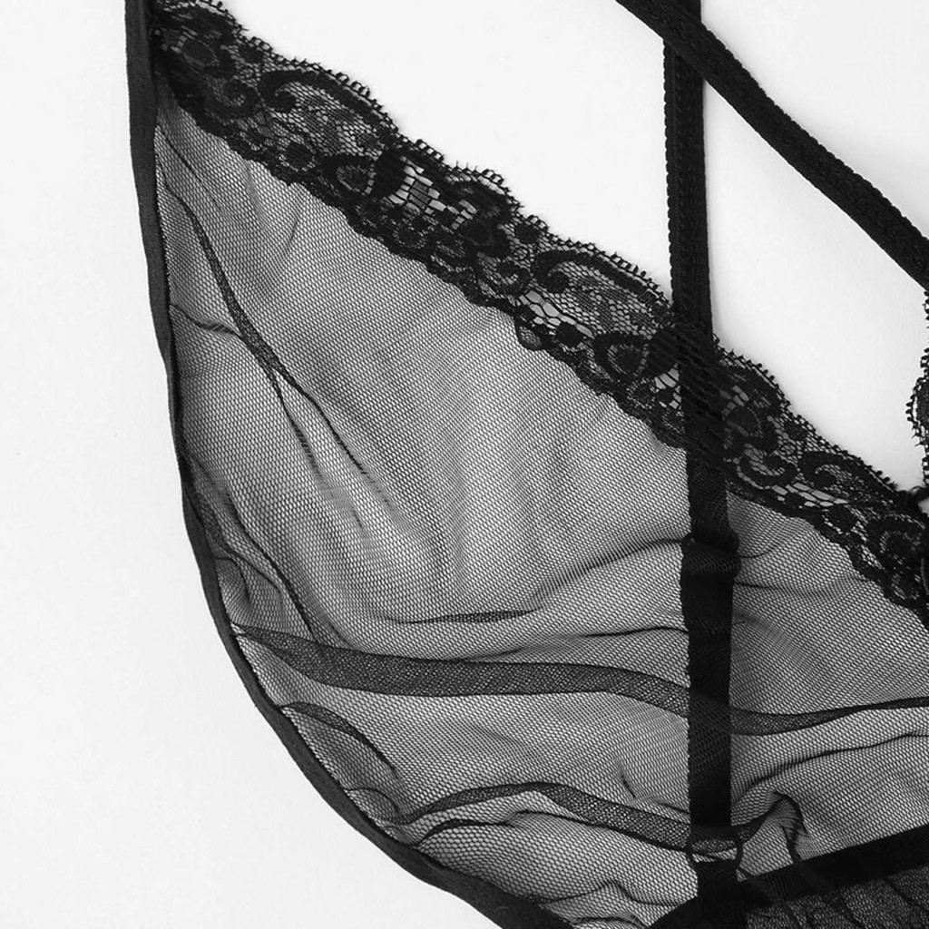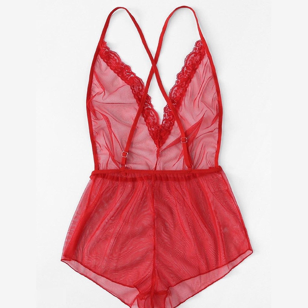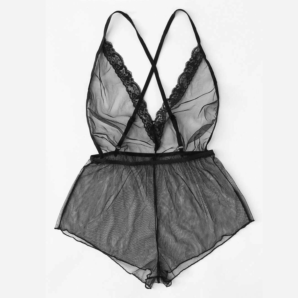 Женский с кружевной отделкой v-образным вырезом с открытой спиной крест ремень Боди Нижнее белье-комбинезон пижамы