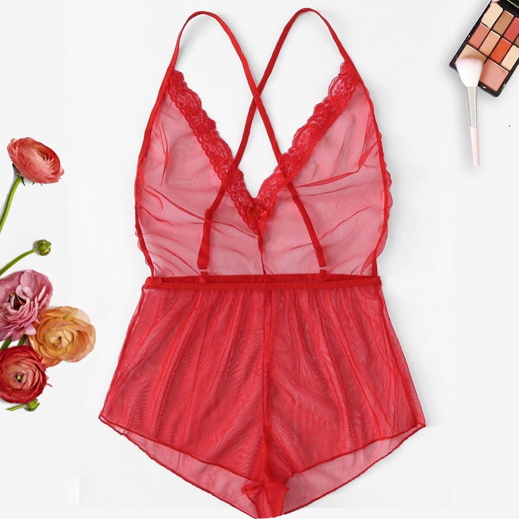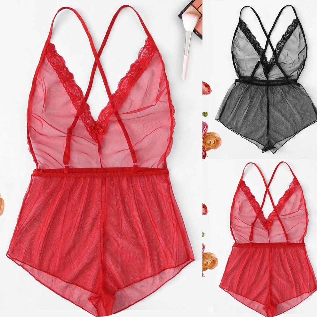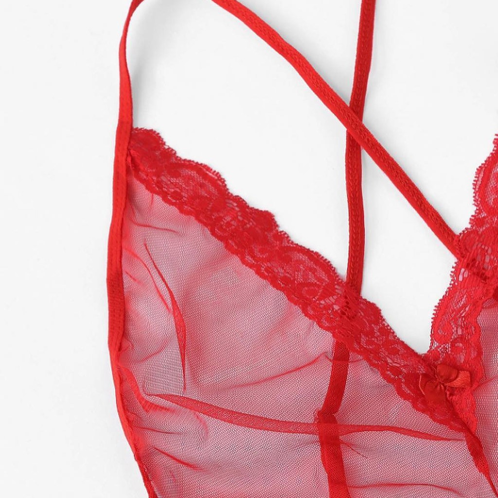 Женский с кружевной отделкой v-образным вырезом с открытой спиной крест ремень Боди Нижнее белье-комбинезон пижамы