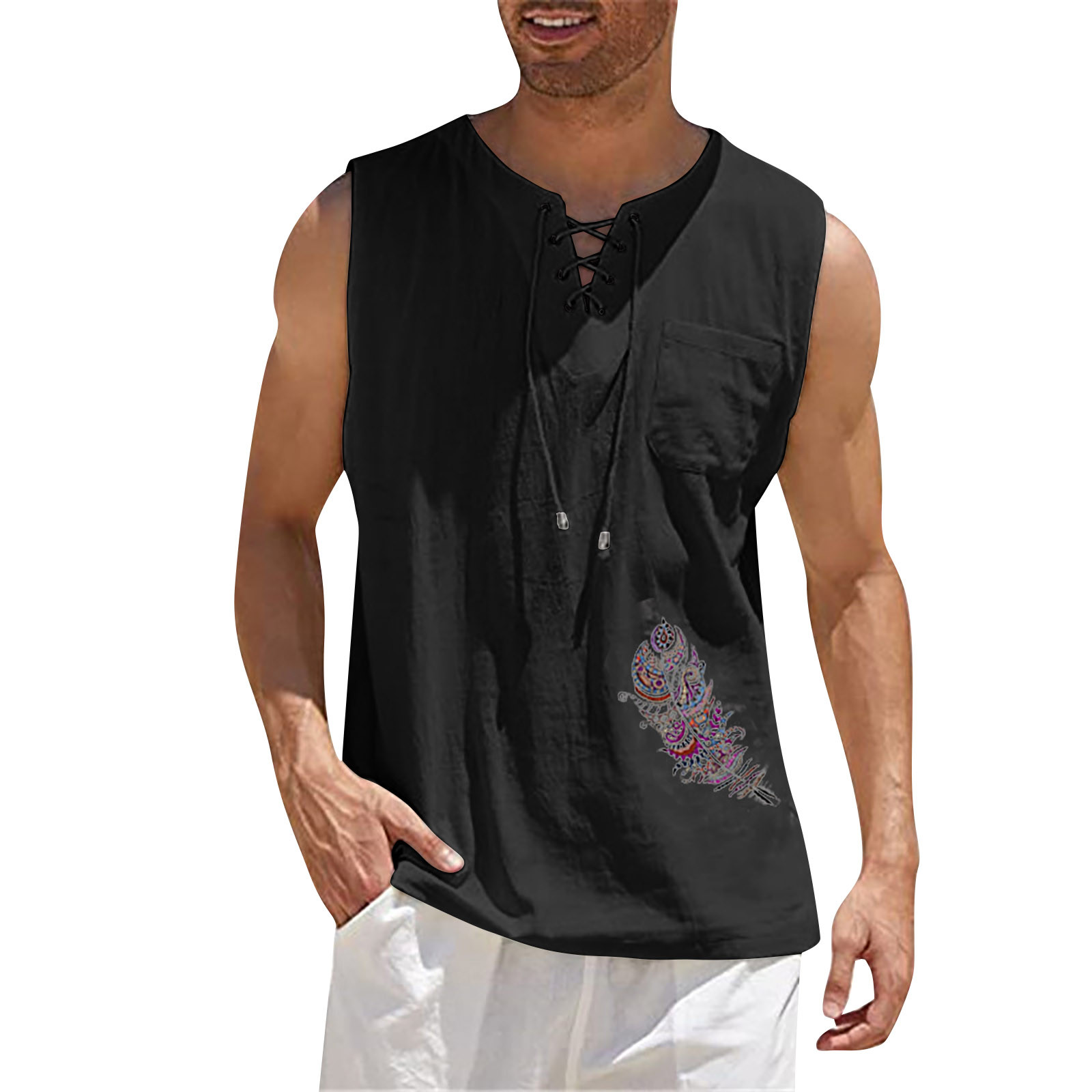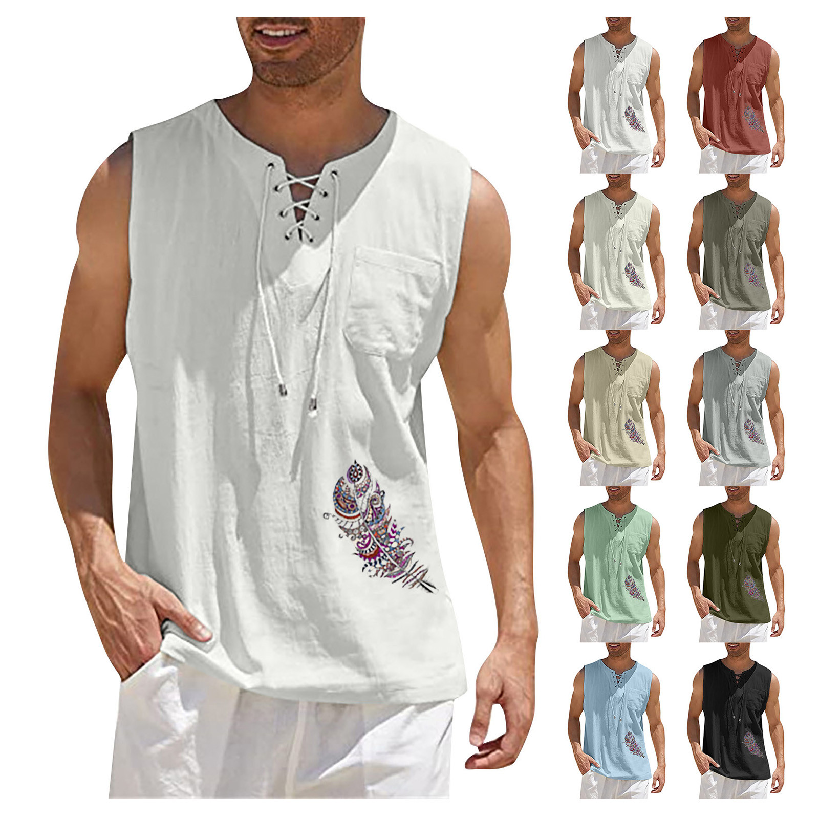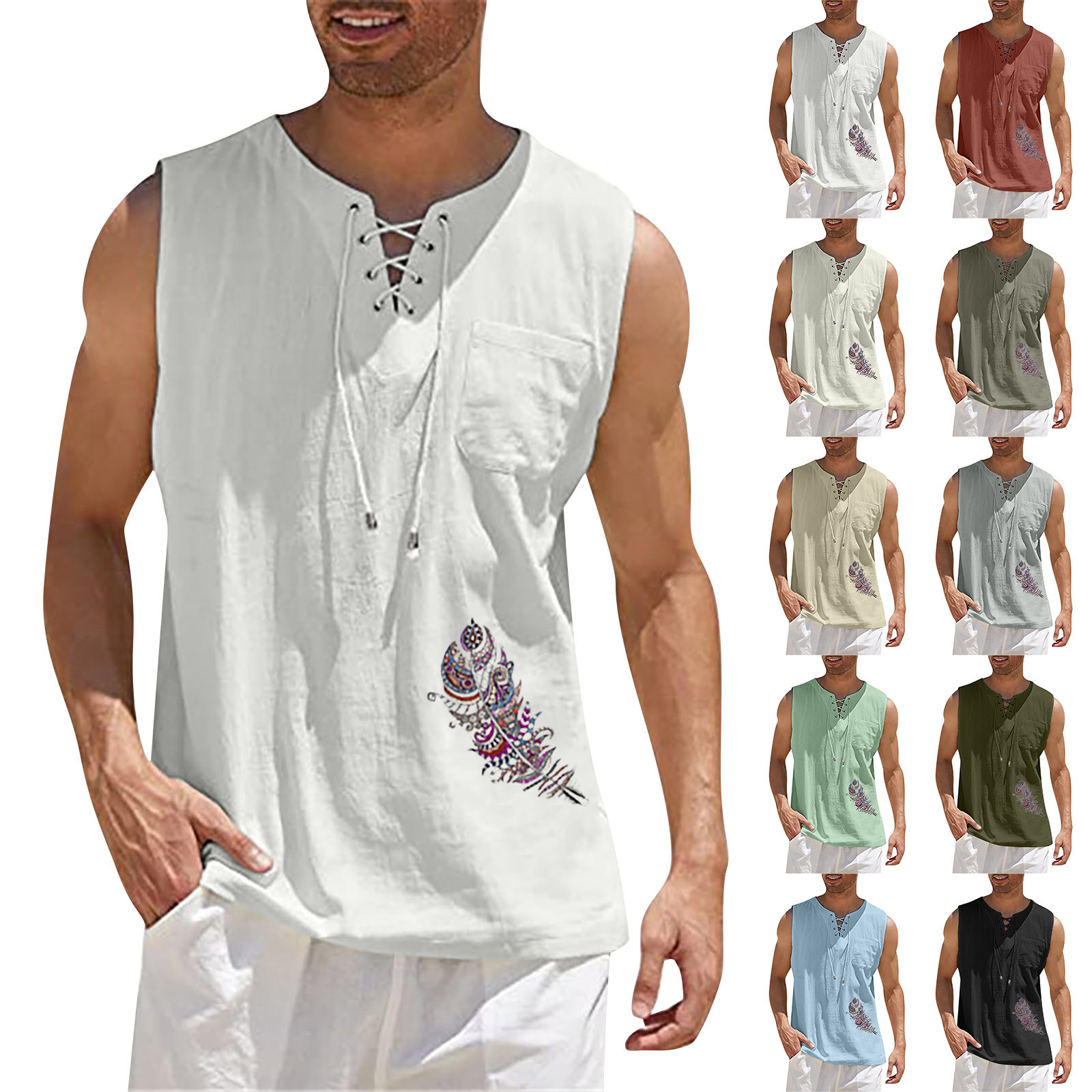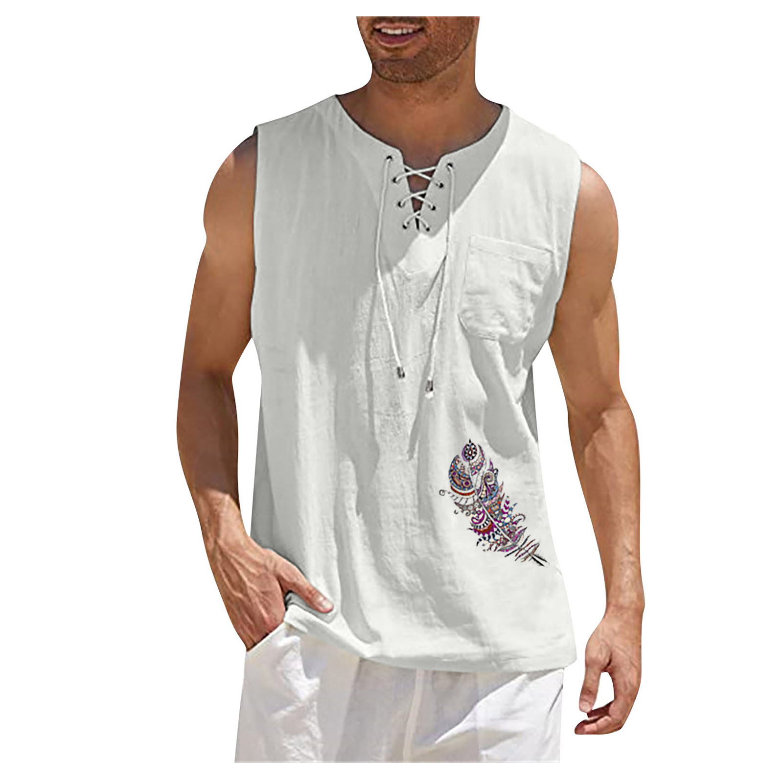 Мужская Повседневная Свободная хлопковая льняная рубашка с принтом, блузка без рукавов, Пляжная рубашка, топы Пожалуйста, проверьтеТаблица размеровПеред заказом. Если вы не уверены в размере, пожалуйста, отправьте нам сообщение. Особенности: 1. Он изготовлен из высококачественных материалов, долговечен для ежедневного ношения. 2. Стильный и модный дизайн сделает вас более привлекательной. 3. Идеально сочетается с вашими любимыми черными джинсами и т. д. 4. Отлично подходит для повседневной носки, я уверен, вам понравится! 5. В нем вы будете выглядеть красивее. Информация о продукте: Сезон: лето Пол: мужчин Повод: повседневные, вечерние Материал:Полиэстер Тип узора: однотонный Длина рукава: без рукавов Стиль: Повседневный, модный Размер: Соответствует размеру Толщина: Стандартная Как стирать: Ручная стирка в холодной воде, подвешивание или сушка Что вы получаете: 1 шт. Мужская блузка