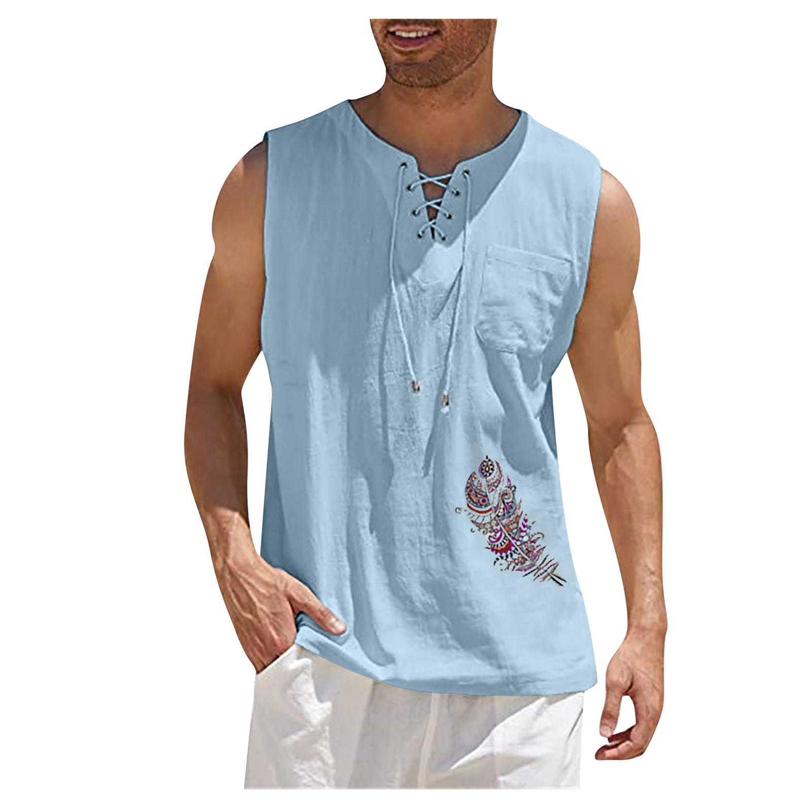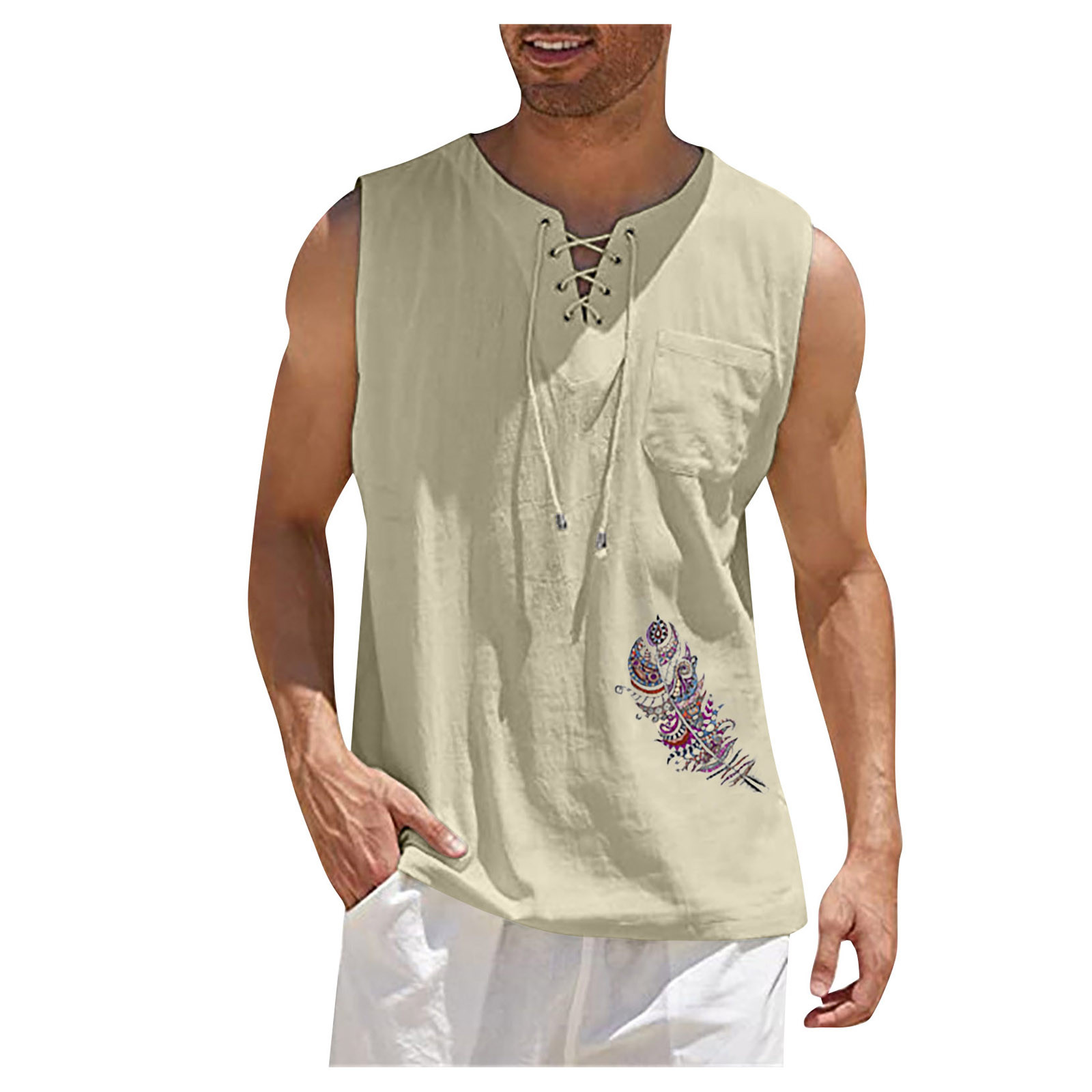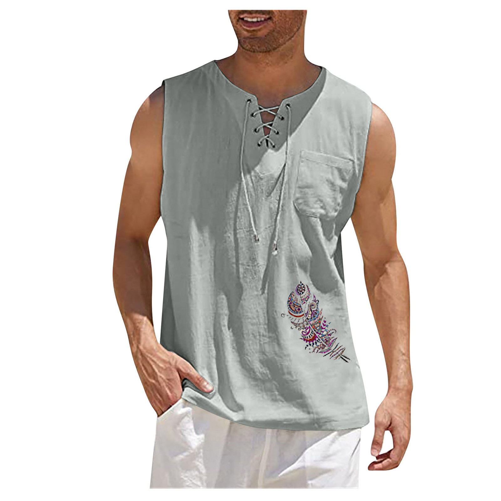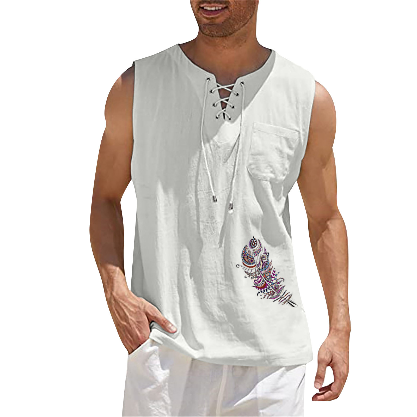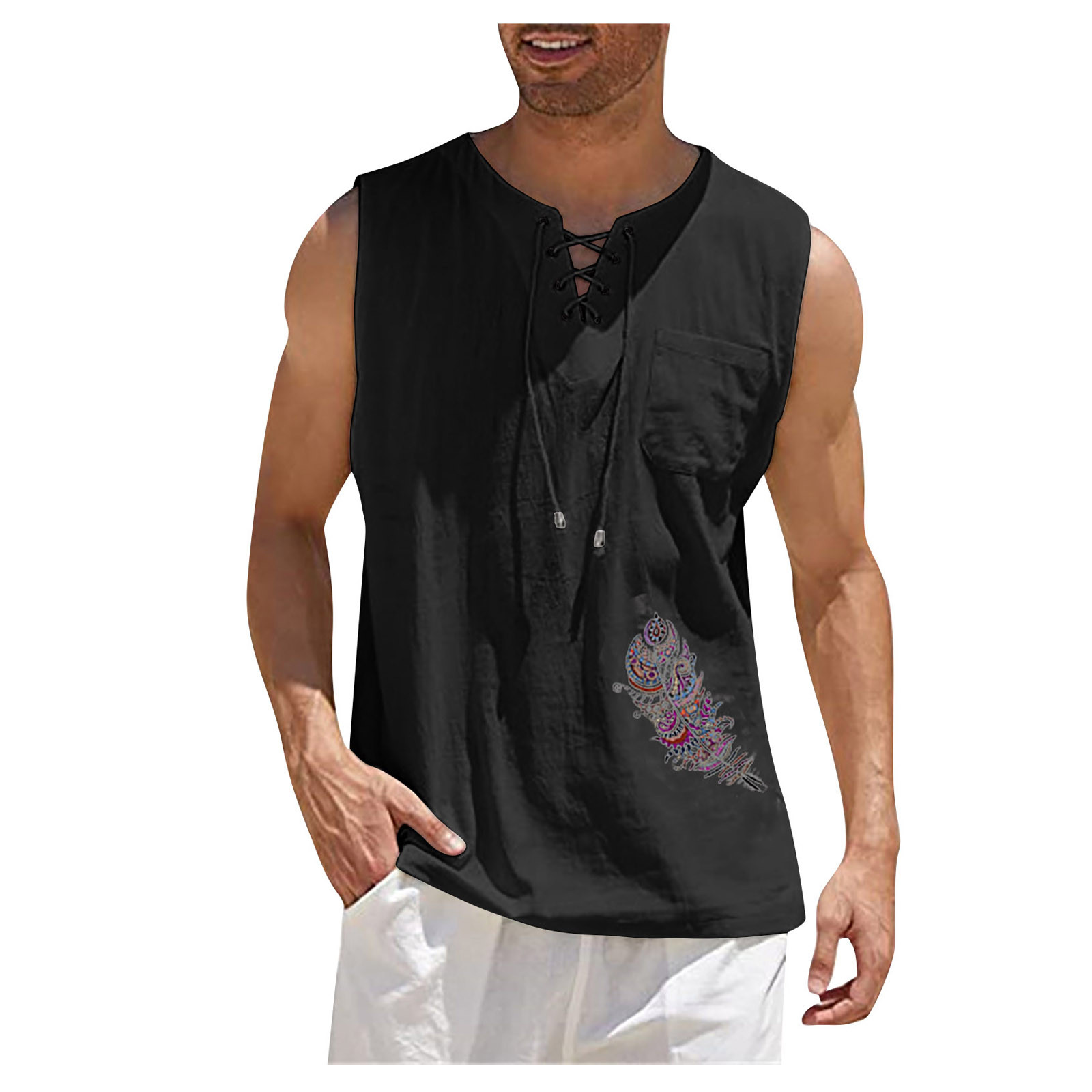 Мужская Повседневная Свободная хлопковая льняная рубашка с принтом, блузка без рукавов, Пляжная рубашка, топы Пожалуйста, проверьтеТаблица размеровПеред заказом. Если вы не уверены в размере, пожалуйста, отправьте нам сообщение. Особенности: 1. Он изготовлен из высококачественных материалов, долговечен для ежедневного ношения. 2. Стильный и модный дизайн сделает вас более привлекательной. 3. Идеально сочетается с вашими любимыми черными джинсами и т. д. 4. Отлично подходит для повседневной носки, я уверен, вам понравится! 5. В нем вы будете выглядеть красивее. Информация о продукте: Сезон: лето Пол: мужчин Повод: повседневные, вечерние Материал:Полиэстер Тип узора: однотонный Длина рукава: без рукавов Стиль: Повседневный, модный Размер: Соответствует размеру Толщина: Стандартная Как стирать: Ручная стирка в холодной воде, подвешивание или сушка Что вы получаете: 1 шт. Мужская блузка