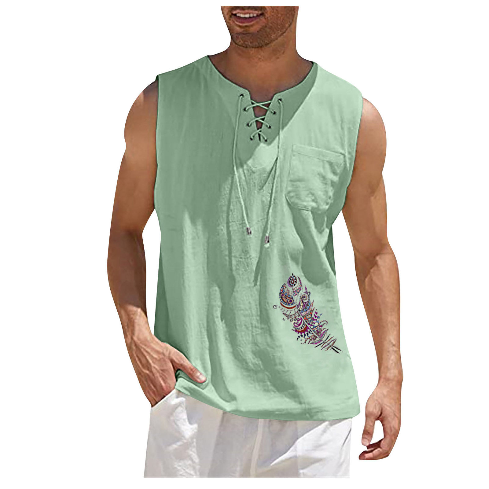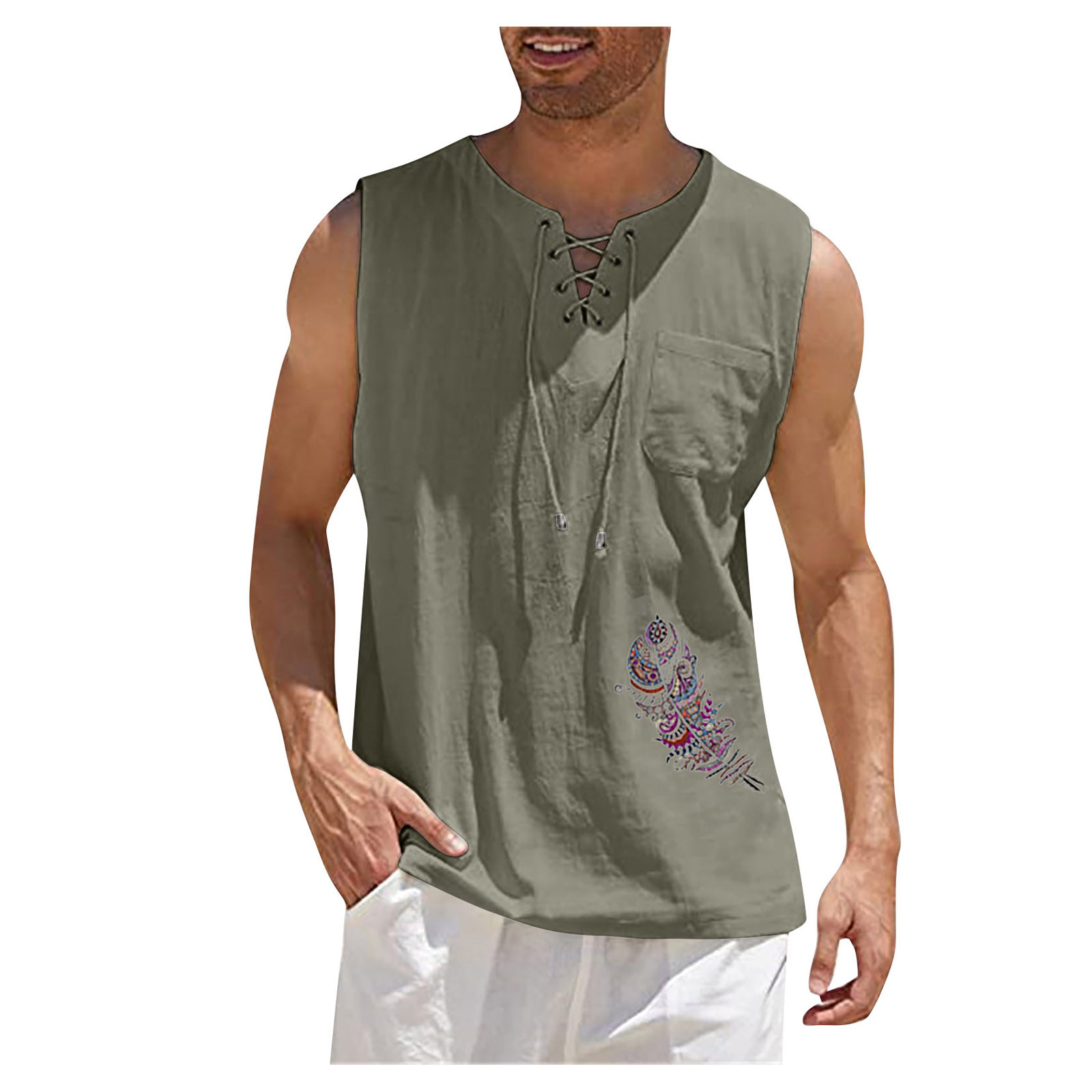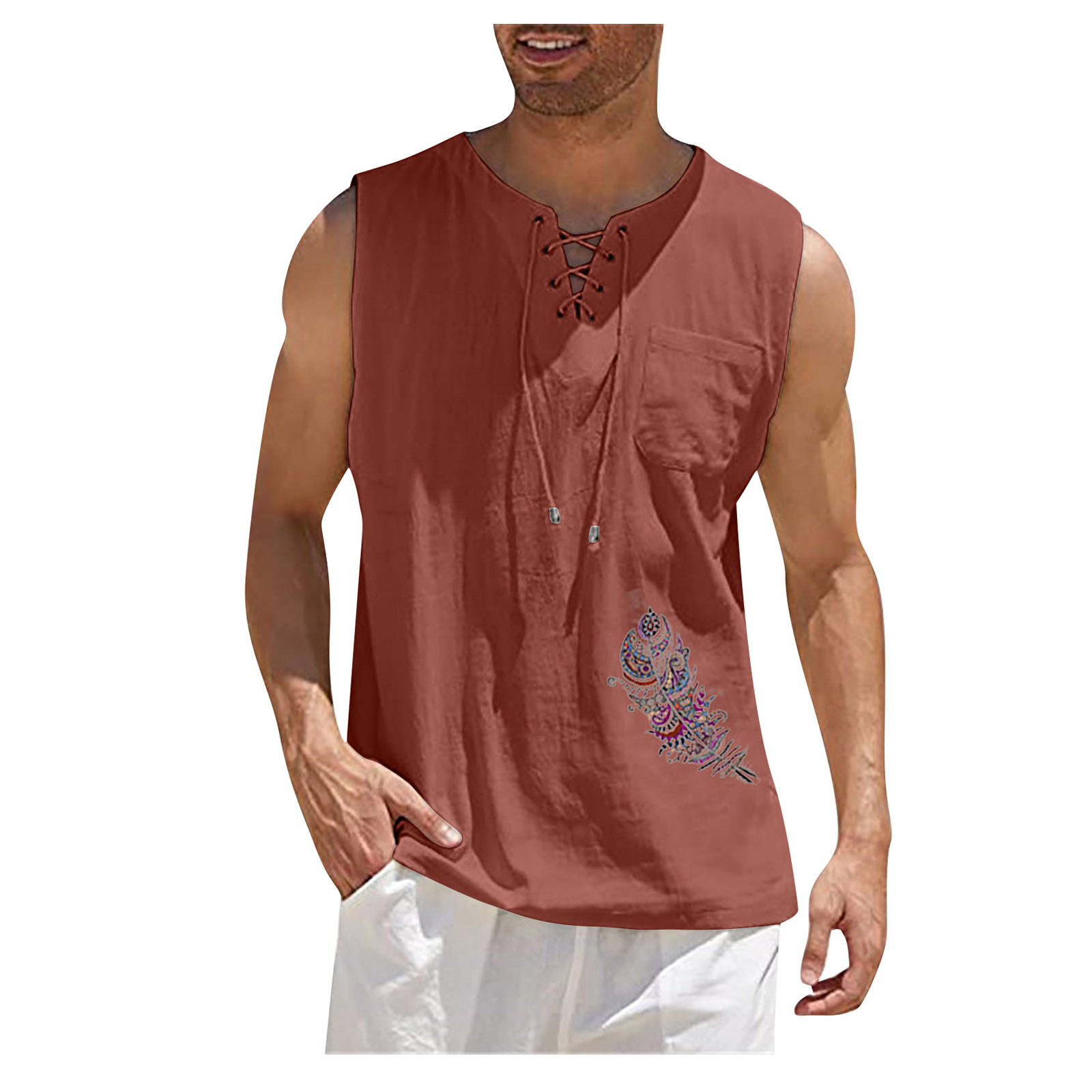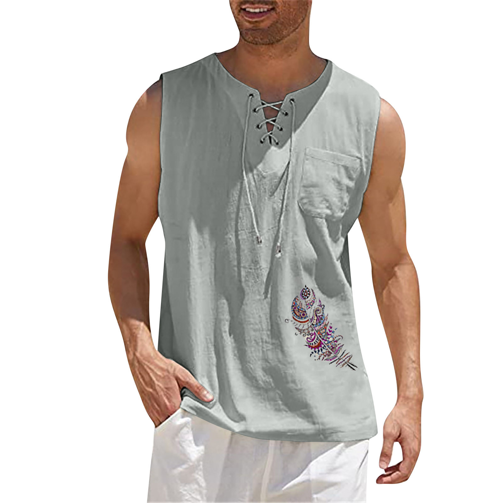 Мужская Повседневная Свободная хлопковая льняная рубашка с принтом, блузка без рукавов, Пляжная рубашка, топы Пожалуйста, проверьтеТаблица размеровПеред заказом. Если вы не уверены в размере, пожалуйста, отправьте нам сообщение. Особенности: 1. Он изготовлен из высококачественных материалов, долговечен для ежедневного ношения. 2. Стильный и модный дизайн сделает вас более привлекательной. 3. Идеально сочетается с вашими любимыми черными джинсами и т. д. 4. Отлично подходит для повседневной носки, я уверен, вам понравится! 5. В нем вы будете выглядеть красивее. Информация о продукте: Сезон: лето Пол: мужчин Повод: повседневные, вечерние Материал:Полиэстер Тип узора: однотонный Длина рукава: без рукавов Стиль: Повседневный, модный Размер: Соответствует размеру Толщина: Стандартная Как стирать: Ручная стирка в холодной воде, подвешивание или сушка Что вы получаете: 1 шт. Мужская блузка