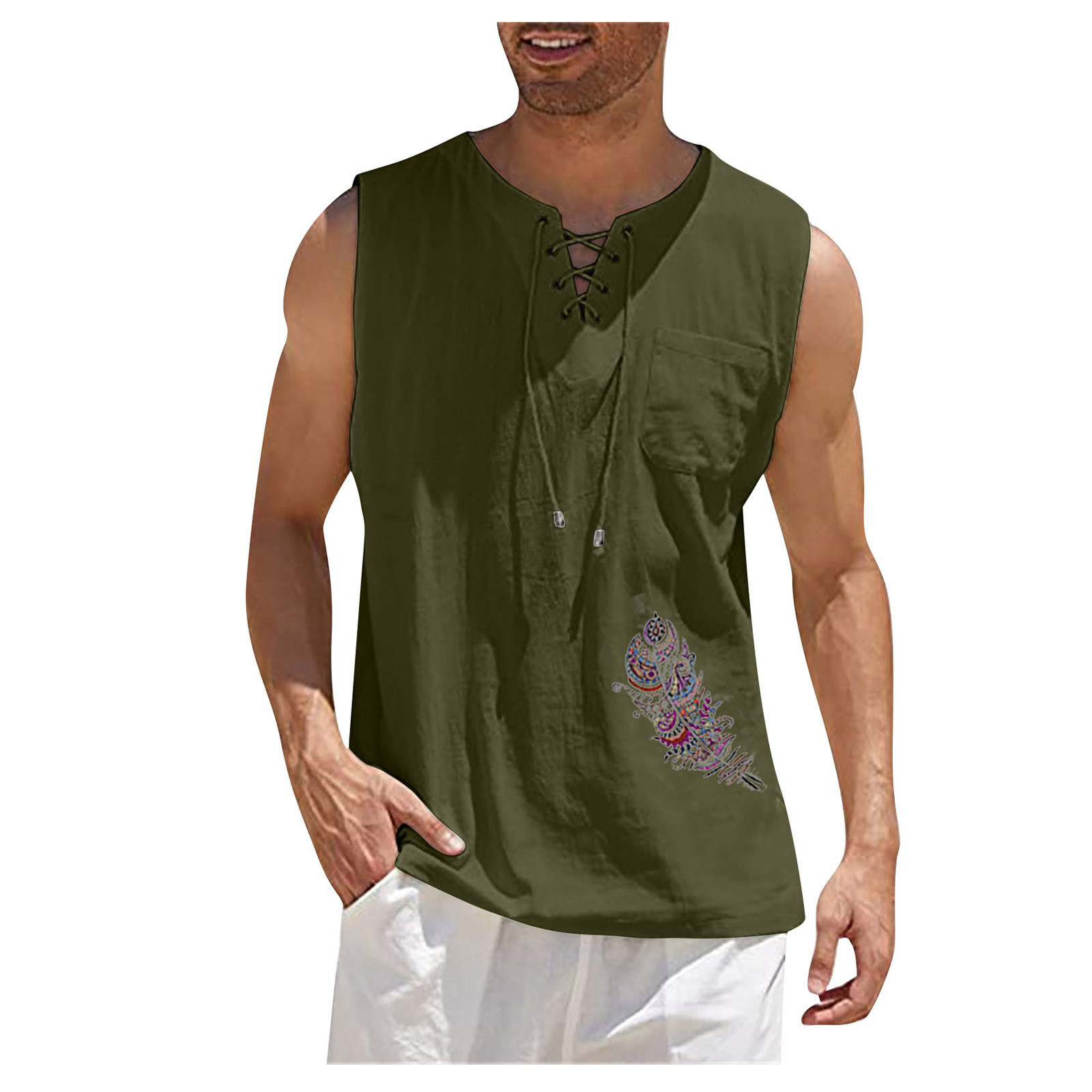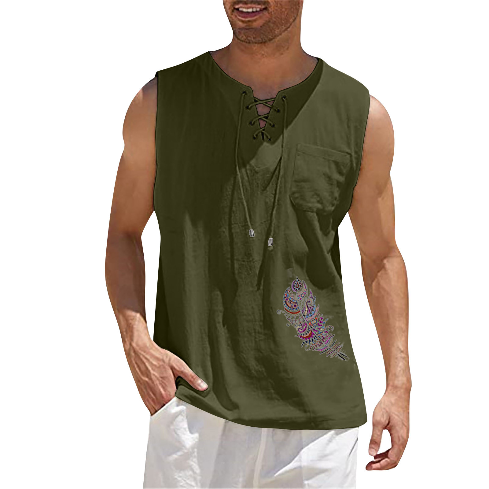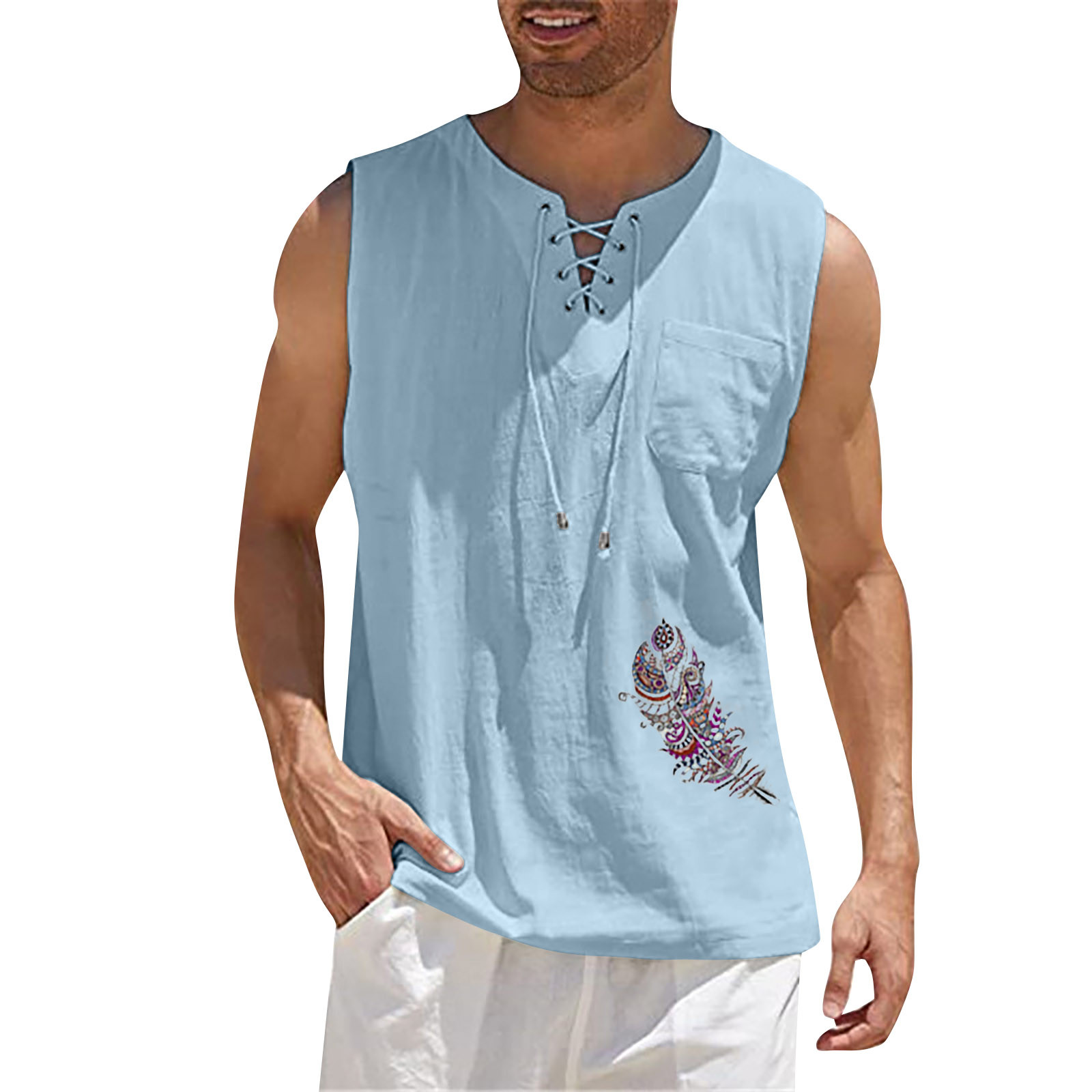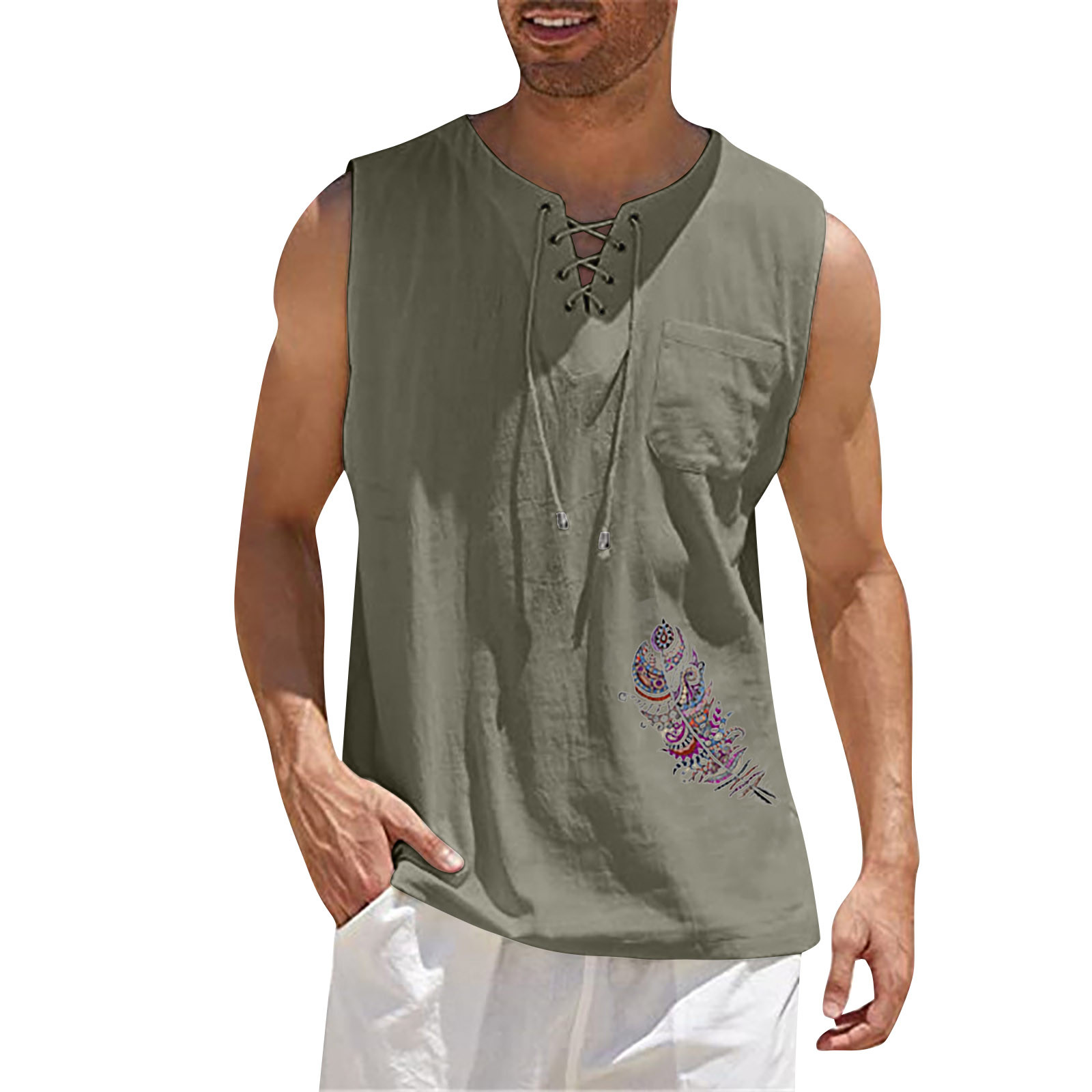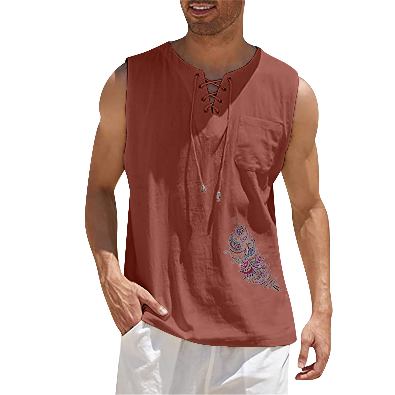 Мужская Повседневная Свободная хлопковая льняная рубашка с принтом, блузка без рукавов, Пляжная рубашка, топы Пожалуйста, проверьтеТаблица размеровПеред заказом. Если вы не уверены в размере, пожалуйста, отправьте нам сообщение. Особенности: 1. Он изготовлен из высококачественных материалов, долговечен для ежедневного ношения. 2. Стильный и модный дизайн сделает вас более привлекательной. 3. Идеально сочетается с вашими любимыми черными джинсами и т. д. 4. Отлично подходит для повседневной носки, я уверен, вам понравится! 5. В нем вы будете выглядеть красивее. Информация о продукте: Сезон: лето Пол: мужчин Повод: повседневные, вечерние Материал:Полиэстер Тип узора: однотонный Длина рукава: без рукавов Стиль: Повседневный, модный Размер: Соответствует размеру Толщина: Стандартная Как стирать: Ручная стирка в холодной воде, подвешивание или сушка Что вы получаете: 1 шт. Мужская блузка