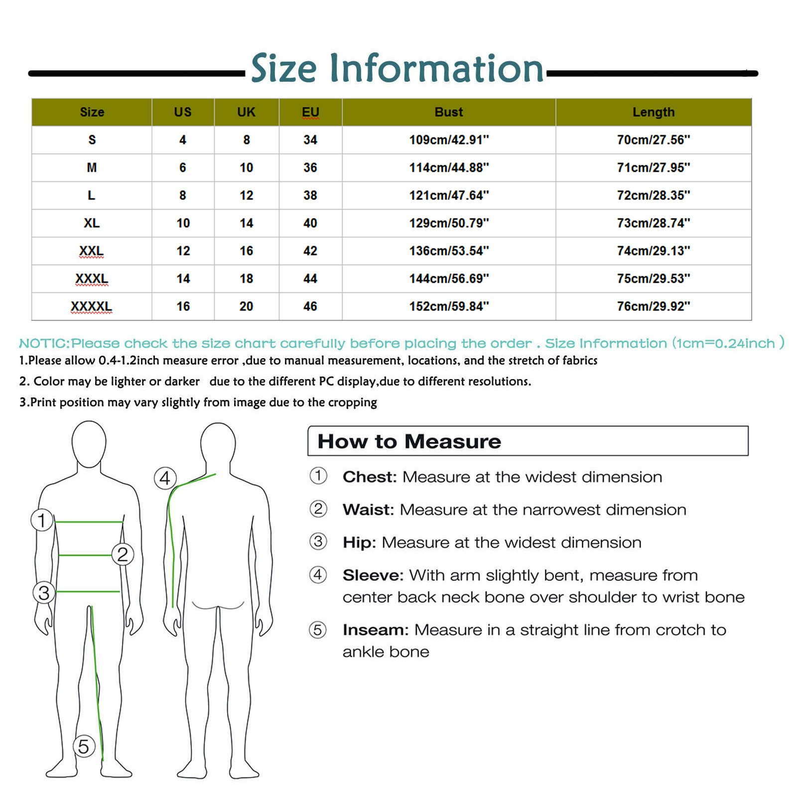 Размер: XXXXL | США: 16 | Великобритания: 20 | ЕС: 46 | Обхват груди: 152 см/59,84 дюйма | Длина: 76 см/29,92'' |