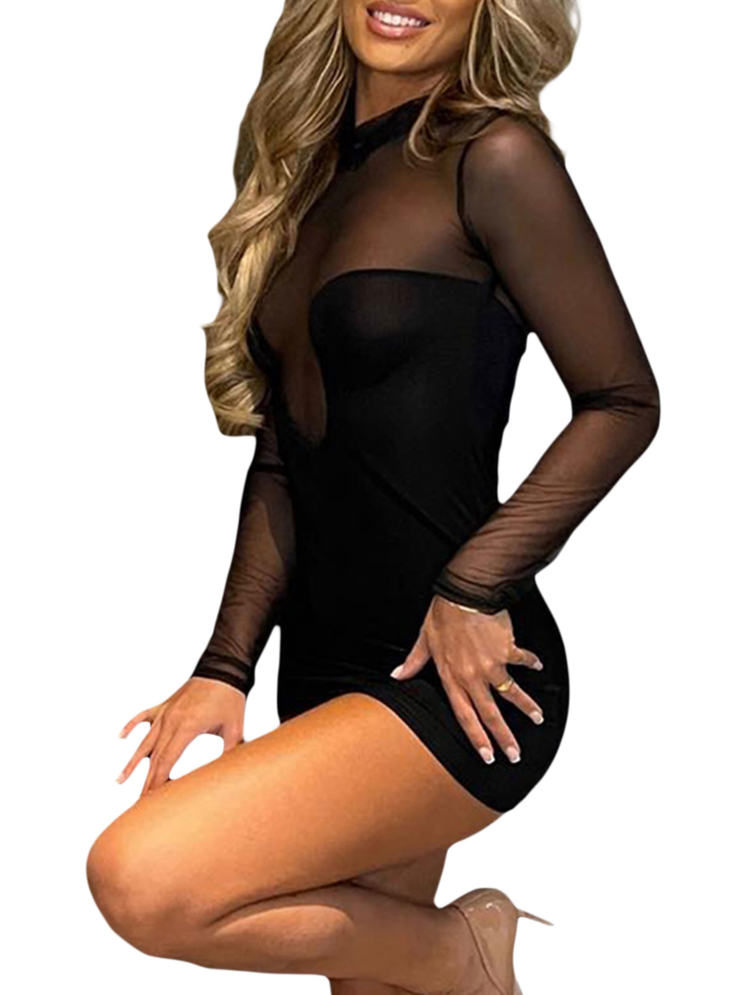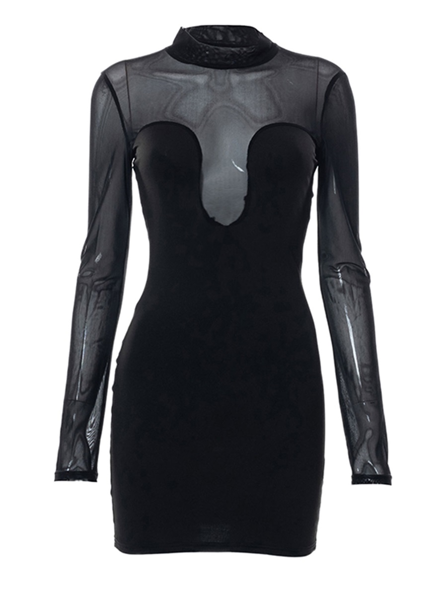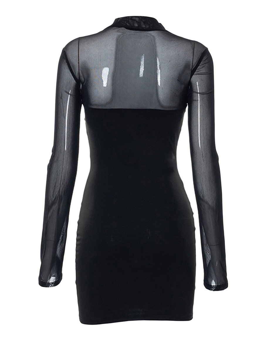 Женское платье с длинным рукавом, однотонное Сетчатое платье в стиле пэчворк с ложным вырезом, просвечивающее облегающее платье, повседневная одежда