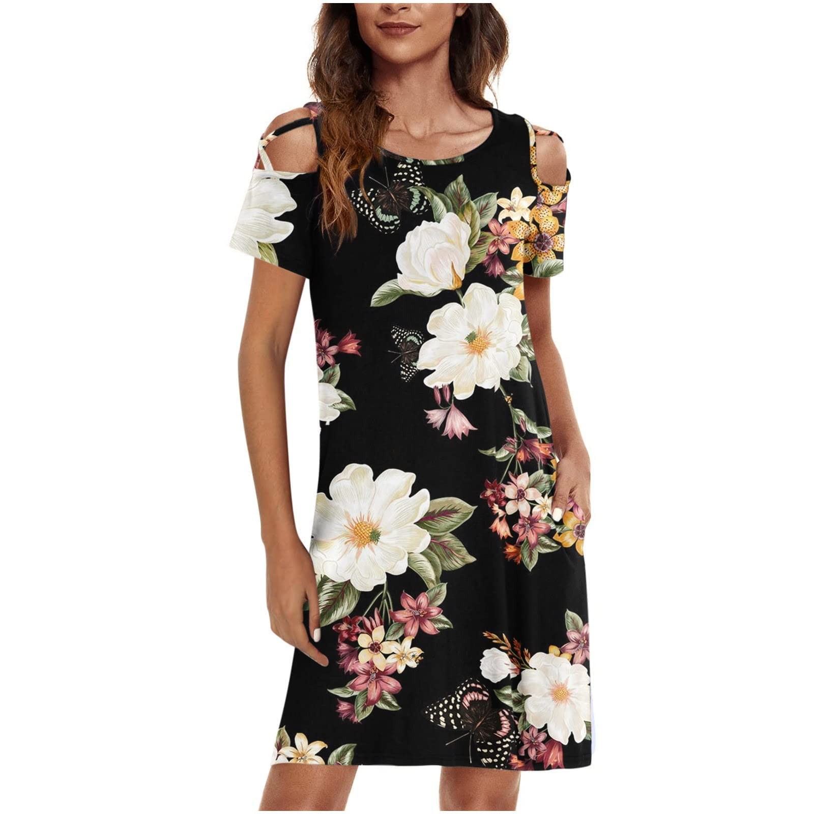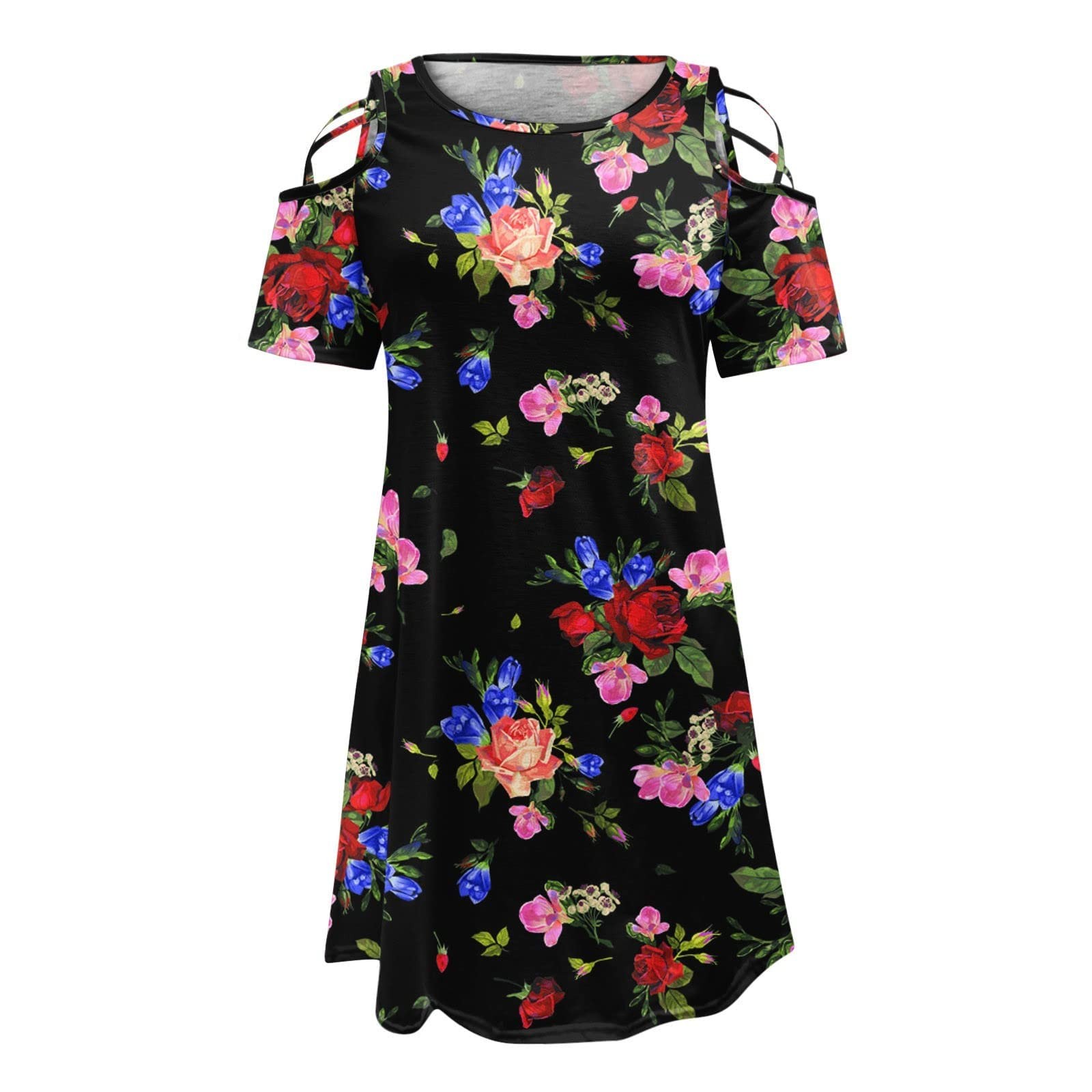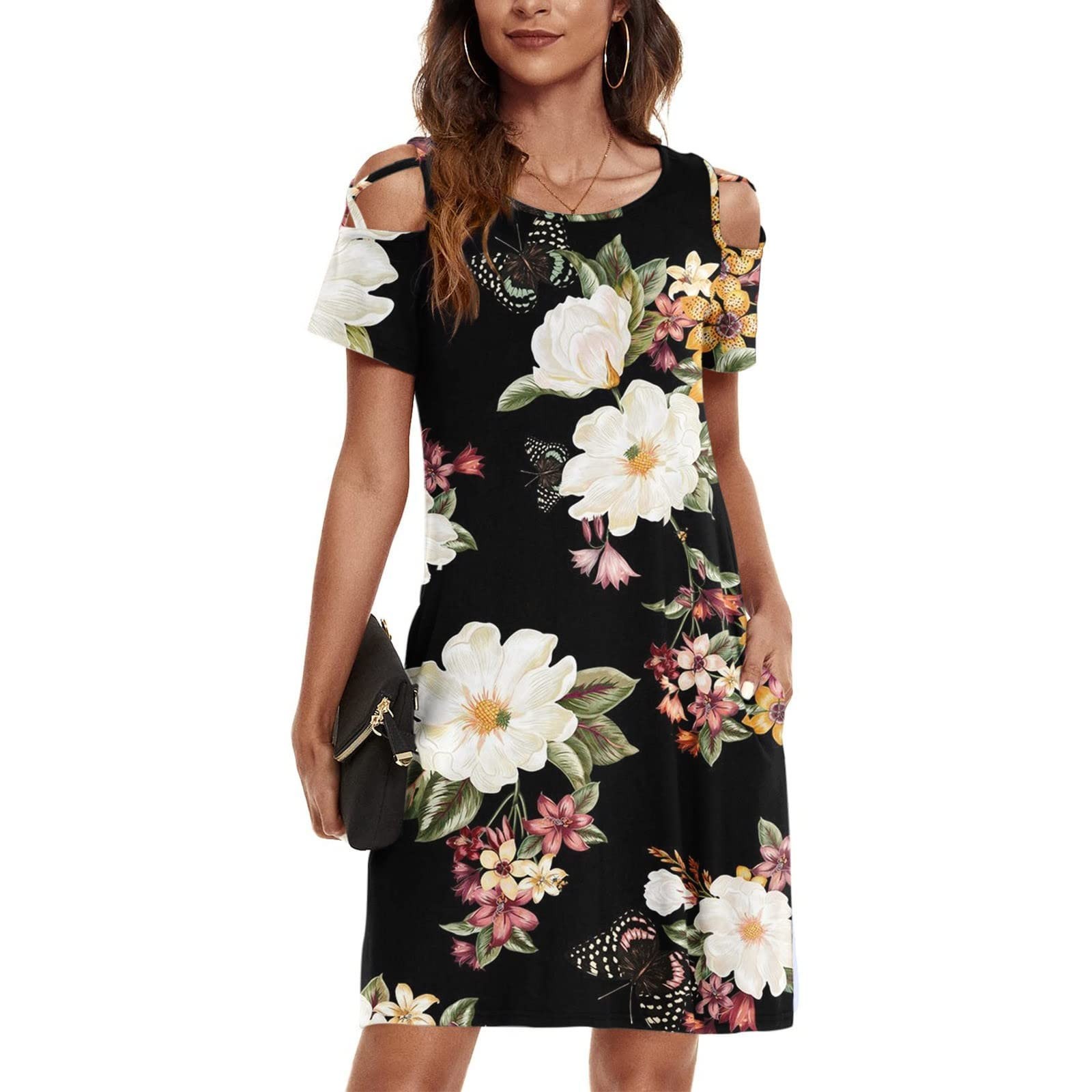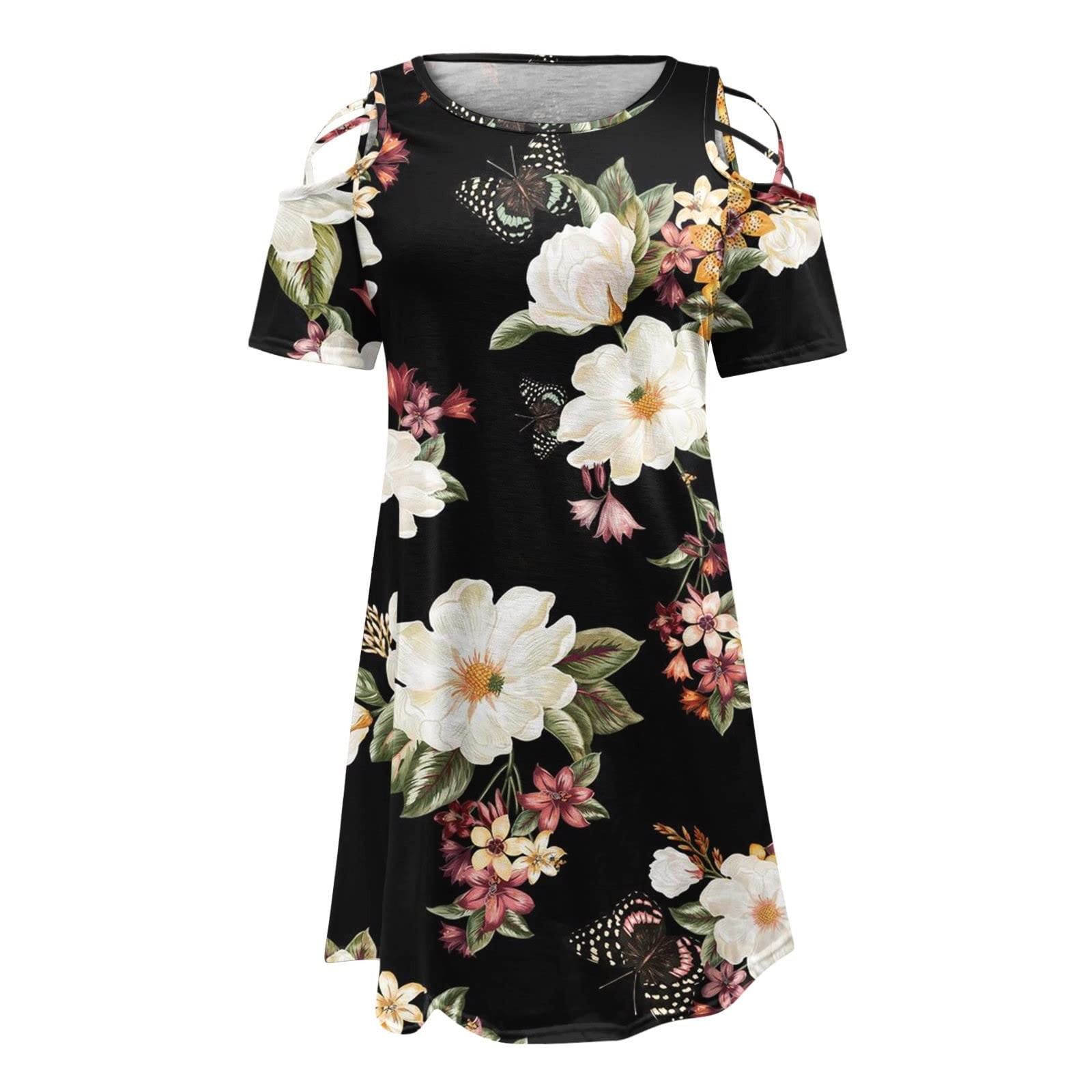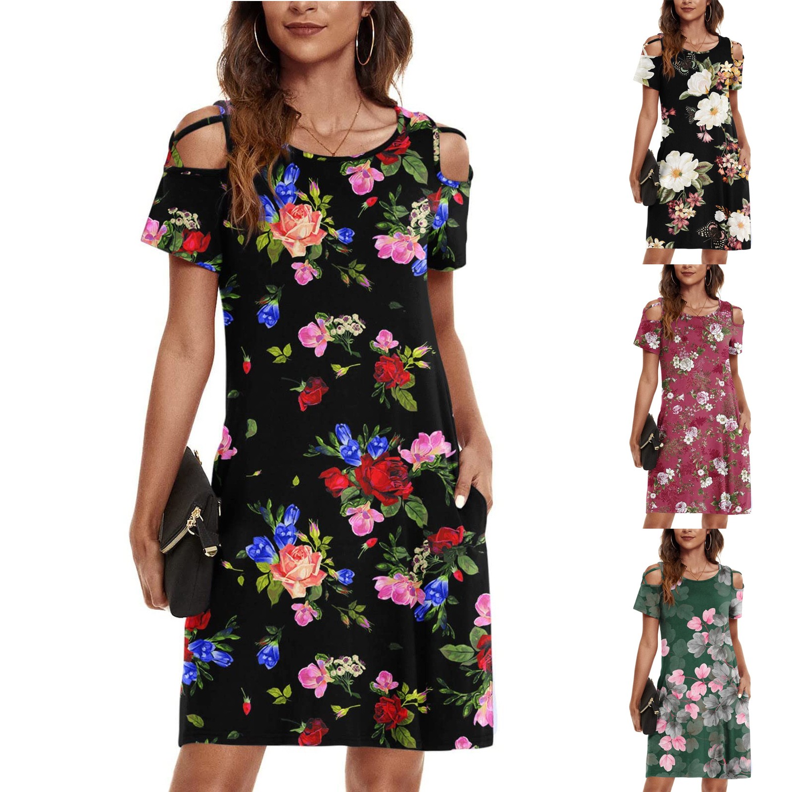 Женское модное свободное платье без бретелек с цветочным принтом и коротким рукавом