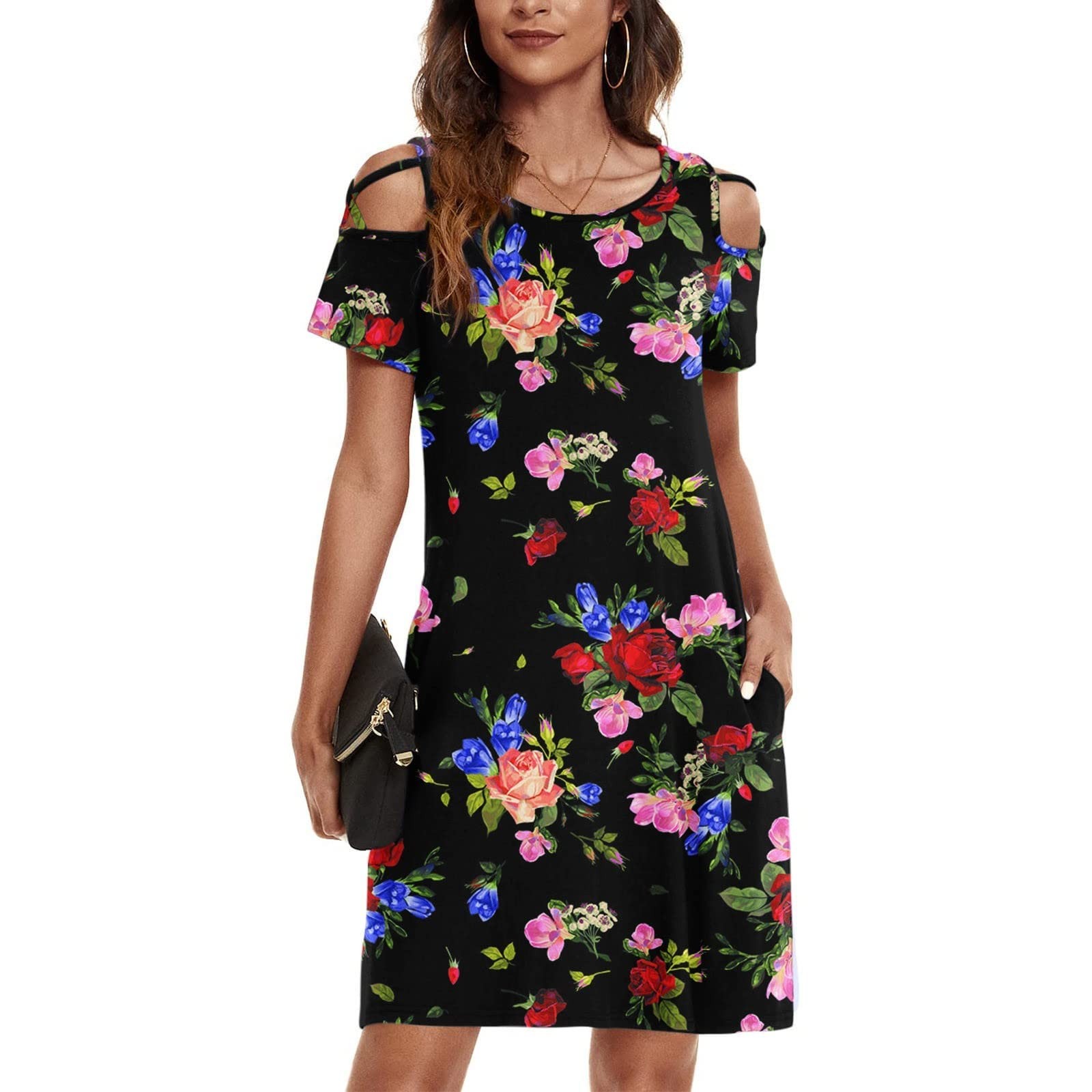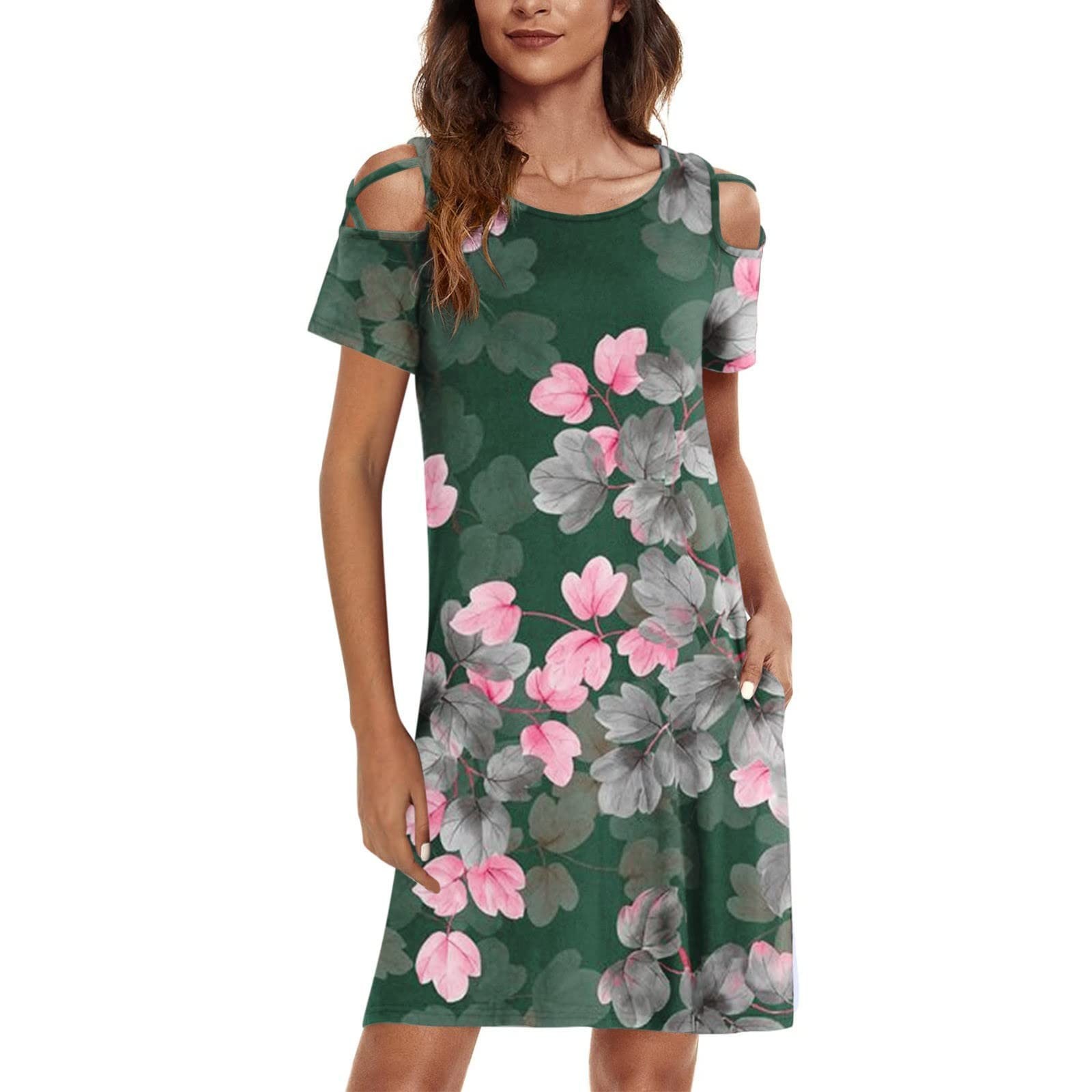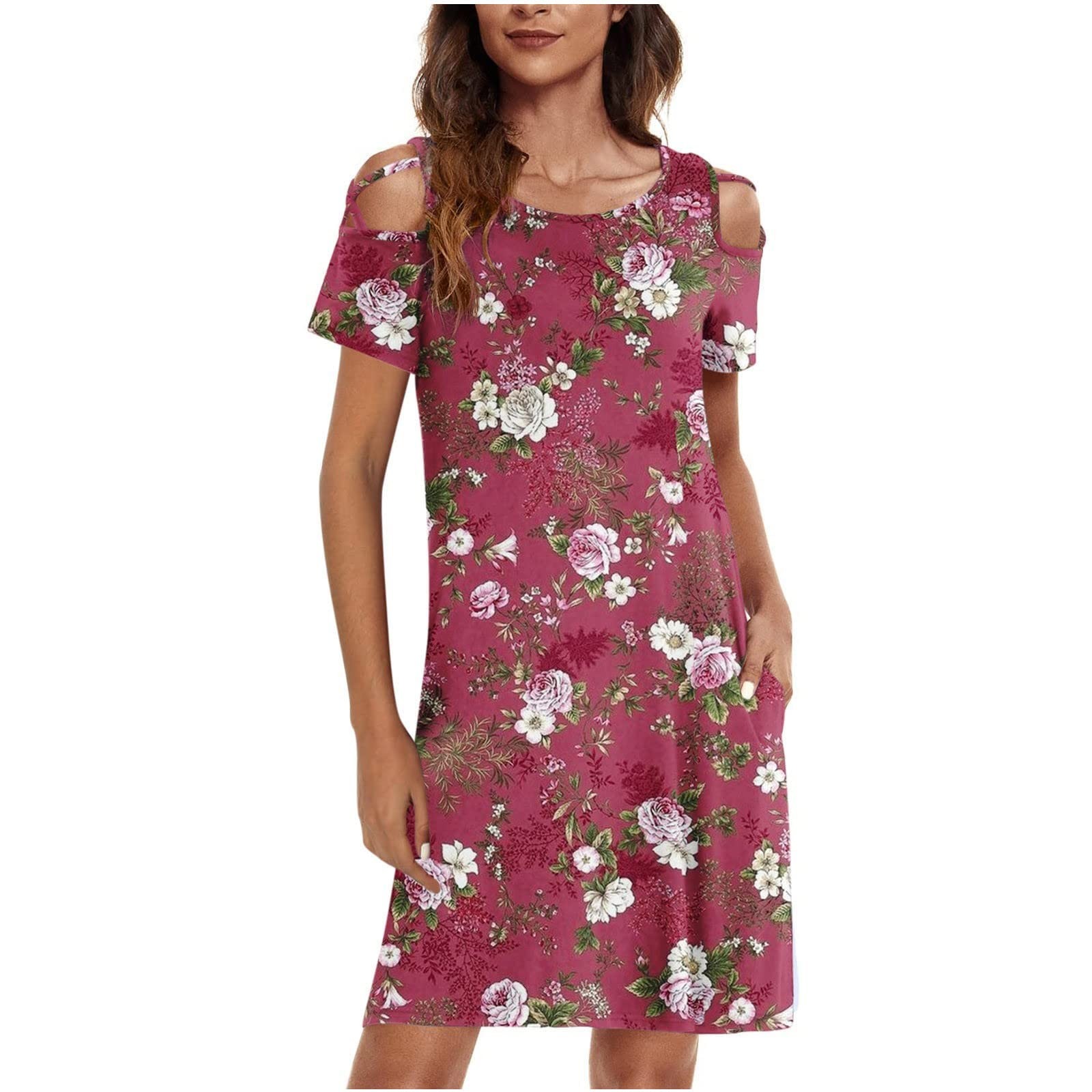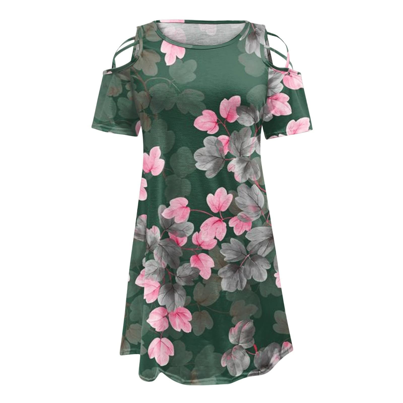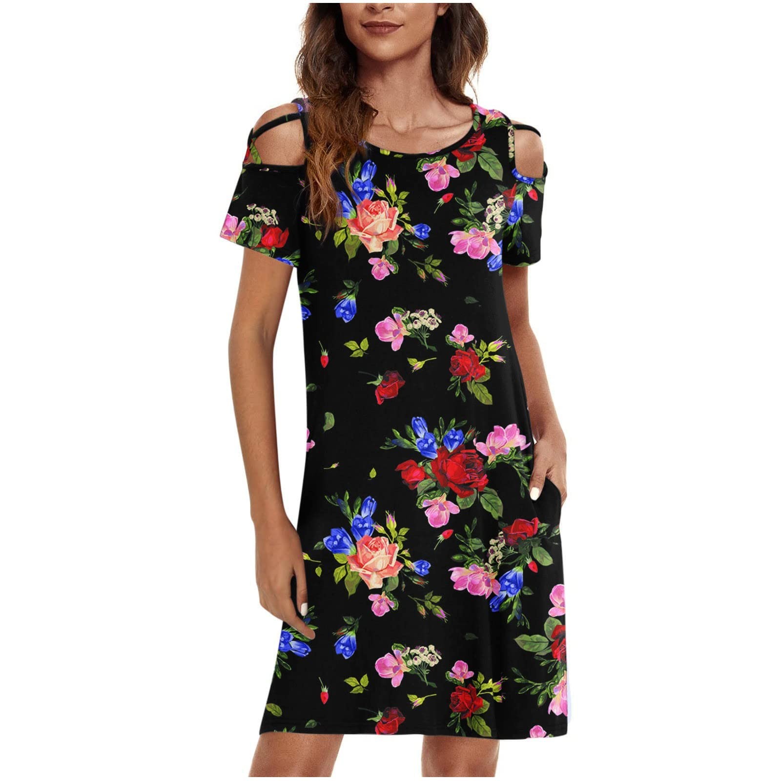 Женское модное свободное платье без бретелек с цветочным принтом и коротким рукавом