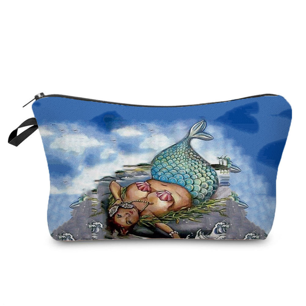 2022 Cartoon Mermaid Printed Cosmetic Bag Spot Wholesale Compact Storage Bag Travel Washing Bag