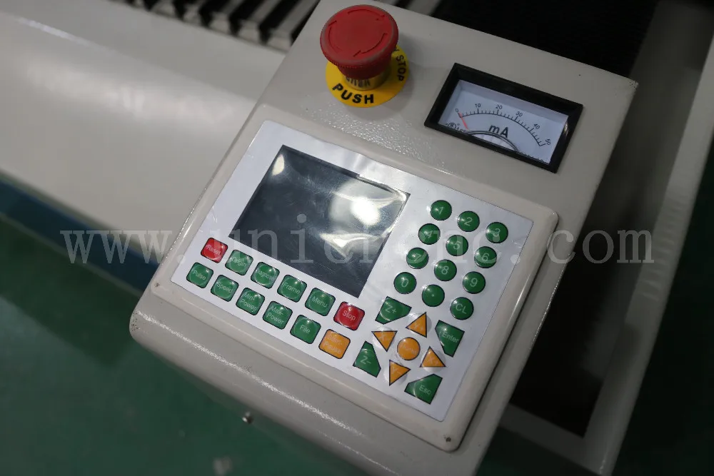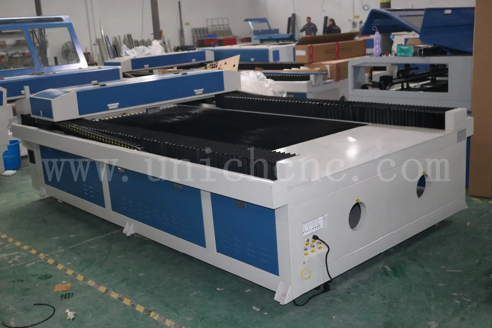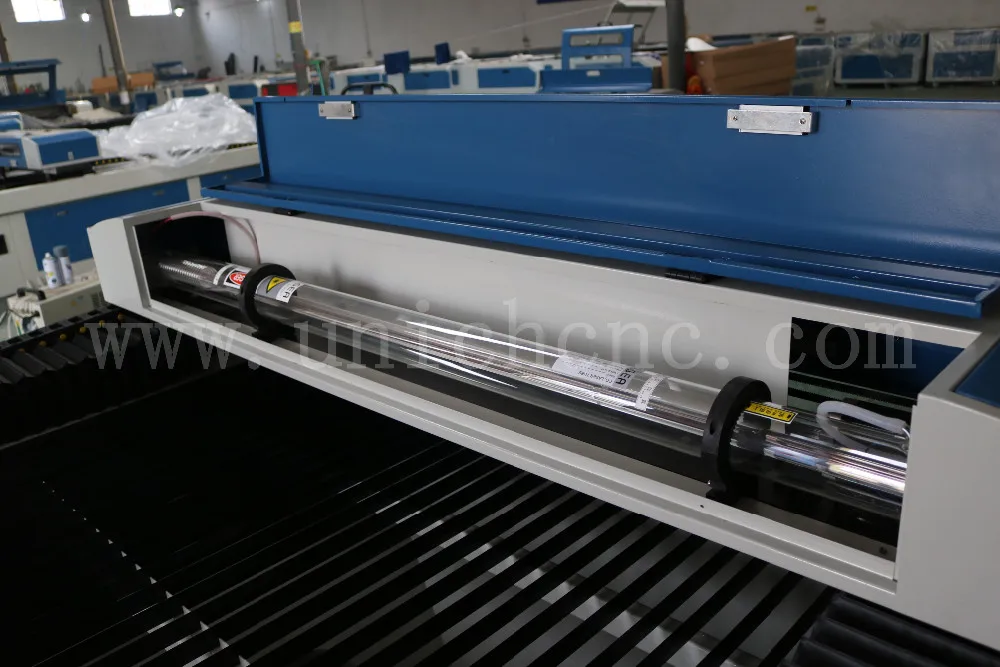 Brand NameUNICHCNCModel NumberLXJH1325ConditionNewCNC or NotCNCMeasurement unit100000017Sold insell_by_pieceEach pack1Package weight20Package size - length (cm)20Package size - width (cm)20Package size - height (cm)20Nameco2 laser engraving machineLaser powerW6(130-160W) Beijing reci laser tube, W8(150-180W)/280W/300WCutting speed0-50000mm/minWorking area1300*2500mmControl systemOriginal new version Ruida 6332M control systemPower supply110V/220v, 50HZ/60HZGuide rail and beltLinear square linear rails and Dongfeng beltLaser typeCo2MotorLeadshine 573S15-L motor and 3ND583 driverCooling modeWater cooling