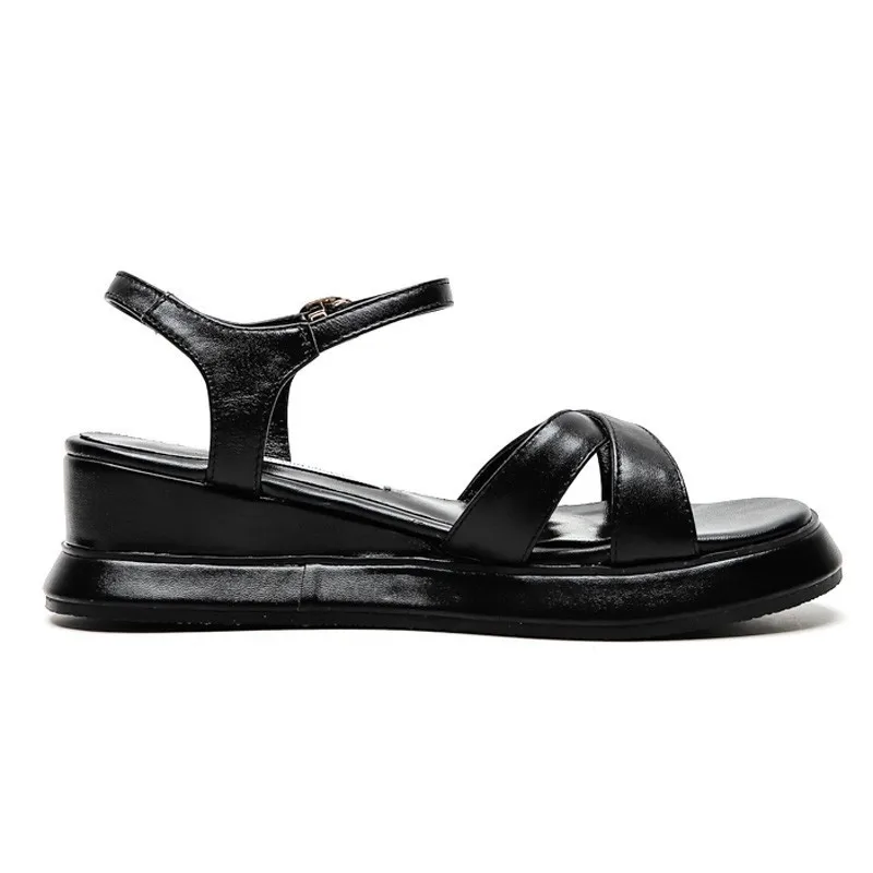 Босоножки на платформе из коровьей кожи; женская летняя обувь; модель 2019 года; женская повседневная обувь; Цвет абрикосовый, черный; женская обувь на высоком каблуке с ремешком на щиколотке; D059
